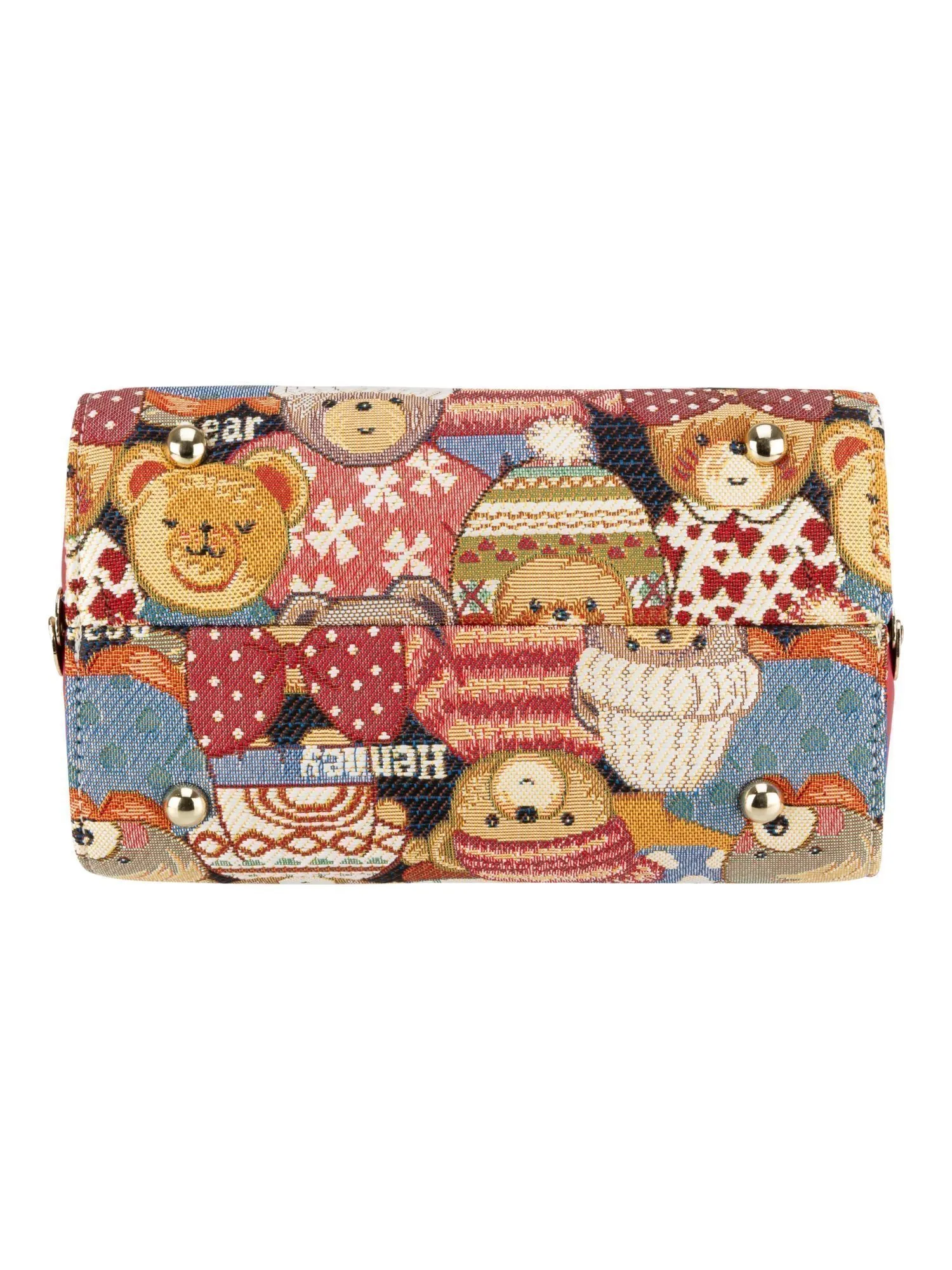 Встречайте задорного мишку Henney Bear! Перед вами маленькая сумка кросс-боди с короткой ручкой и длинным ремешком (максимальная длина 125см) в комплекте. Дизайн с очень интересными деталями добавит романтичности в любой образ. Фирменый принт с милыми мишками и красивый замок с камушком смотрится иронично и стильно. Внутри пара удобных карманов и карман-перегородка на молнии. Яркие тона и задорные принты - то что нужно для Вашего гардероба!