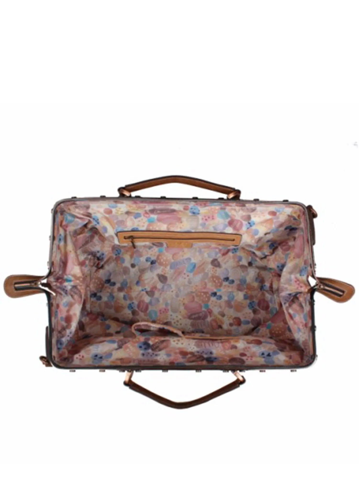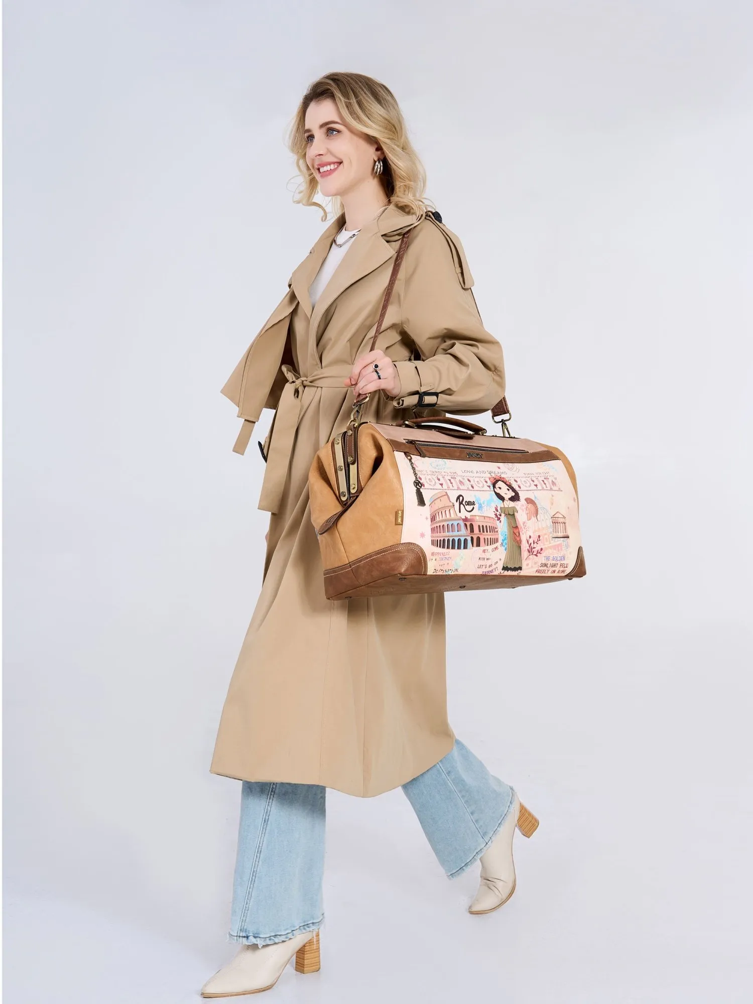 кофейные оттенки - основные в коллекции TOUR of ROME. Он идеально подойдет для путешествий, командировок и активных выходных. Дорожная сумка Janet обладает рядом преимуществ, которые делают её незаменимой для путешественниц. Во-первых, она очень вместительная, и в нее без труда поместятся все необходимые вещи для длительного путешествия. Во-вторых, сумка оборудована металлическими ножками на дне, что дает ей дополнительную прочность и защищает от повреждений при переноске. Удобная ручка позволяет носить саквояж в руках, а также и на плече, благодаря регулируемому плечевому ремню. Ещё одной особенностью является возможность надевать её на ручку чемодана, что облегчает переноску и позволяет свободно и легко передвигаться. Она выполнена из экокожи, что делает ее прочной и долговечной. Качественная вышивка декорирует наружные элементы сумки, придавая ей изысканный вид.