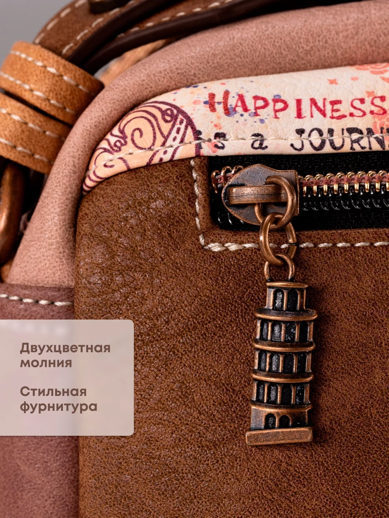 На оборотной стороне сумки расположен дополнительный карман на молнии, который позволяет хранить вещи под рукой. Внешний карман на молнии обеспечивают дополнительное пространство для хранения.
