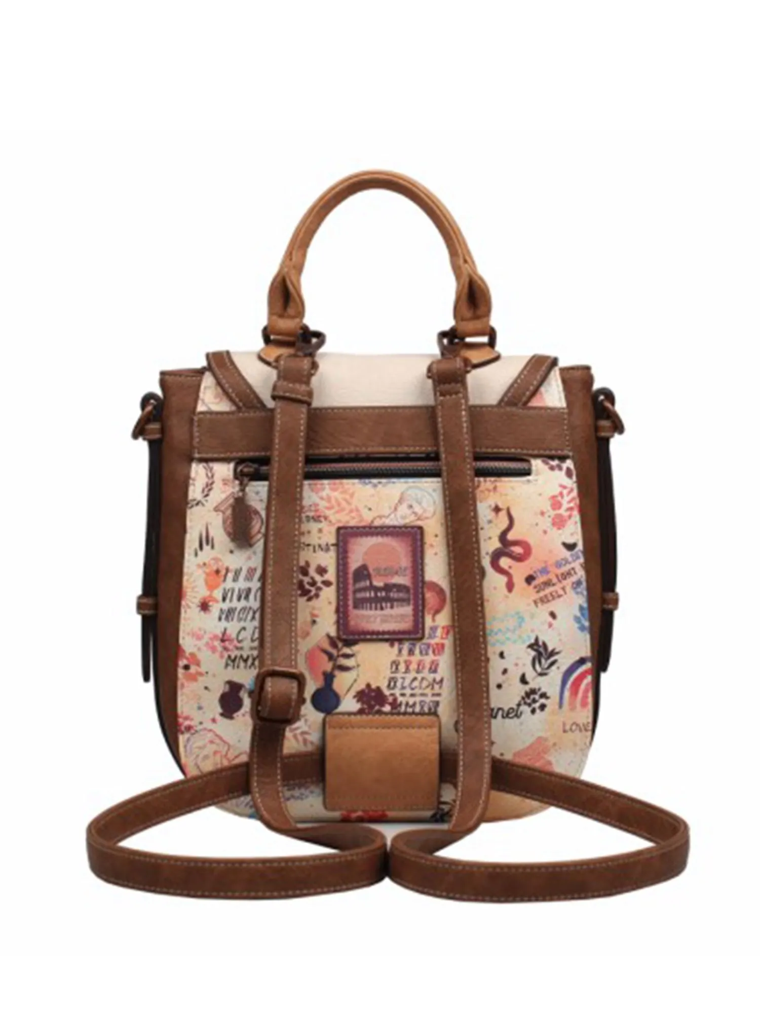 погружает нас в удивительную атмосферу древнего города. На оборотной стороне есть большой карман на молнии. На лицевой (под клапаном) стороне есть вместительный открытый карман для быстрого доступа. Основное отделение закрывается на широкий клапан с декоративным замком-магнитом и молнию. Внутри основного отделения есть карман на молнии и два открытых. Ремешки-лямки могут регулироваться по длине и перестегиваются, превращая сумку в рюкзак и наоборот. Универсальная модель, которая подойдет как для ежедневного использования, так и для особых случаев. Сделайте свой образ неповторимым с этой элегантной сумкой от JANET. Итальянская коллекция JANET подчеркнет ваше уникальное состояние души