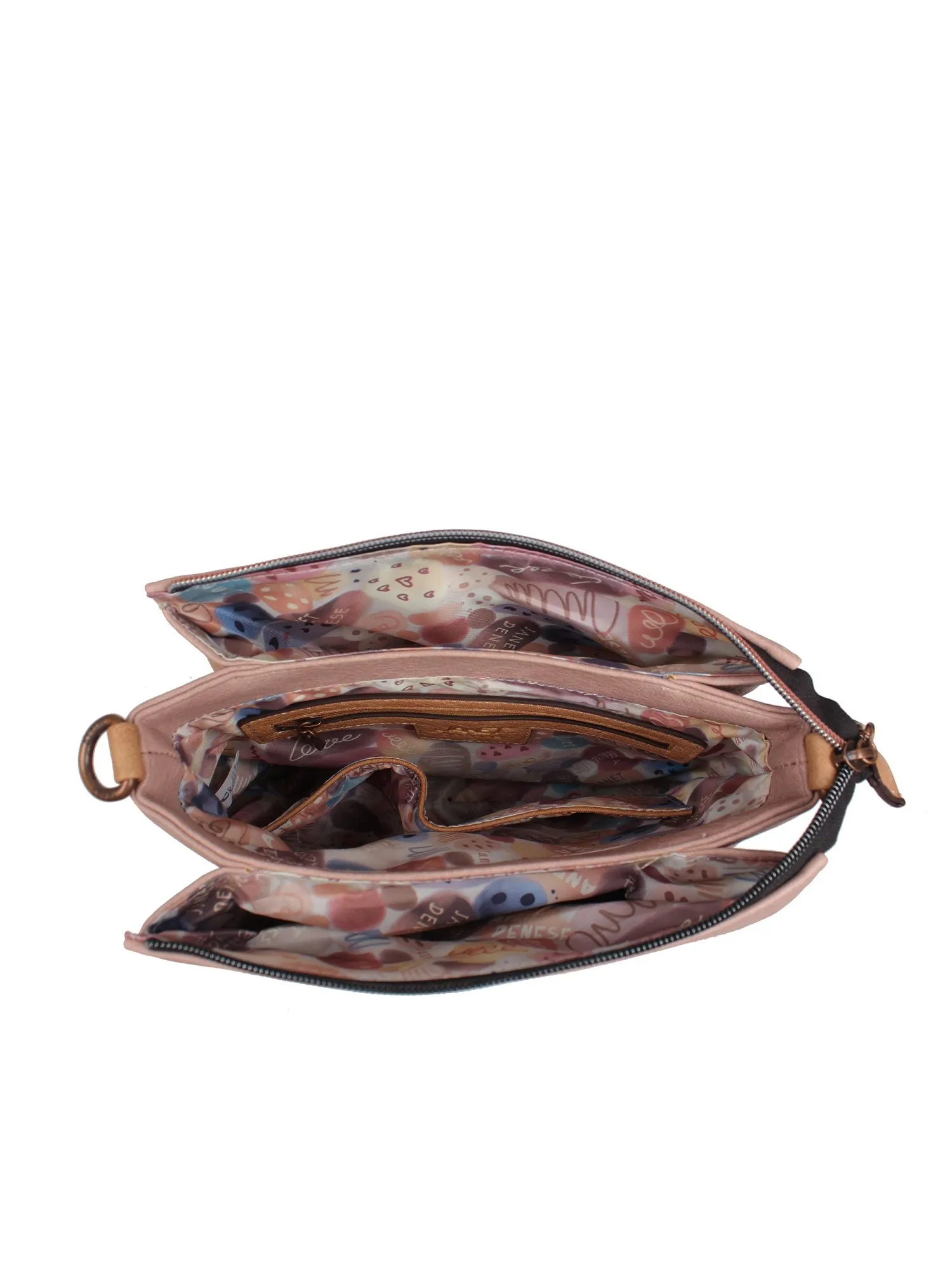 Сумка мессенджер среднего размера, она невероятно функциональна и вместительна. Основное отделение закрывается на молнию, а внутри 3 отдельных отделения, в среднем отделении есть карман на молнии для ценных мелочей и 2 открытых кармана. На задней стороне сумки есть карман на молнии.