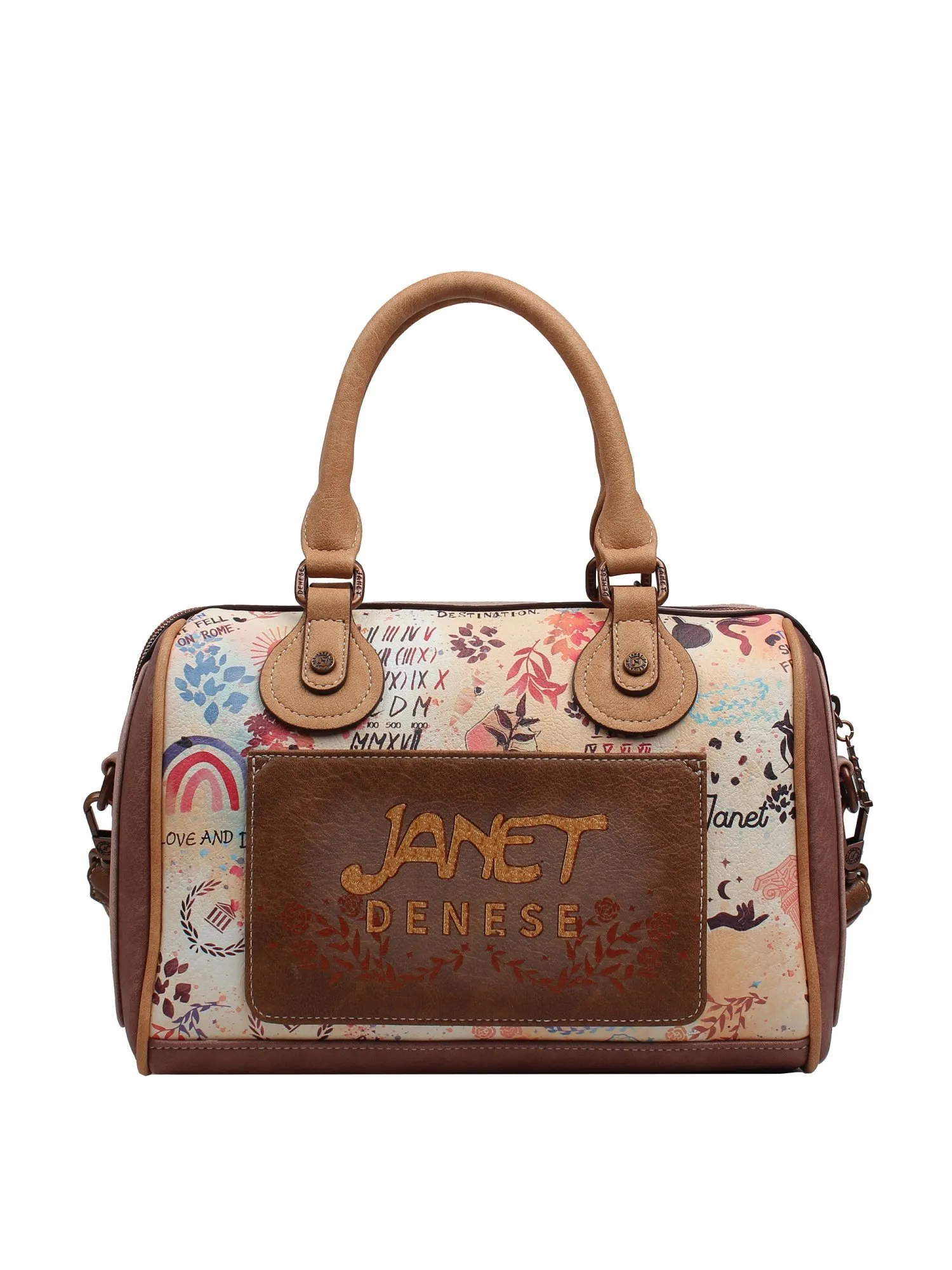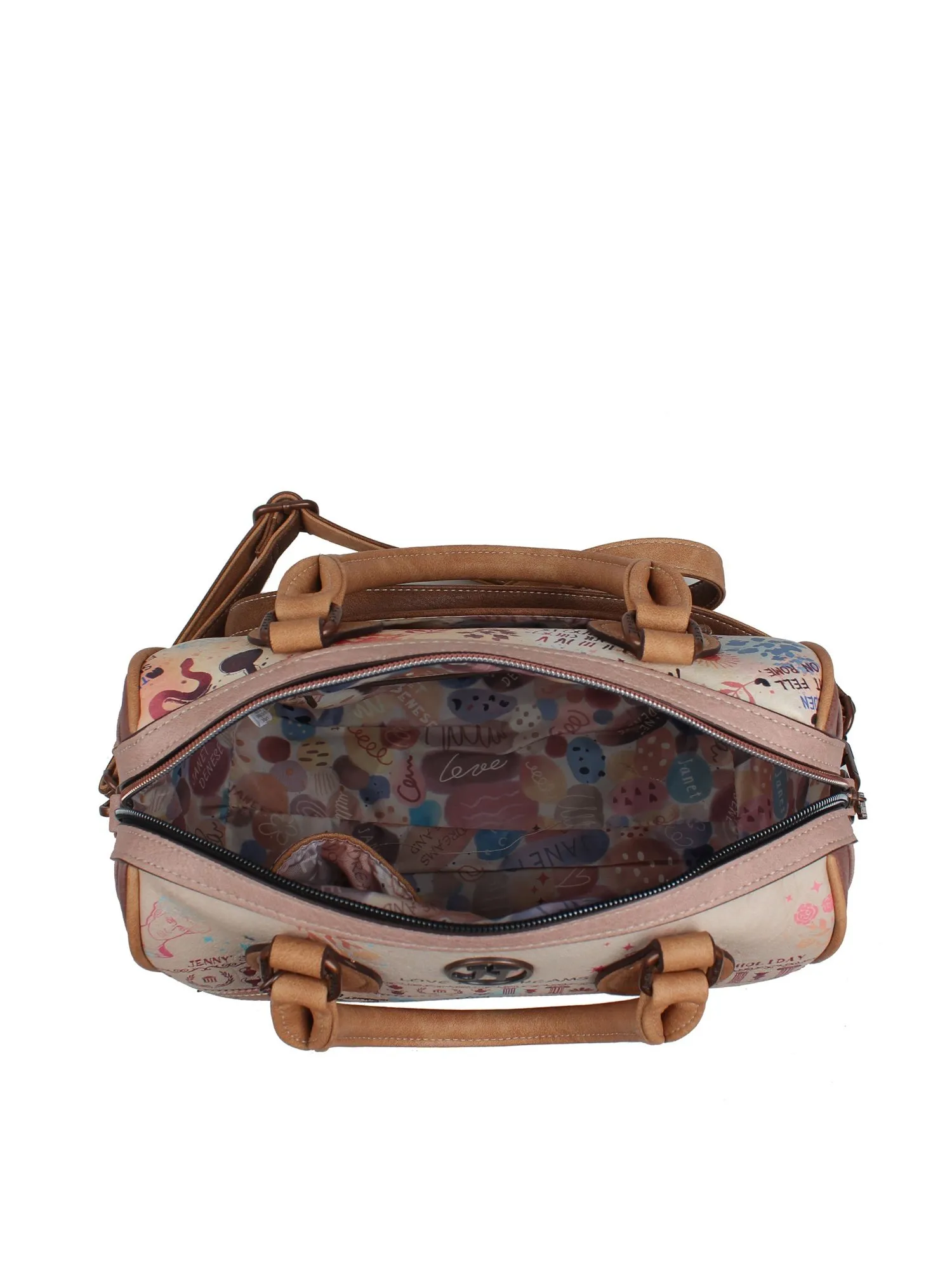 Основное отделение сумки закрывается на молнию, внутри классический набор карманов - один на молнии и два открытых. На задней стороне есть открытый карман. Брелок из коллекции - одна из декоративных фишек этой сумки. Взяв с собой JANET, ваш день будет наполнен романтикой и красотой!