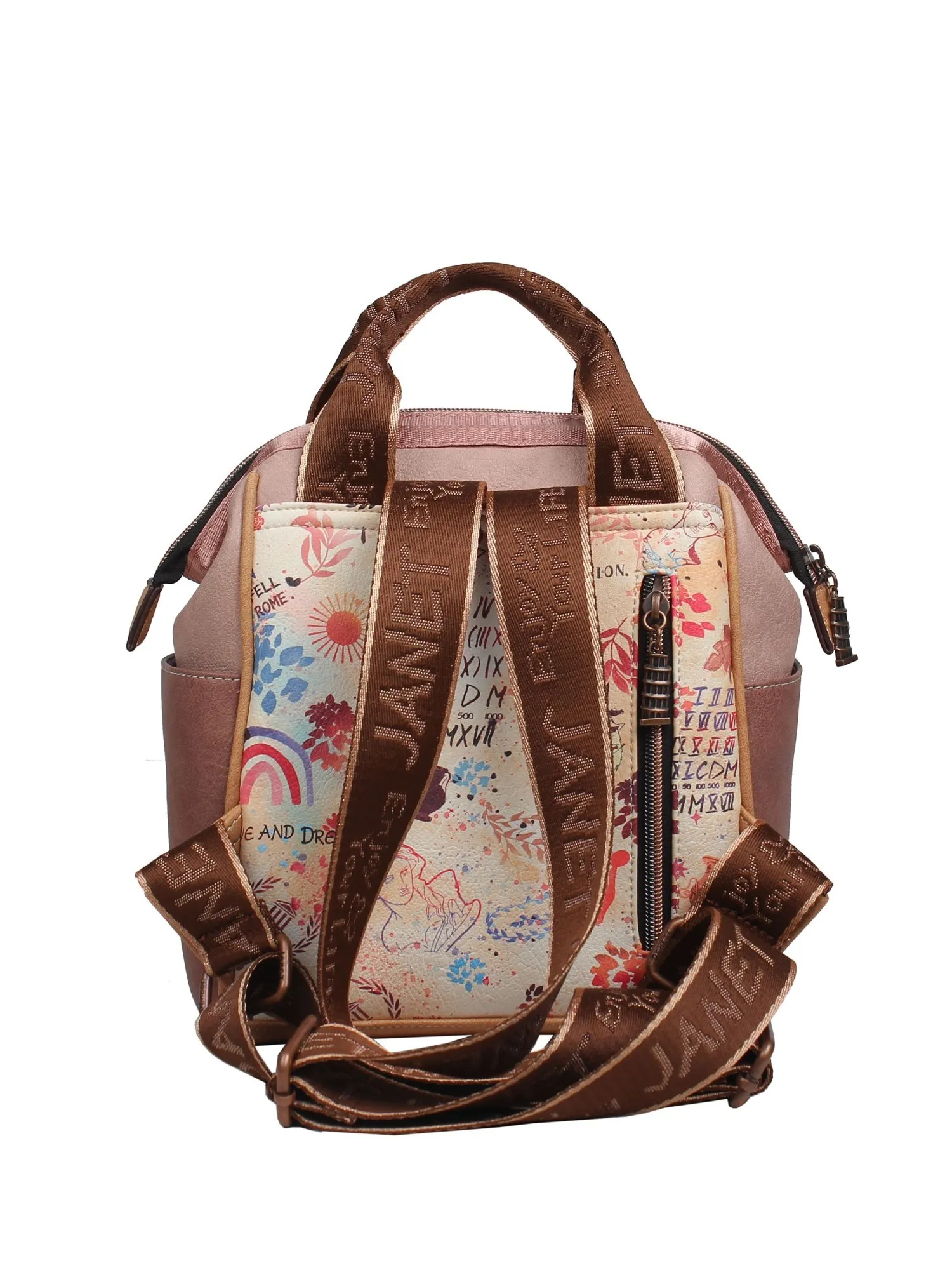 Листы формата А4 не вмещает. Финальный штрих - брелок и бегунки в виде Пизанской башни. С женским рюкзаком из коллекции JANET A TOUR OF ROME ваш образ будет утонченным и изящным. Носите с собой JANET и наполняйте города красотой! И вы всё ещё в раздумьях?