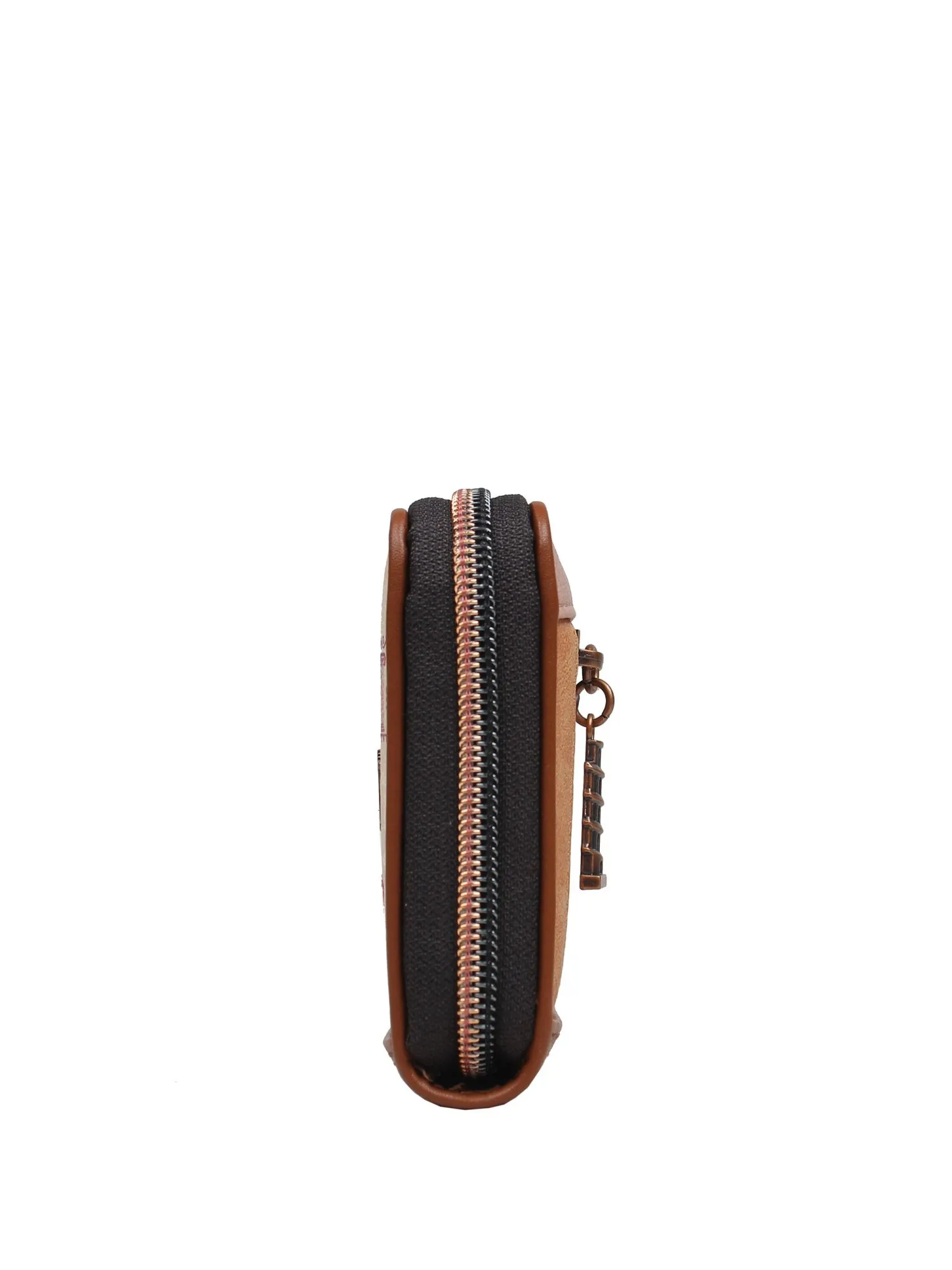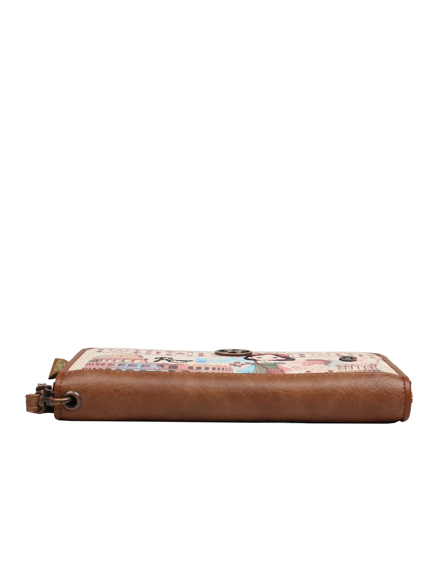 Этот кошелек также имеет функциональный дизайн - его можно использовать как клатч, благодаря съемному ремешку на запястье, что делает его идеальным аксессуаром для особых случаев или выходных. В кошелёк помещается телефон длина которого не более 16,5 см. Внешне кошелек выглядит элегантно и оригинально благодаря вышивке на передней части и фирменному логотипу.