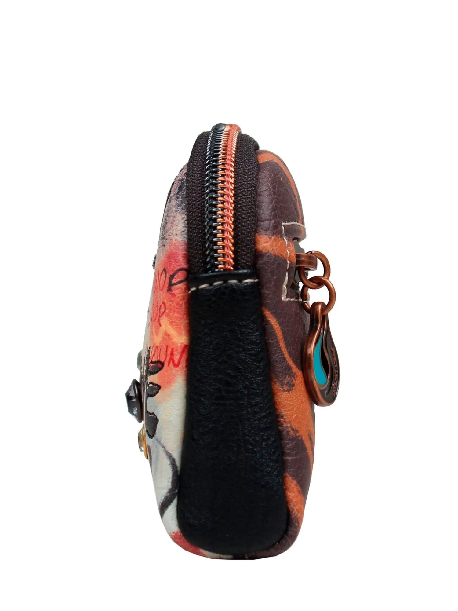 Невероятно элегантная женская ключница из коллекции ART GALLERY, которая станет не просто аксессуаром, а настоящим произведением искусства! Модель украшена фирменным принтом коллекции с замысловатыми спиралями и изысканными клепками со стразами, добавляющими ноту роскоши. Основное отделение на молнии скрывает практичное кольцо на цепочке для ключей. На задней стороне расположен небольшой карман на молнии для мелочей — идеальное решение для хранения мелких предметов.