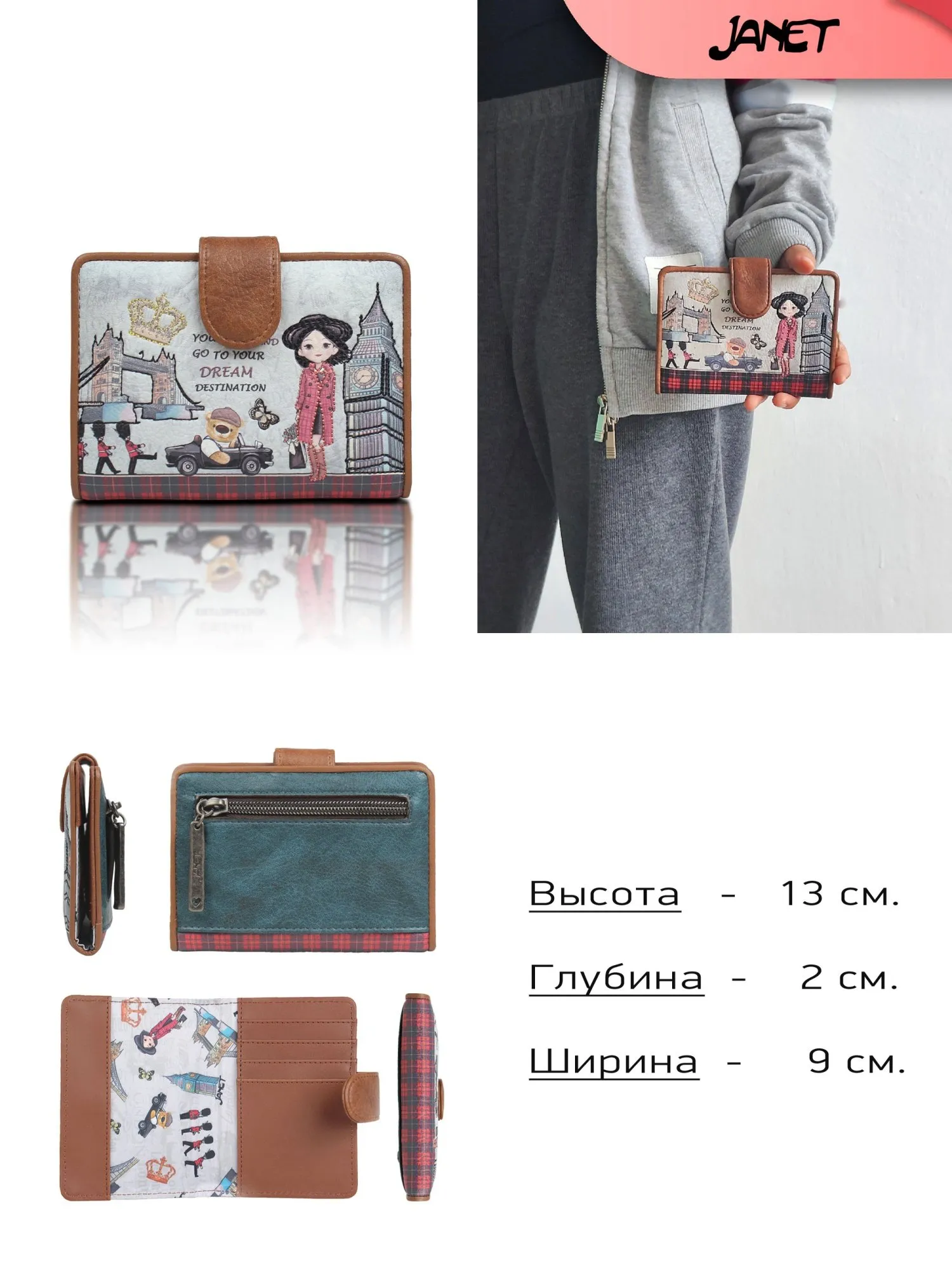 Позвольте себе путешествовать каждый день с ощущением Лондона, всегда имея под рукой эту стильную обложку для документов от Janet!