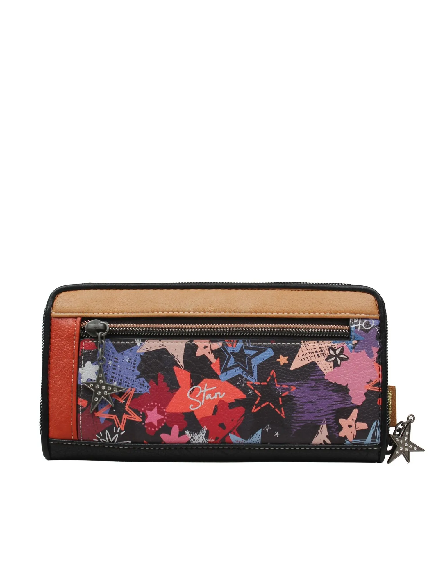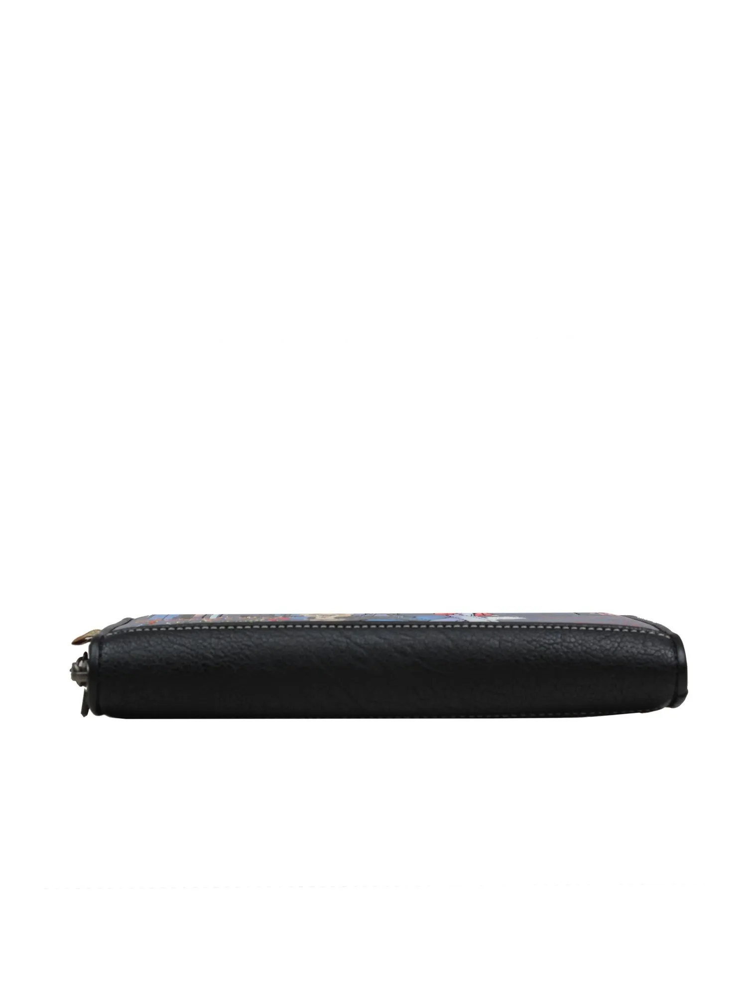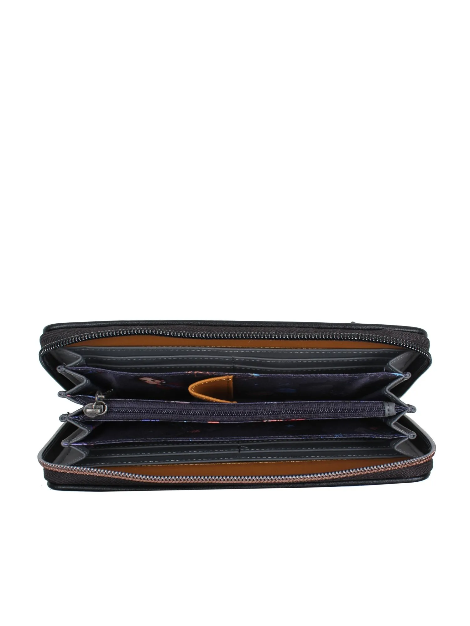 Этот кошелек также имеет функциональный дизайн - его можно использовать как клатч, благодаря съемному ремешку на запястье, что делает его идеальным аксессуаром для особых случаев или выходных. В кошелёк помещается телефон длина которого не более 16,5 см. Внешне кошелек выглядит элегантно и оригинально благодаря вышивке на передней части и фирменному логотипу.