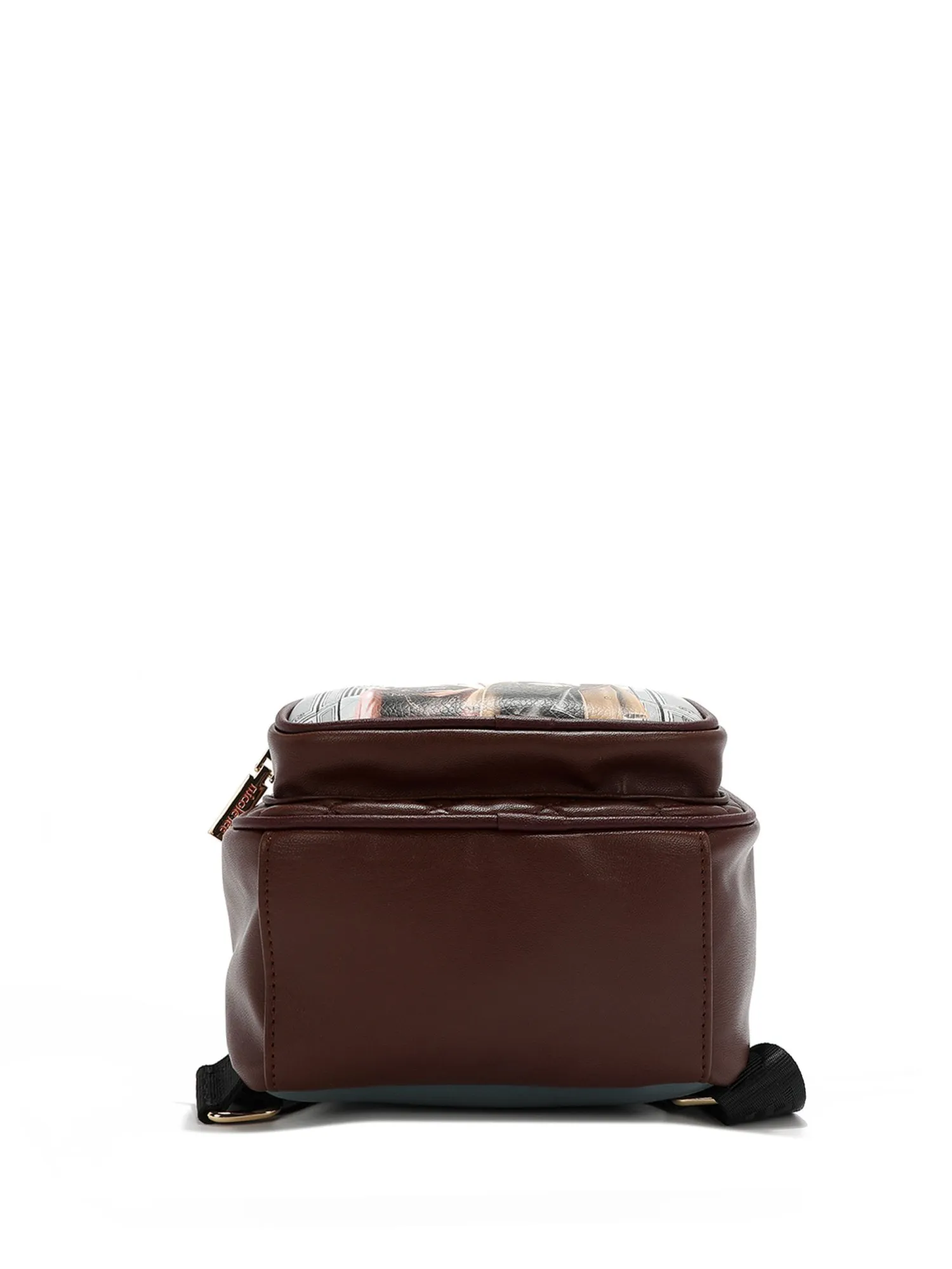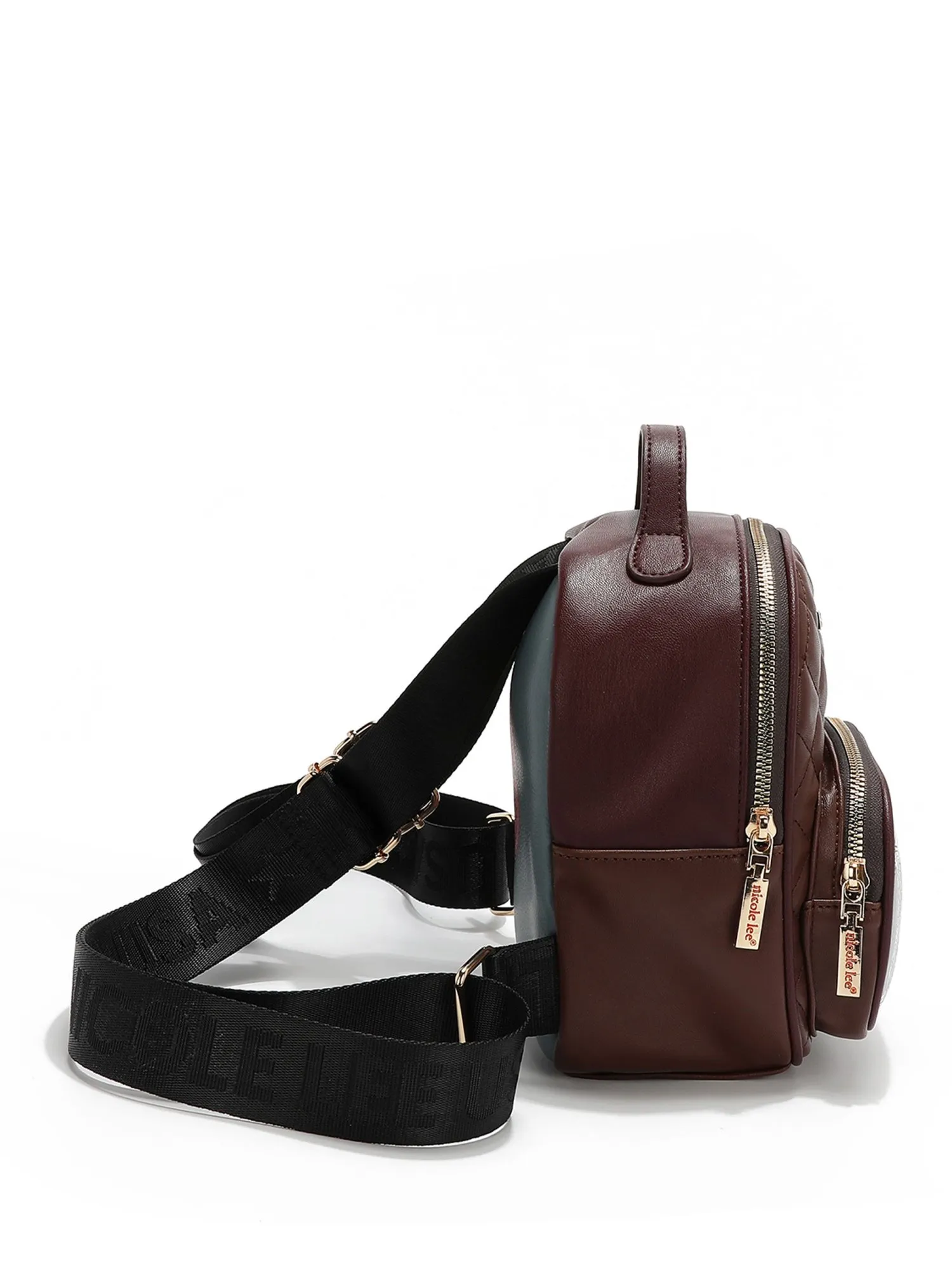 Маленький рюкзак изготовлен из мягкой и качественной экокожи. Передняя часть рюкзака, стеганая, с накладным карманом на молнии. Внутри модели есть карман на молнии и два открытых кармана.