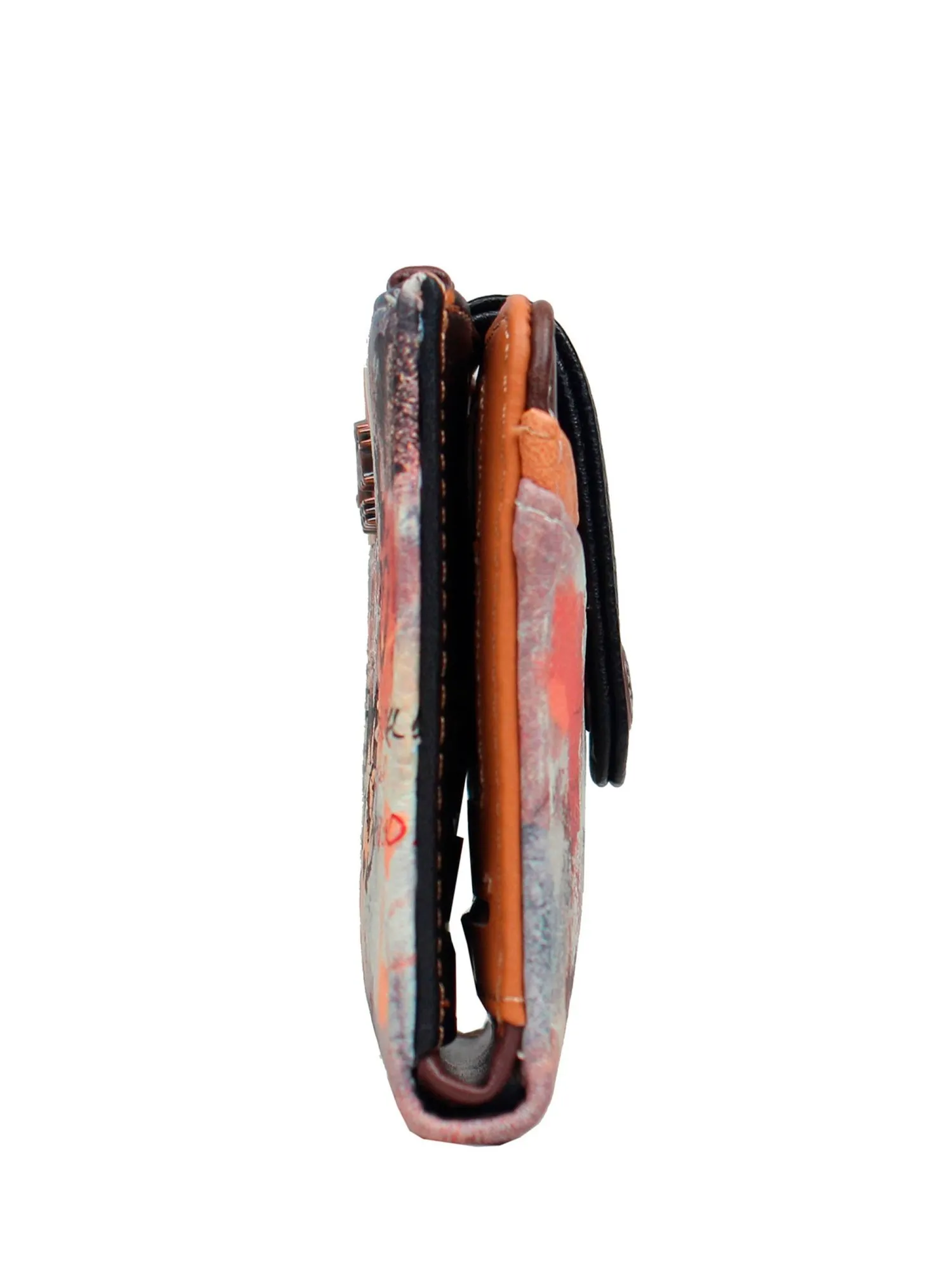 Несмотря на миниатюрный размер, кошелёк легко вмещает все необходимое, сохраняя стиль и элегантность. Идеальный выбор для тех, кто ценит искусство, практичность и безупречный вкус.