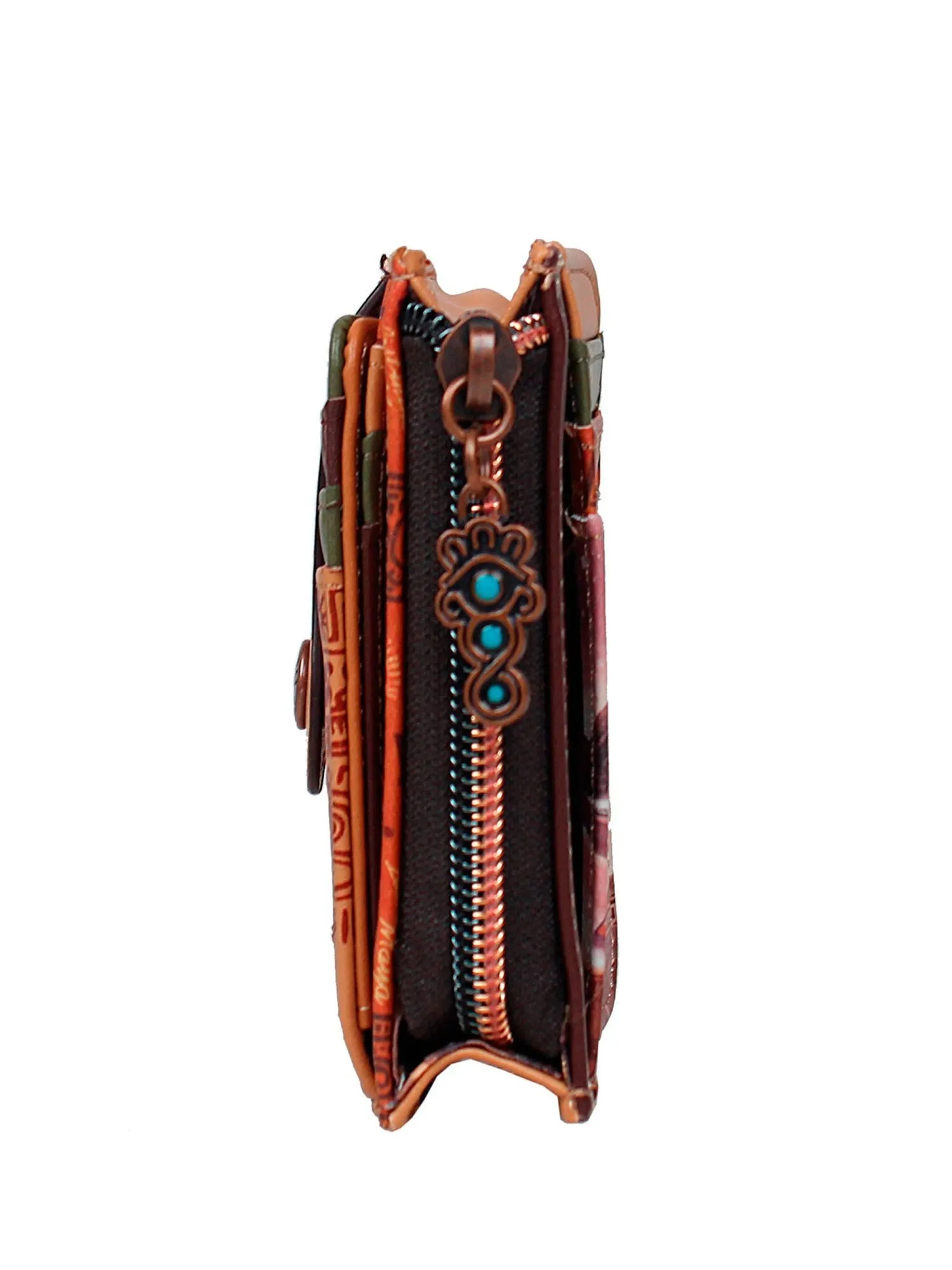 Окунитесь в мир тайн майя с этой многофункциональной кредитницей, где каждая деталь пропитана наследием древней цивилизации! Модель украшена фирменным принтом с загадочными символами майя и вышивкой. С одной стороны, три удобных кармана для карт надёжно закрываются хлястиком на магнитной кнопке, а внутри вас ждут три слота для карт и отделение с прозрачным окошком для пропуска или фотографии. С другой стороны расположены ещё три отделения для карт, обеспечивая максимальную вместительность. В центральном отделении под молнией можно хранить купюры, сложенные пополам, монеты или даже небольшие ключи, а с боковых сторон от него — два дополнительных кармана для мелочей. Несмотря на компактный размер, этот мини кошелёк легко заменяет полноценный аксессуар, предлагая продуманную организацию пространства. Поставляется в фирменной подарочной коробке, что делает его идеальным презентом для близких или изысканным дополнением к вашему образу. Идеальный выбор для тех, кто ценит историю, практичность и загадочность в каждой детали.