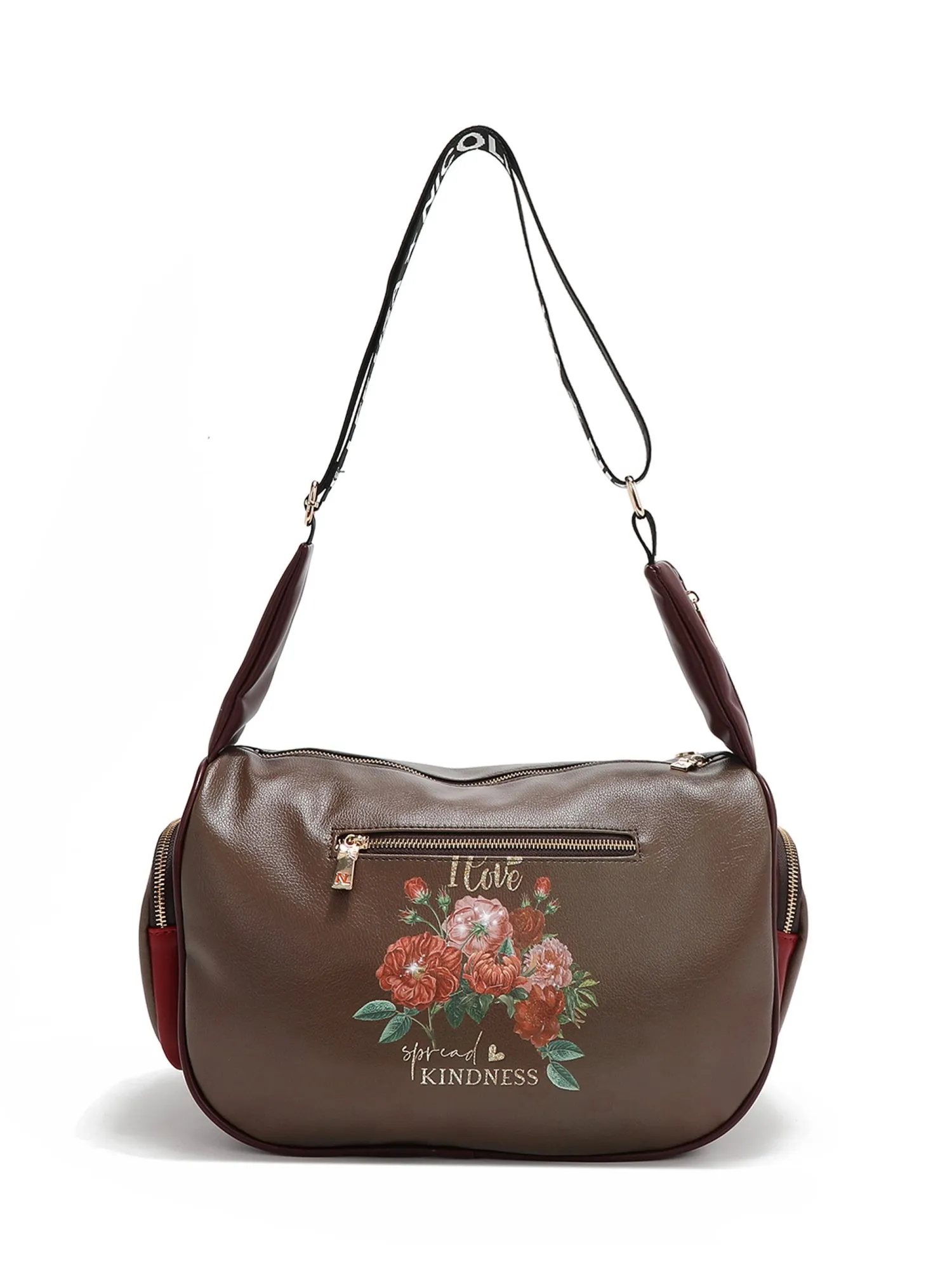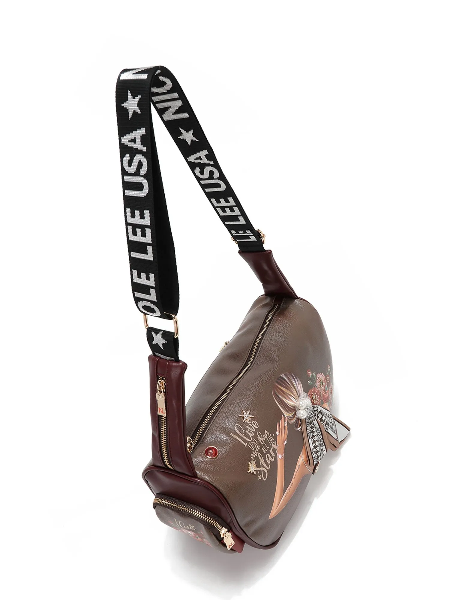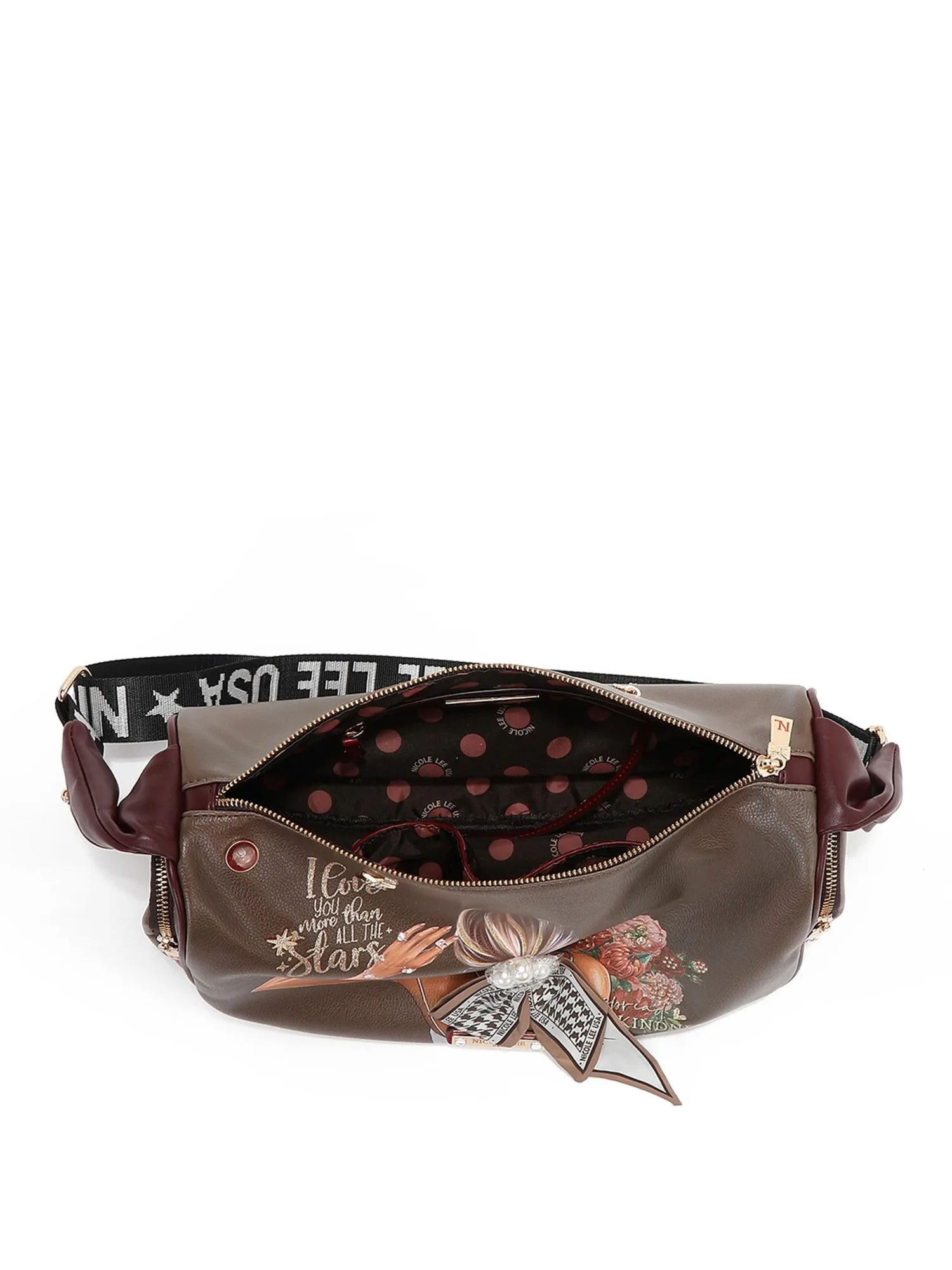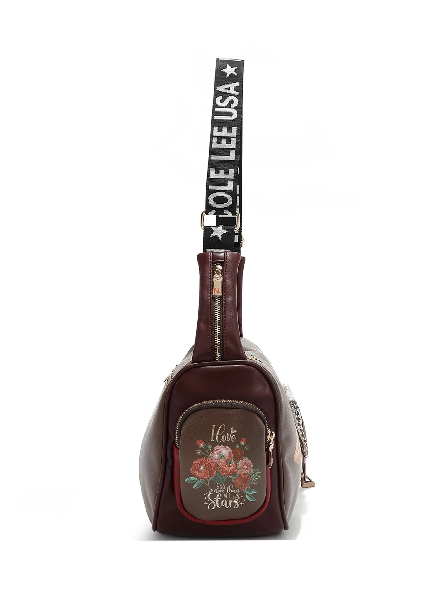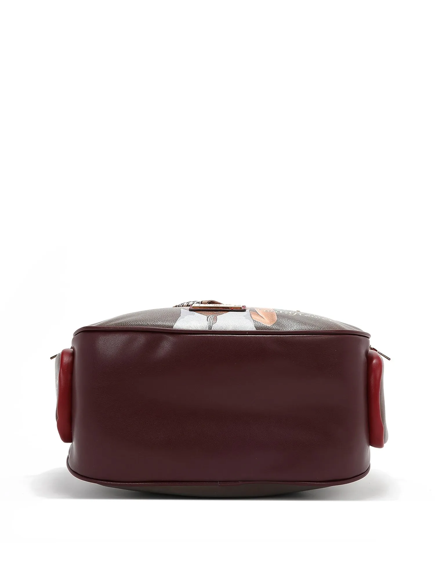 Благодаря множеству карманов на молнии, включая удобные боковое карманы на молнии и мини-карман на плечевом ремне для мелочей, она идеально подходит для повседневного использования, сохраняя все необходимое под рукой. На задней стороне сумки есть вместительный карман на молнии. На бежевой экокоже есть еле заметные бордовые пятна, имитирующие небрежную окраску, это добавляет сумке немного стиля гранж и хулиганства.