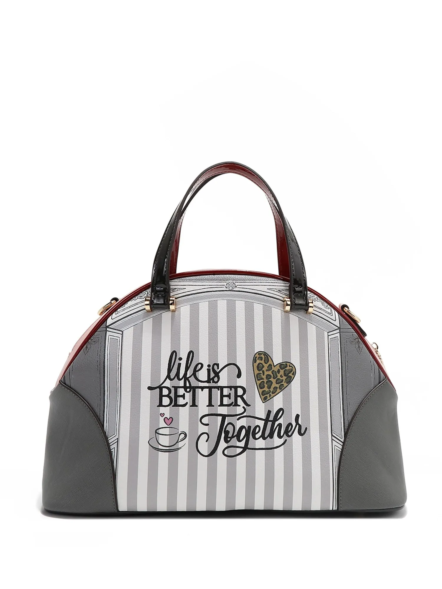 Сумка изготовлена из мягкой и качественной экокожи со вставками сафьяно (текстурная экокожа). Основное отделение на молнии, внутри карман на молнии, два открытых кармана и подвеска для ключей.