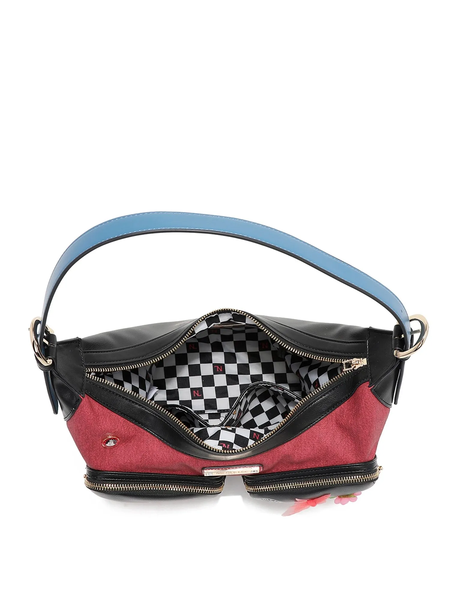 Два накладных кармана на молнии украшены фирменным принтом коллекции, пайетками, бусинками и милым бантиком. Основное отделение на молнии, внутри карман на молнии, два открытых кармана.