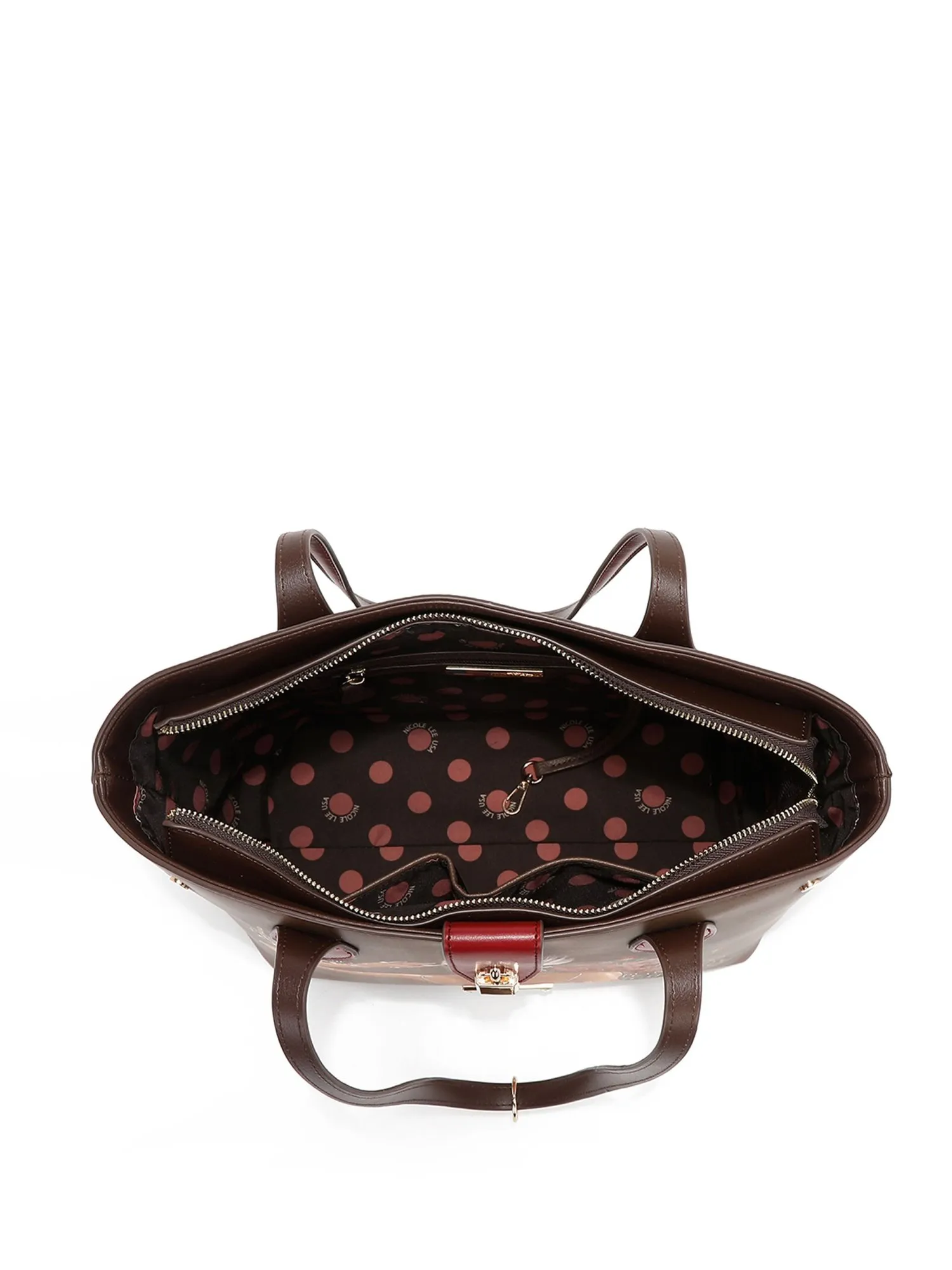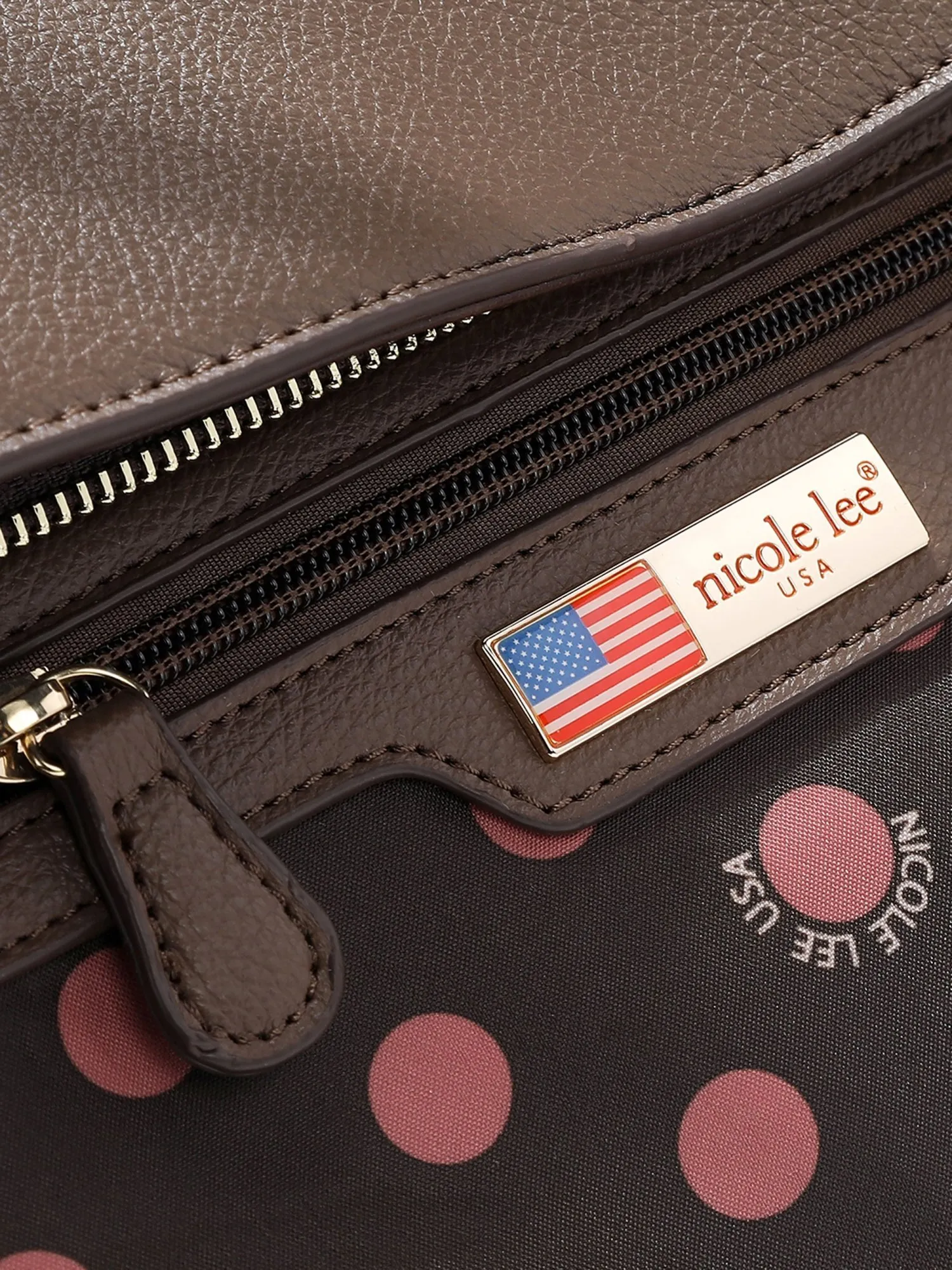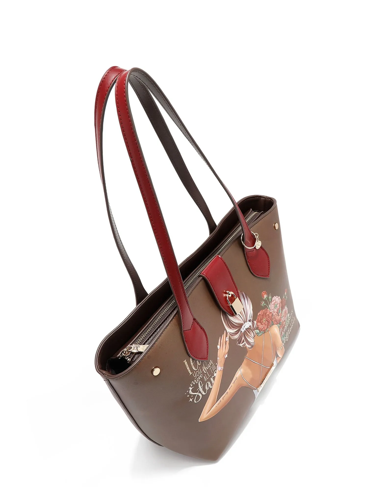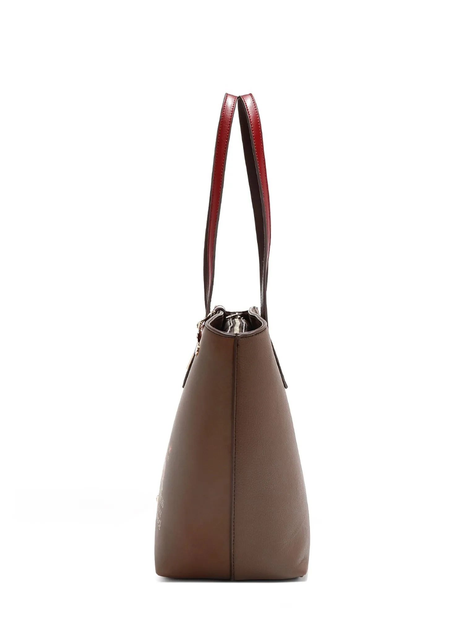 Дизайн сумки понравится вам, спереди на сумке фирменный принт коллекции и декоративный хлястик с замочком. На бежевой экокоже есть еле заметные бордовые пятна, имитирующие небрежную окраску, это добавляет сумке немного стиля гранж и хулиганства. На ручке маленькая фирменная подвеска. Вмещает листы формата А4.