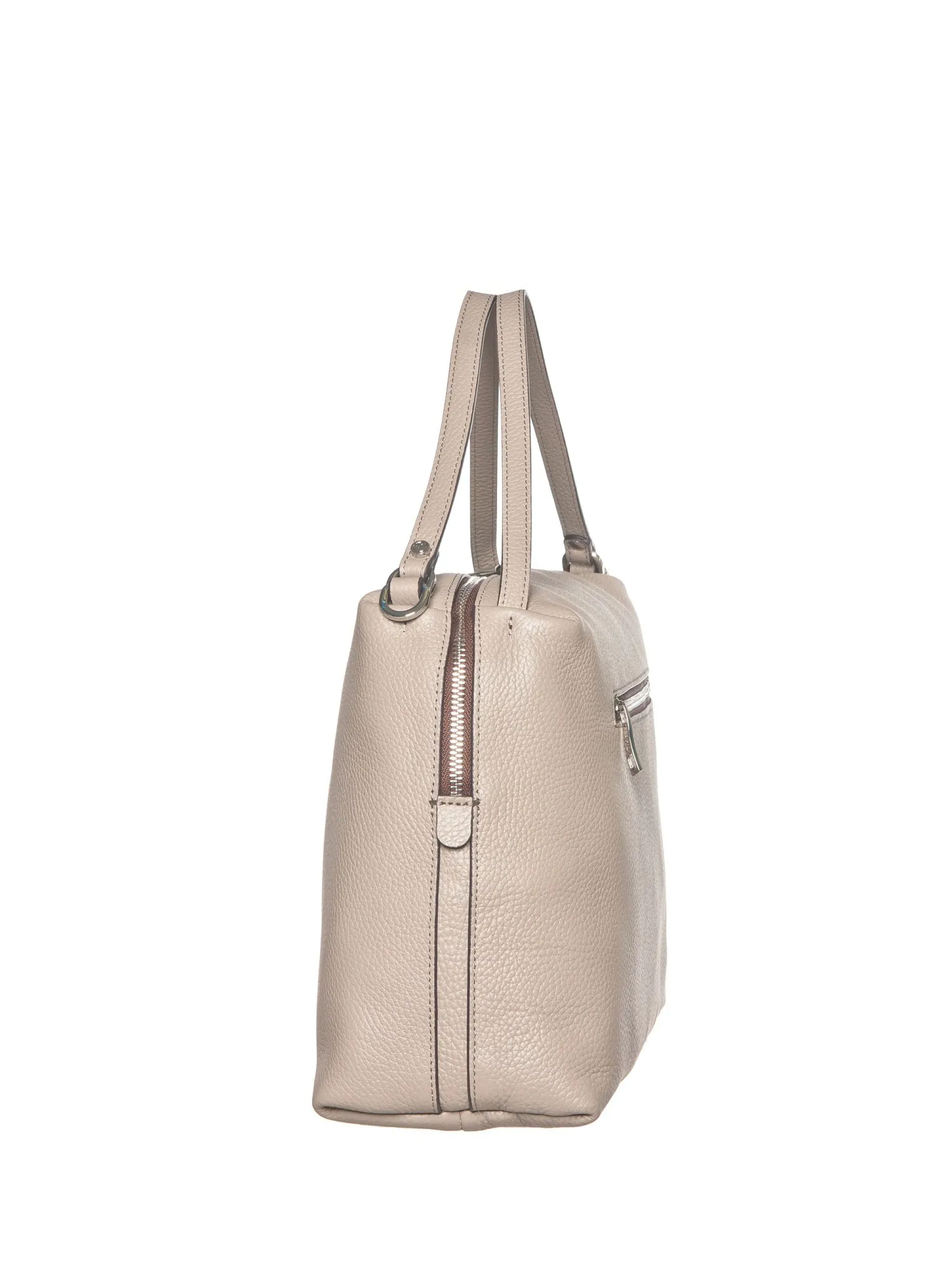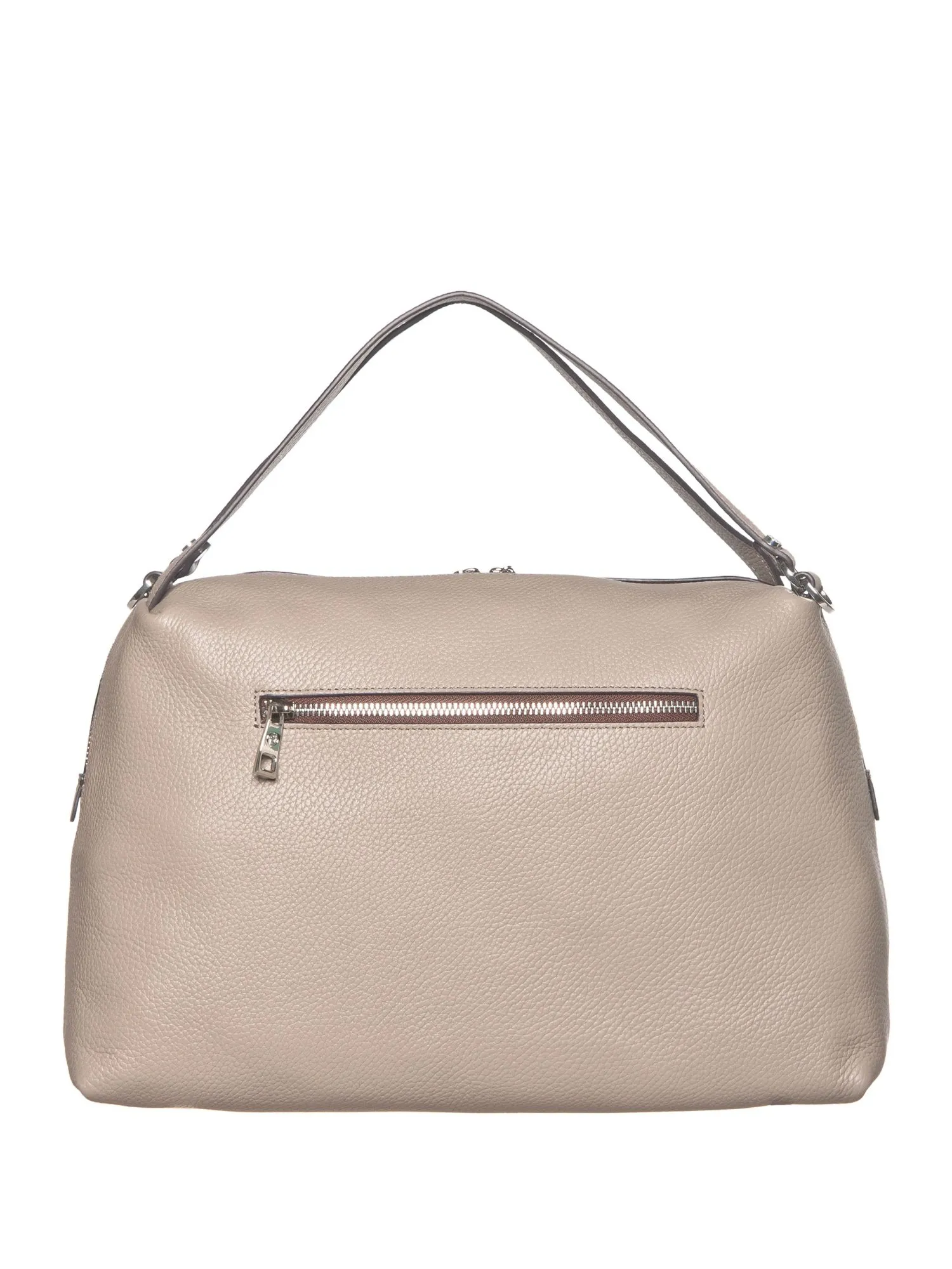 Сзади сумки имеется карман на молнии, где вы можете хранить важные мелочи или телефон. Впереди сумку украшает элегантный металлический логотип, который придает ей дополнительный шарм. Основное отделение закрывается на молнию, внутри просторное внутреннее отделение, в котором есть открытый карман и карман на молнии. Это позволяет вам организовать свои вещи легко и удобно. В сумку помещается формат А4.