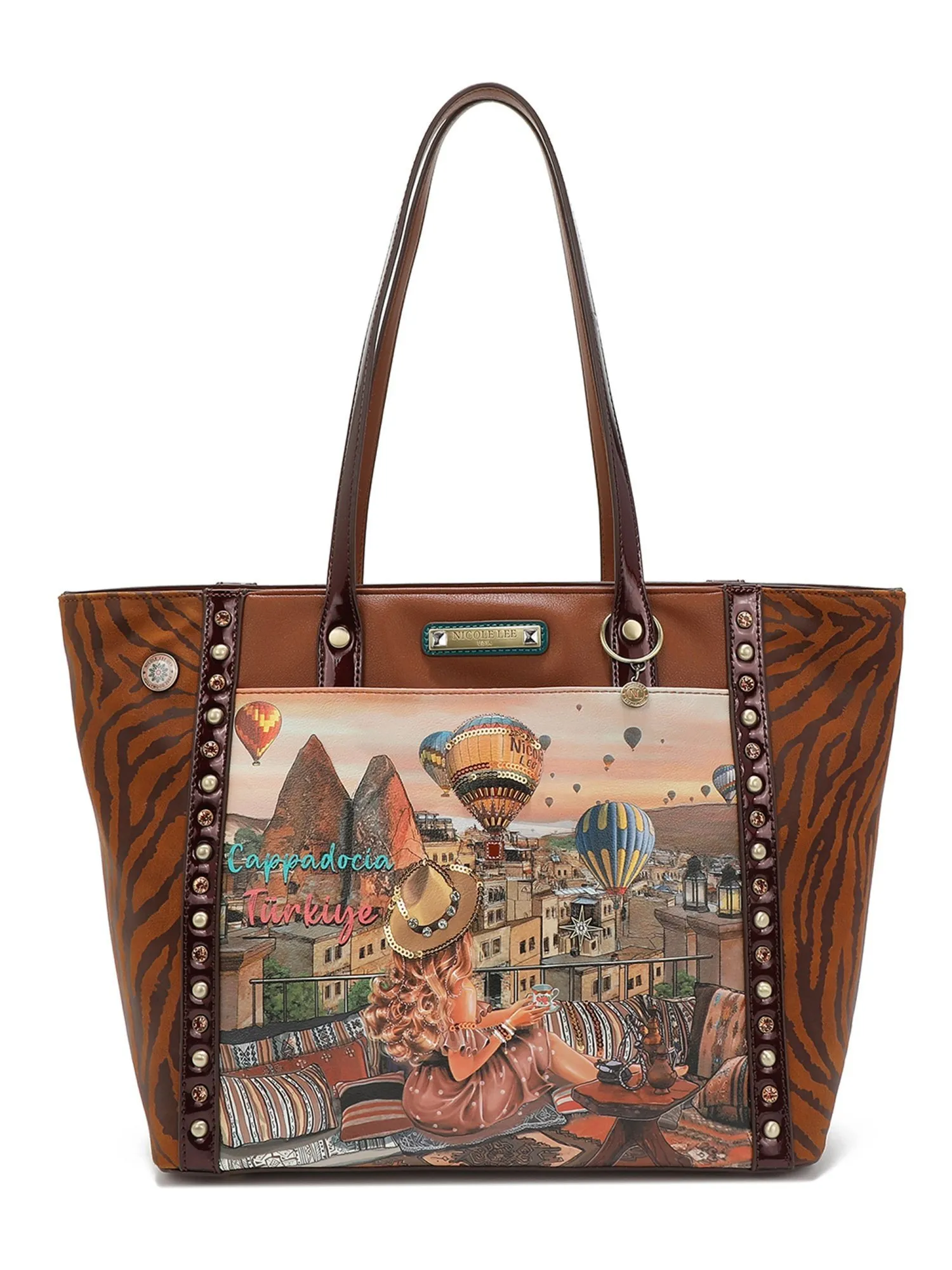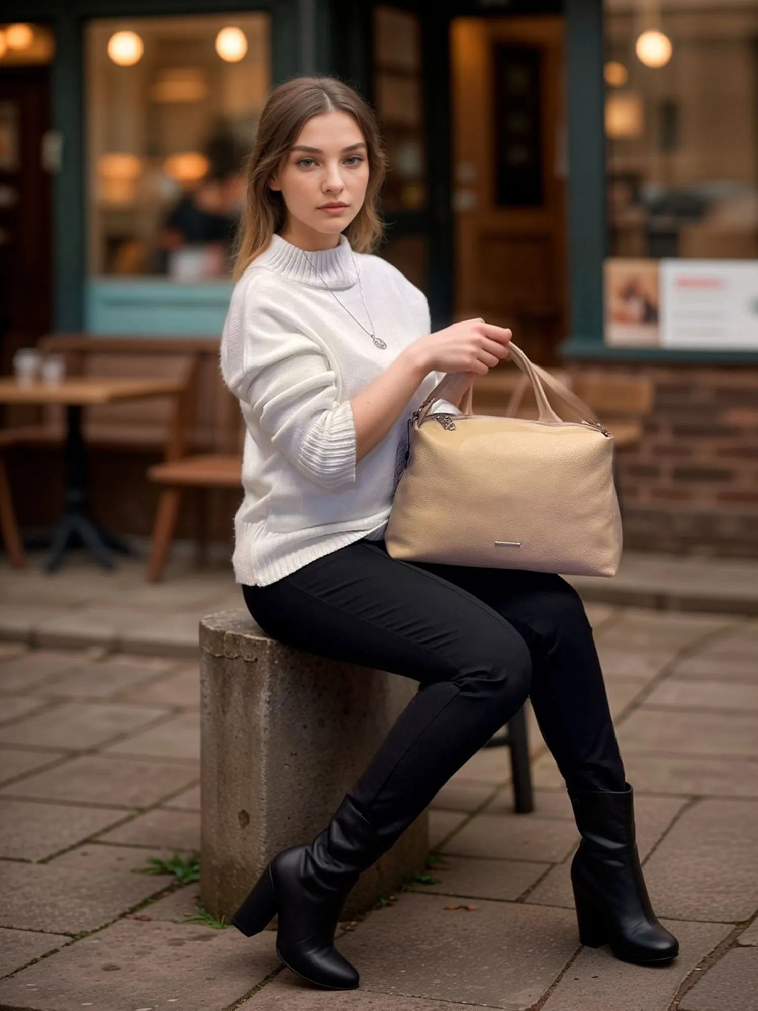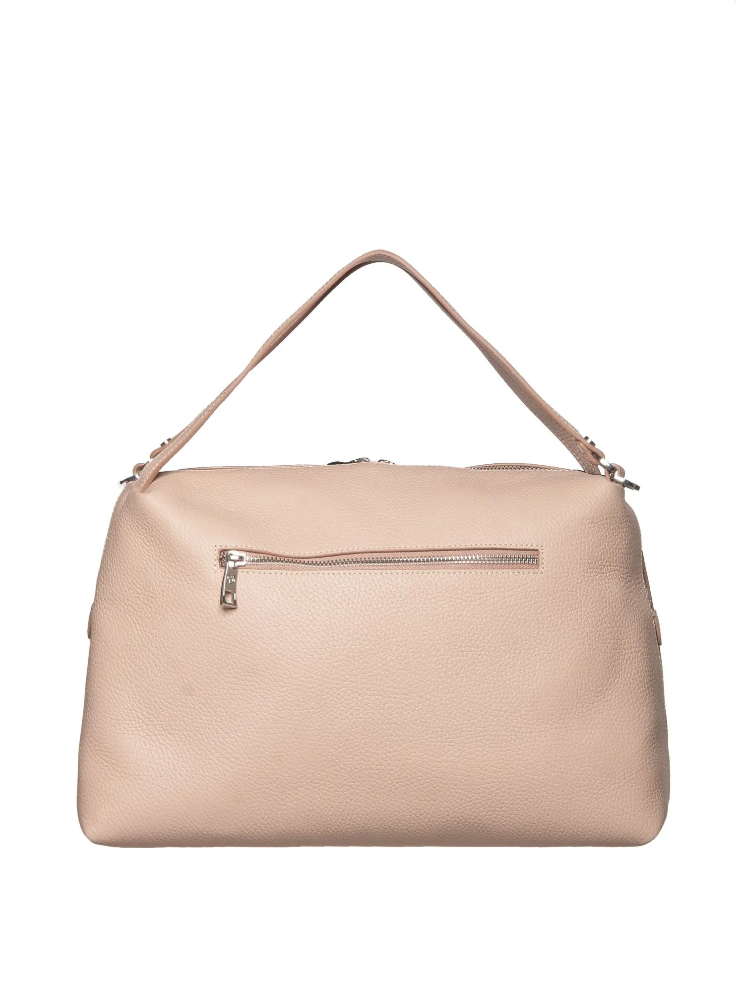 Сзади сумки имеется карман на молнии, где вы можете хранить важные мелочи или телефон. Впереди сумку украшает элегантный металлический логотип, который придает ей дополнительный шарм. Основное отделение закрывается на молнию, внутри просторное внутреннее отделение, в котором есть открытый карман и карман на молнии. Это позволяет вам организовать свои вещи легко и удобно. В сумку помещается формат А4.