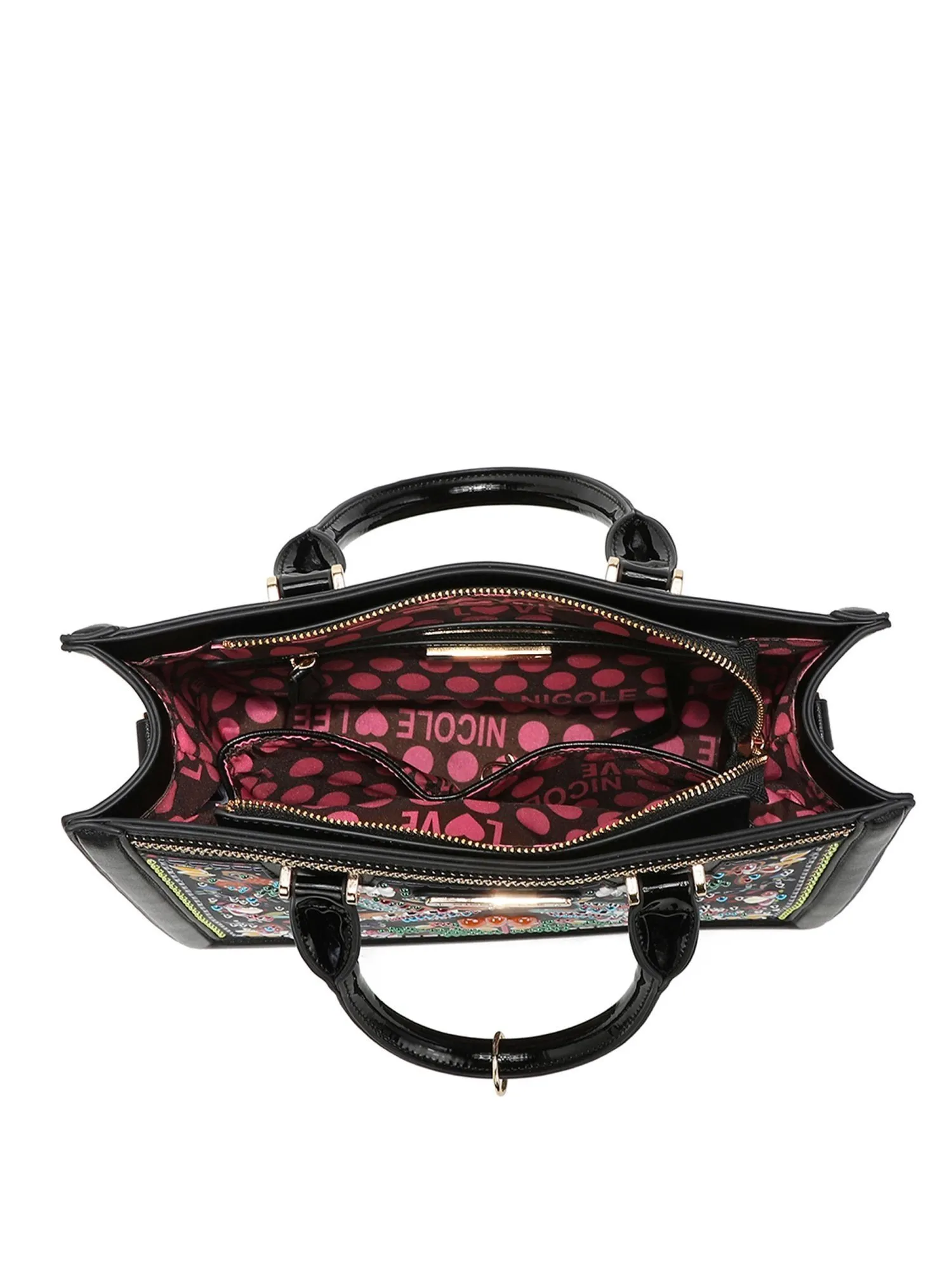 Главное отделение сумки закрывается на молнию, что обеспечивает безопасность и надежность хранения ваших вещей, внутри есть карман на молнии и открытый карман, а так же ремешок для ключей. С двух сторон от основного отделения есть два открытых отделения для быстрого доступа. Эта черная сумка имеет жесткую форму и ремень с длиной 125 см, который позволяет носить ее как через плечо, так и на плече. Сумка среднего размера идеально подойдет для офиса, работы или повседневного использования. Почувствуйте комфорт и стиль с модной сумкой от NICOLE LEE.