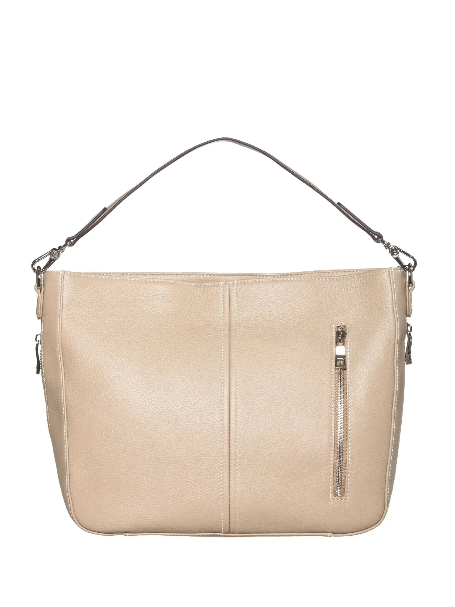 Сзади сумки имеется карман на молнии, где вы можете хранить важные мелочи. Впереди сумку украшает элегантный металлический логотип, который придает ей дополнительный шарм. Основное отделение закрывается на молнию, внутри просторное внутреннее отделение, в котором есть открытый карман и карман на молнии. Это позволяет вам организовать свои вещи легко и удобно. В сумку помещается формат А4.