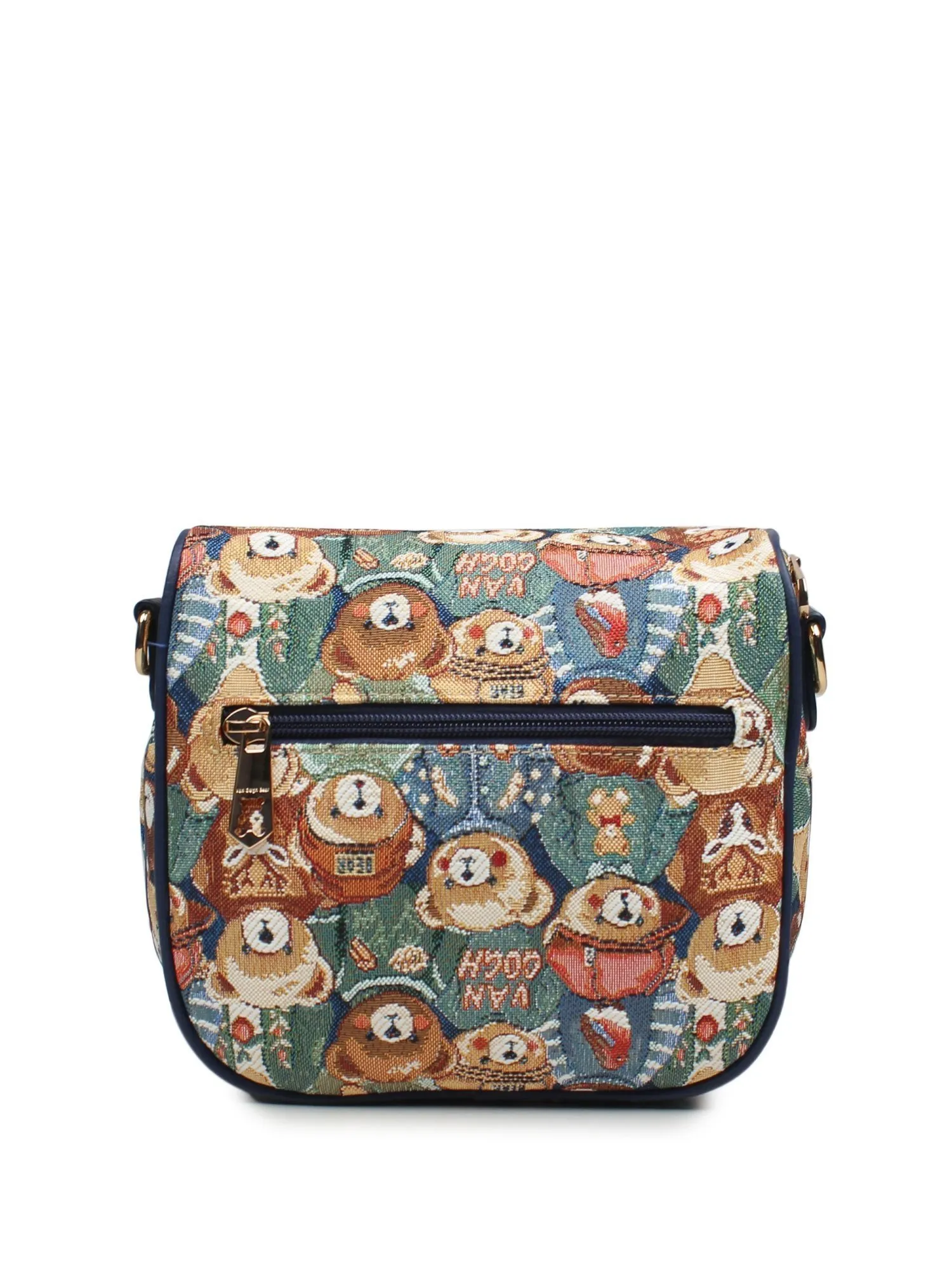 Встречайте задорного мишку Henney Bear! Перед вами сумка кросс-боди интересной формы с длинным регулируемым ремнем. Дизайн лаконичен, но не без интересных деталей: фирменный принт и элегантные бегунки с профилем медвежонка. Основное отделение закрывается на молнию. Внутри несколько удобных кармашков – накладной и на молнии, а также фирменная подкладка. Для карточек, пропусков или ценных мелочей на лицевой и оборотной сторонах есть карманы на молнии. Яркие тона и задорные принты - то что нужно для украшения гардероба!