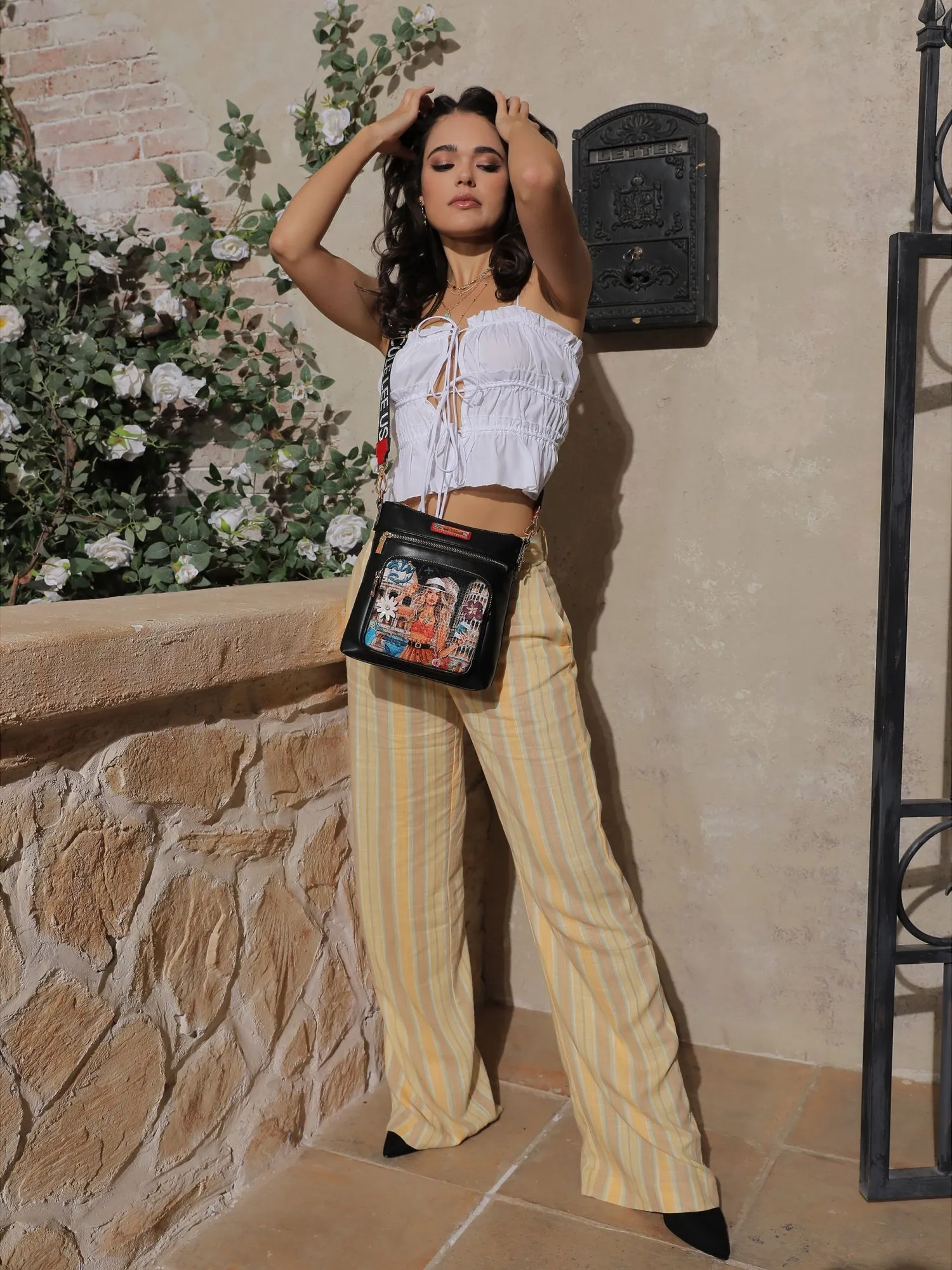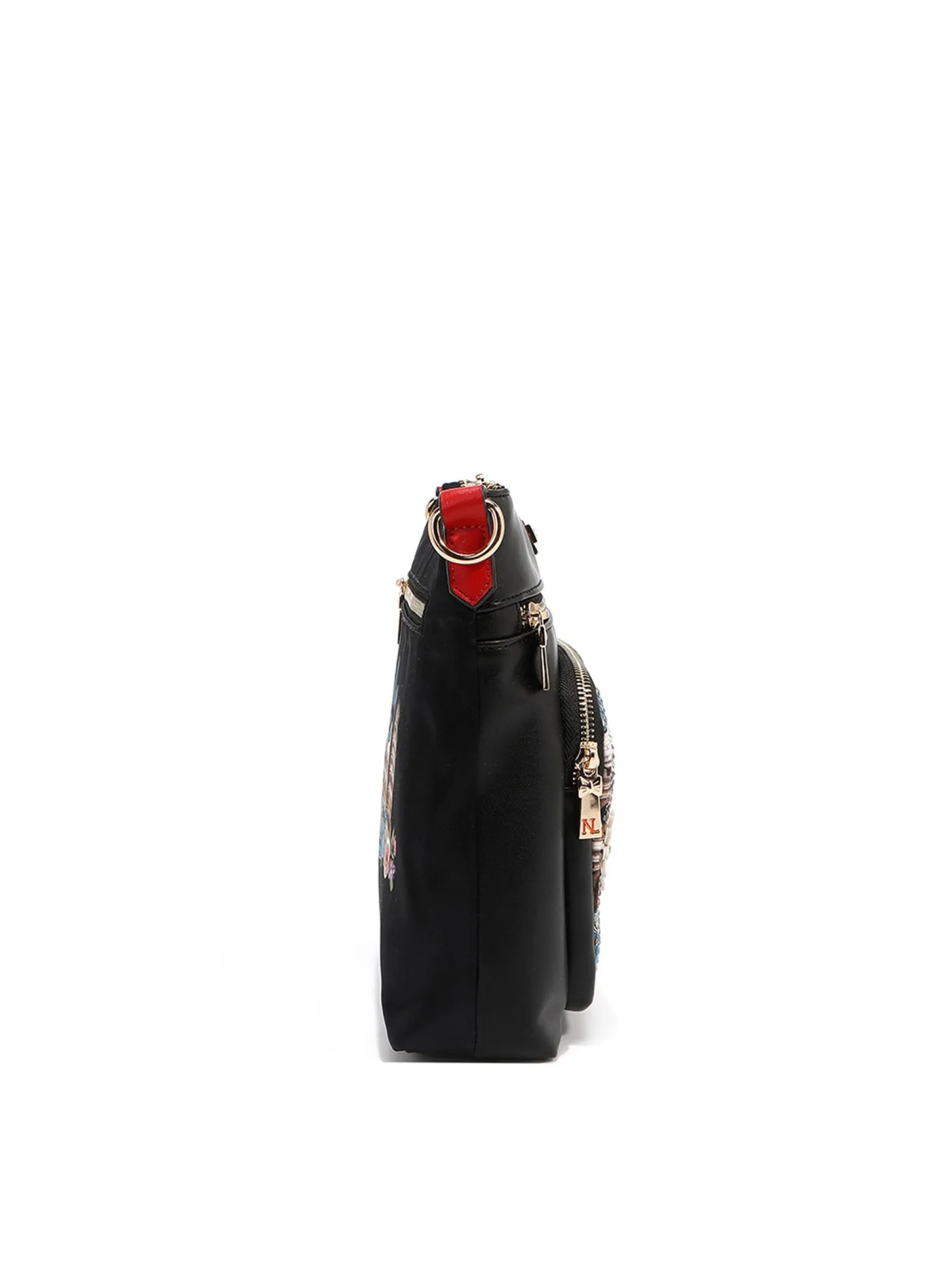 Планшет из коллекции MARTHA TRAVELS ITALY – универсальный и шикарный аксессуар с множеством отделений и карманов. Эта женская сумка через плечо имеет основу из экокожи, с ярким передним крманом из текстиля с принтом и прозрачными стразами, создающими переливающийся эффект. Украшена выпуклыми цветами и металлическоой звездой. Задняя сторона сумки выполнена из бархатного текстиля.