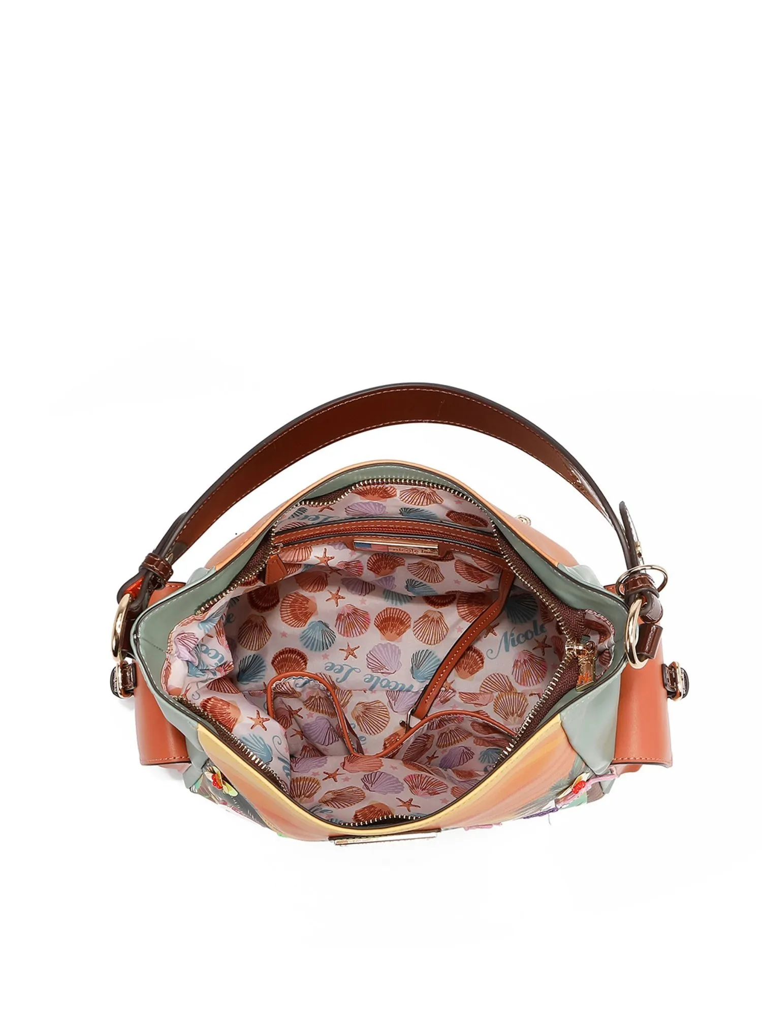 Основное отделение на молнии, внутри карман на молнии, ремешок для ключей и два открытых кармана. В сумку помещается листы формата А4, но при этом края немного округляться. Внутренняя подкладка из полиэстера с принтом премиум-класса. На задней стороне есть вместительный карман на молнии для телефона. Боковые карманы на магнитных кнопках идеальны для мелких вещей. На дне есть металлические ножки, которые защитят от загрязнений. В комплекте есть длинный регулируемый ремень, благодаря которому сумку можно носить через плечо.