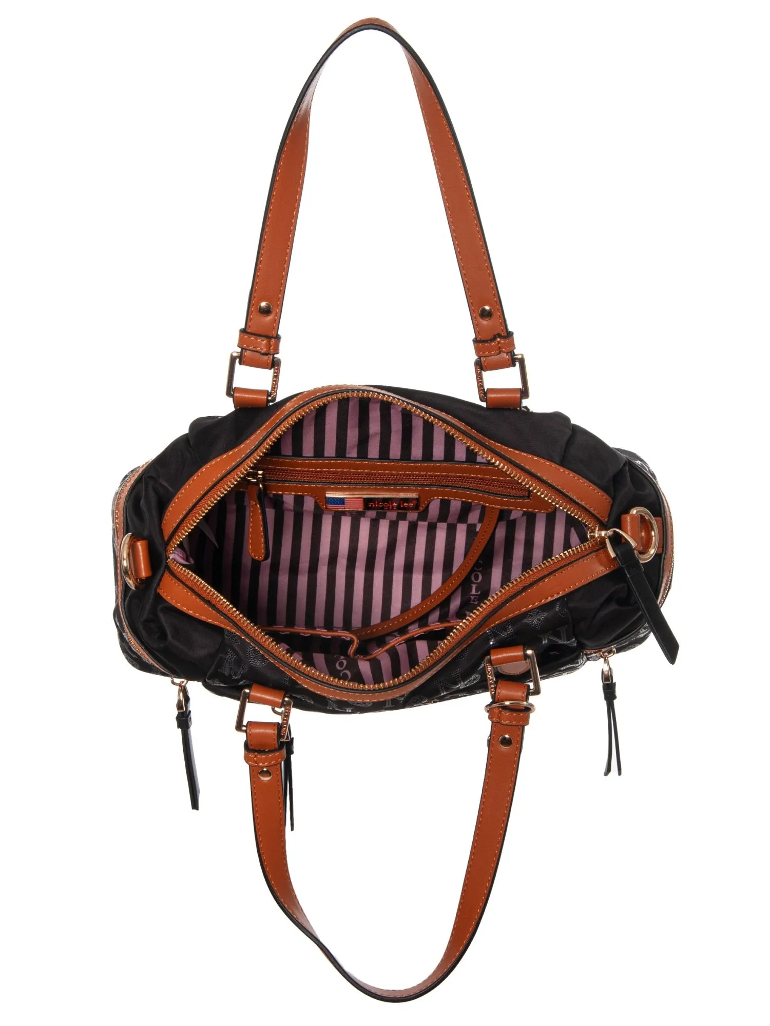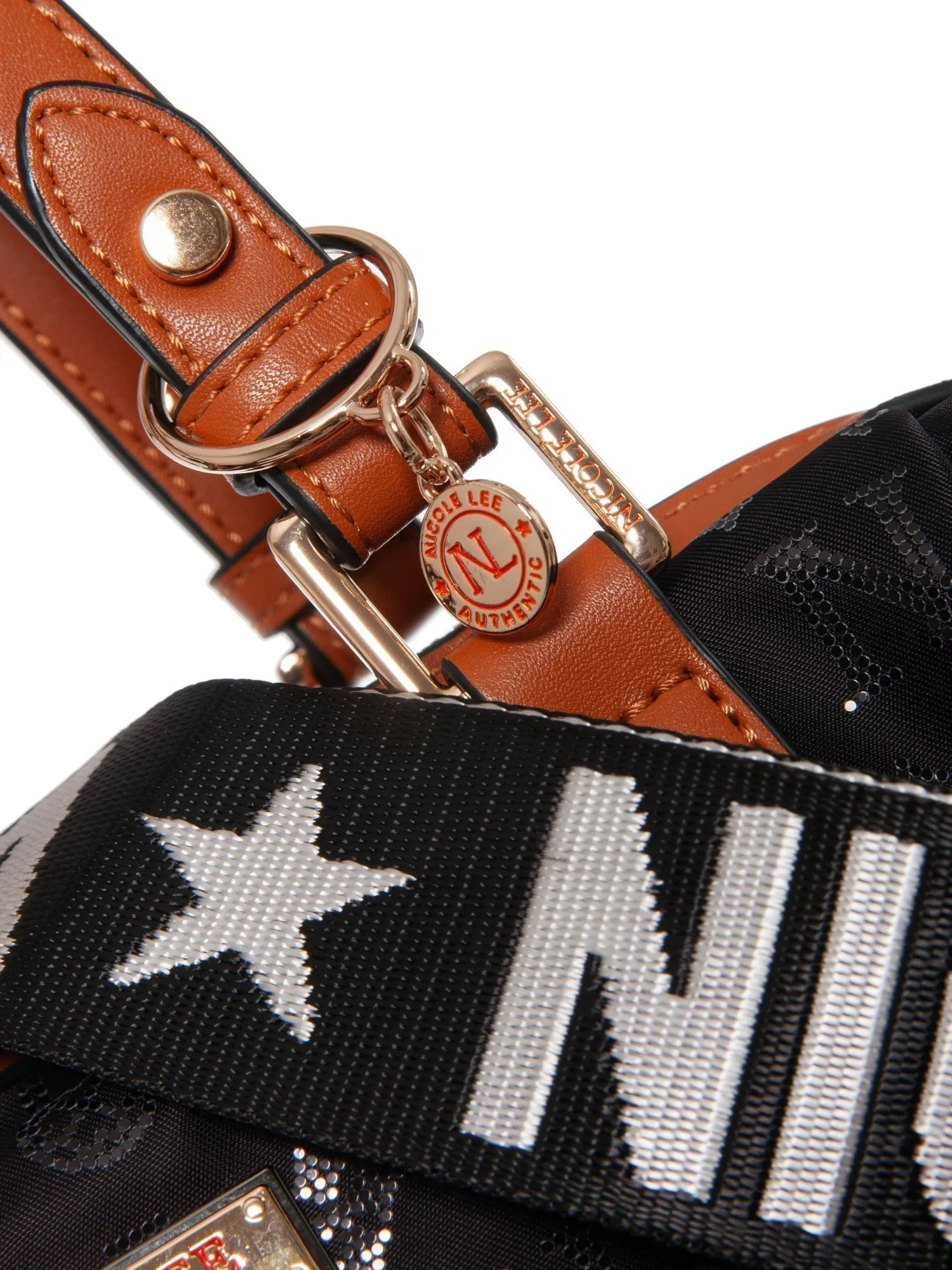 Особый шарм сумке придает фактура материала: текстиль с блестящей гравировкой логотипа Nicole Lee создает изысканный переливающийся эффект, добавляя образу нотки роскоши и делая аксессуар по-настоящему запоминающимся.
