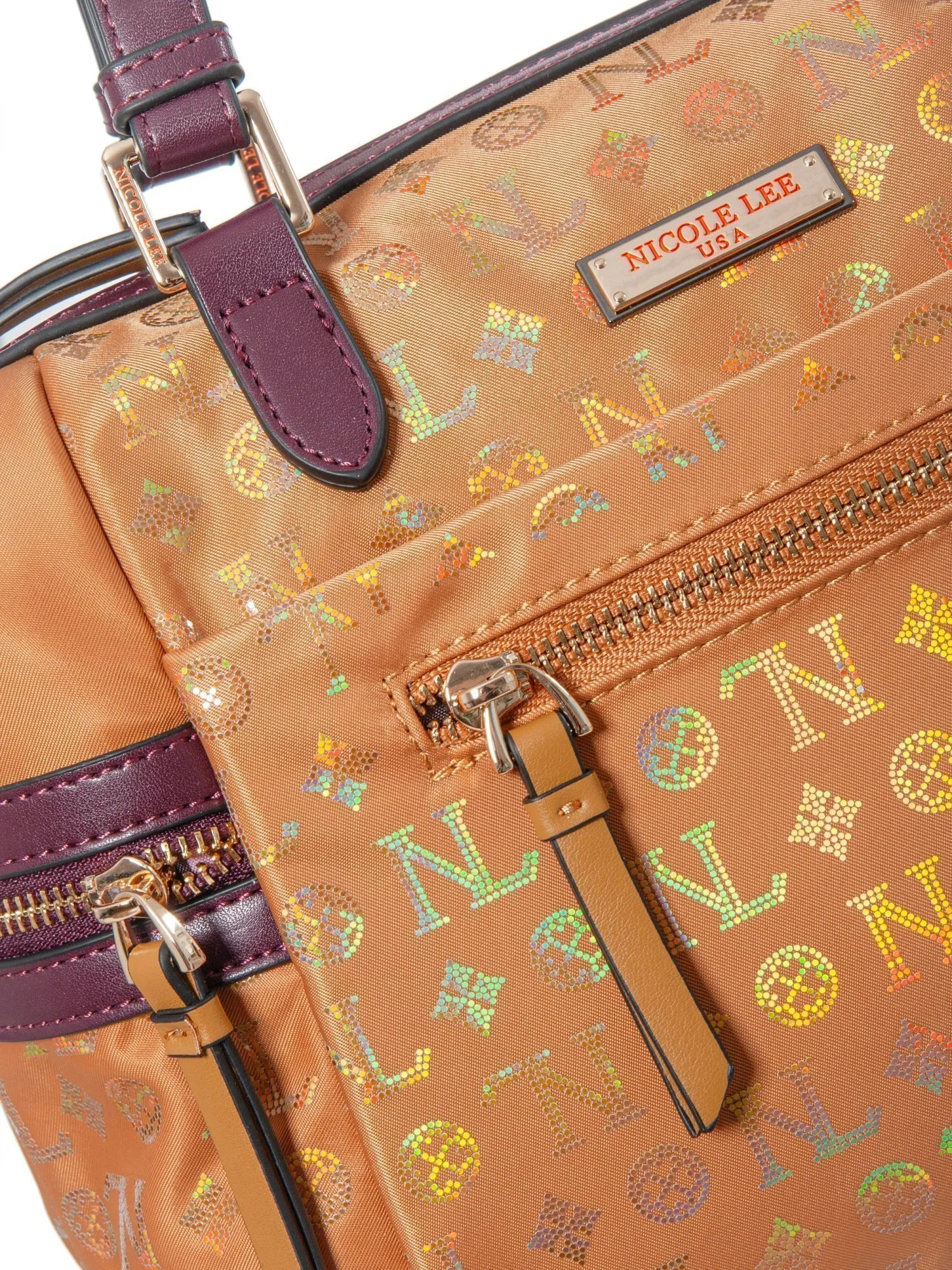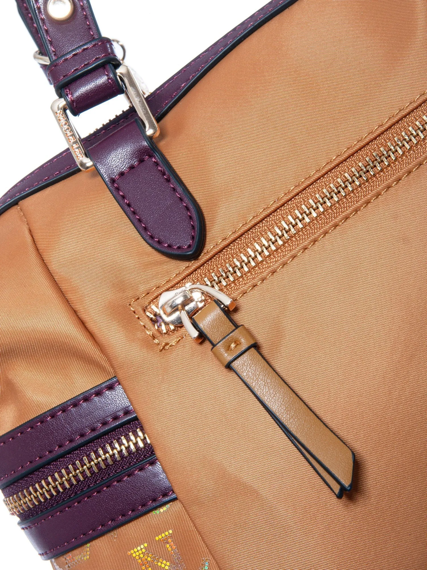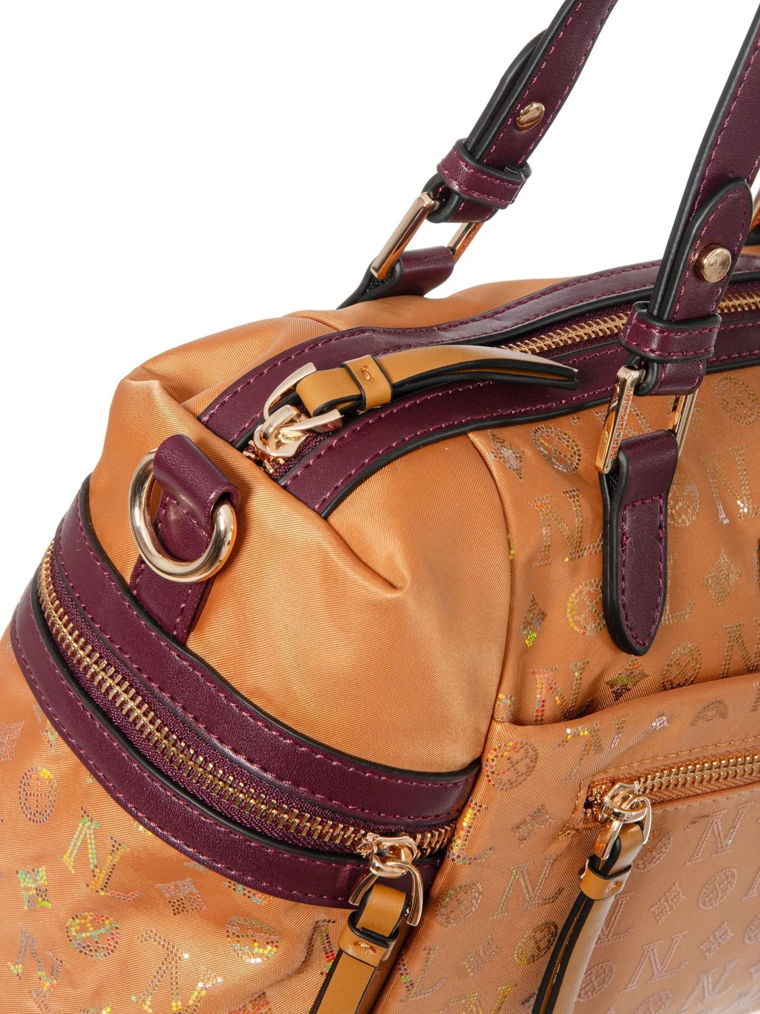 Особый шарм сумке придает фактура материала: текстиль с блестящей гравировкой логотипа Nicole Lee создает изысканный переливающийся эффект, добавляя образу нотки роскоши и делая аксессуар по-настоящему запоминающимся.