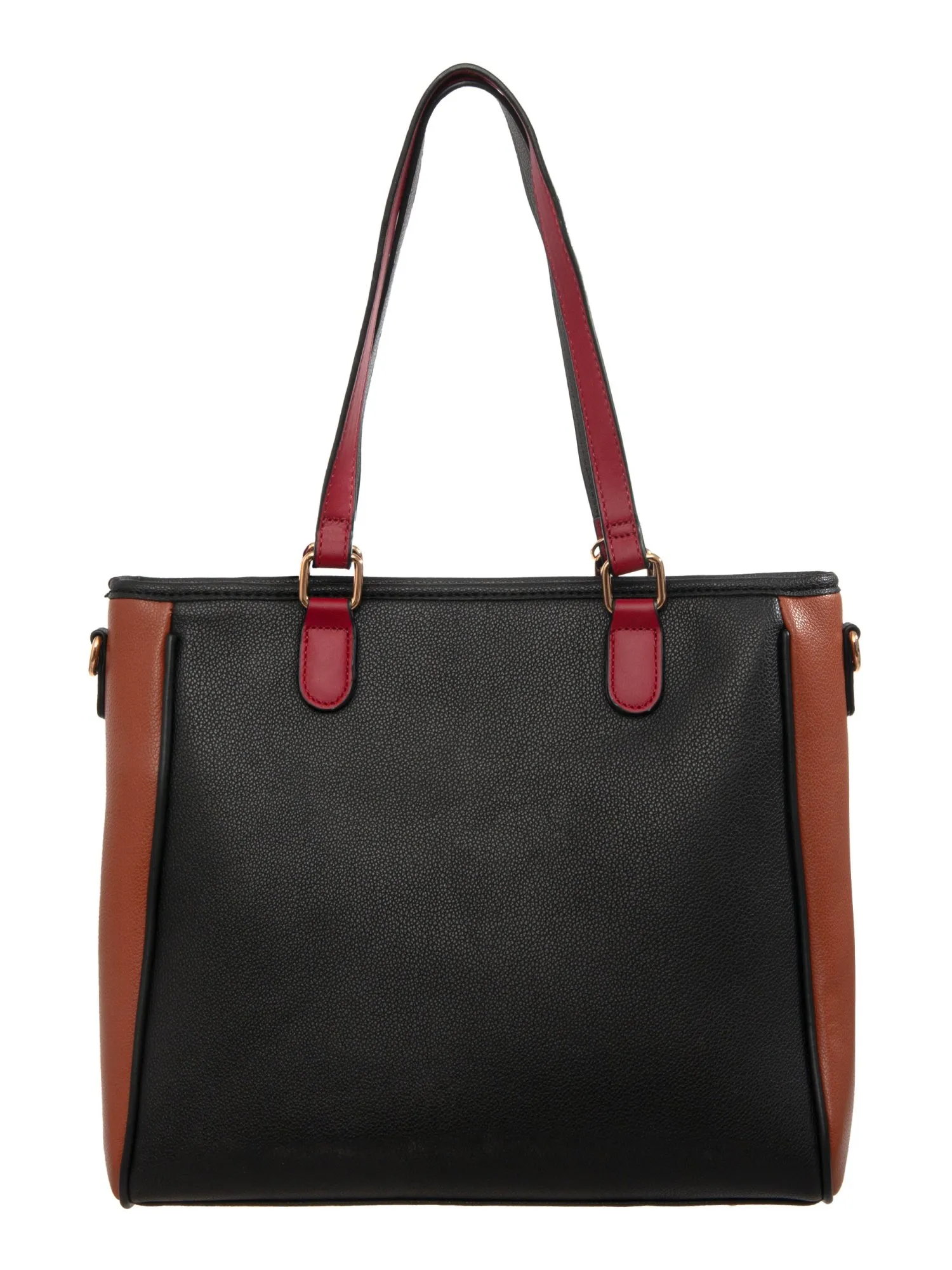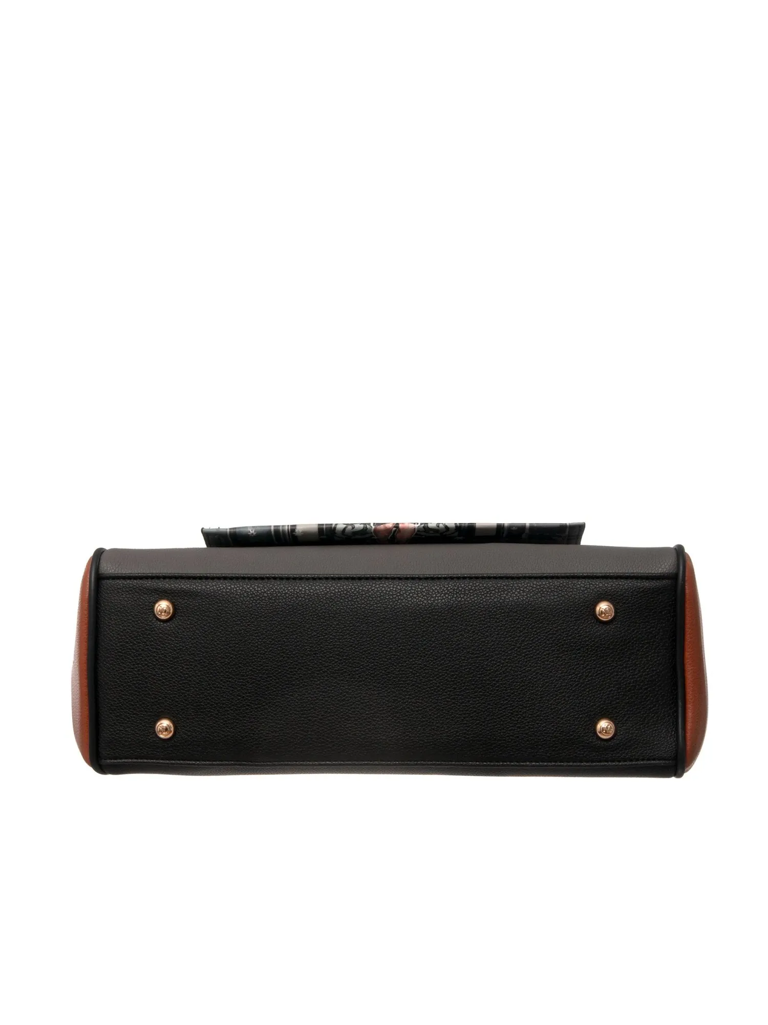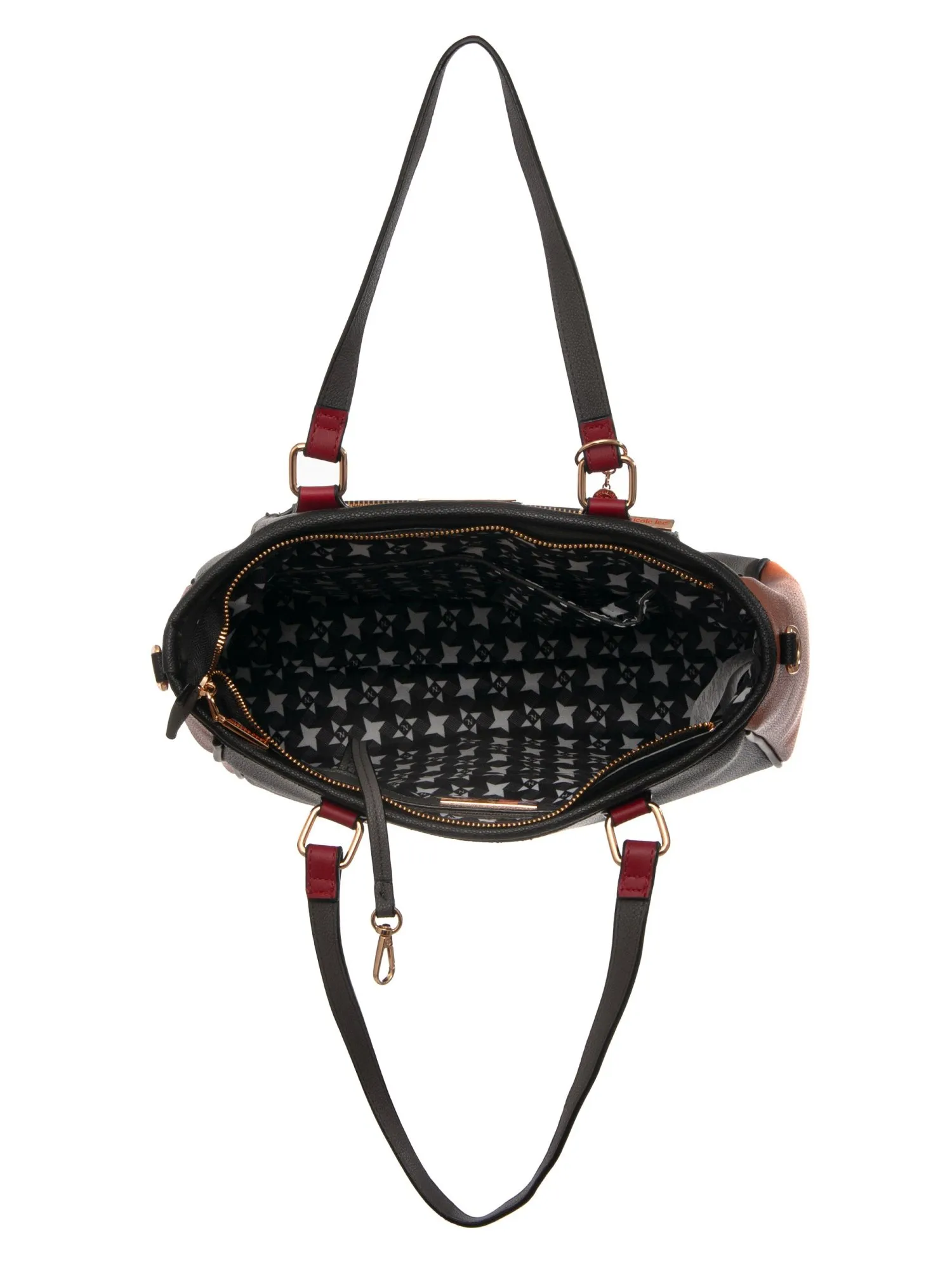 Легкая и элегантная сумка-шоппер с двумя длинными ручками воплощает в себе утонченность и практичность. Модель выполнена в благородном сочетании серого, коричневого и бордового цветов, что делает её идеальным дополнением как повседневных, так и вечерних луков. Спереди расположен большой накладной карман на молнии, украшенный фирменным принтом коллекции, а на ручках красуется стильная подвеска, подчеркивающая внимание к деталям. На дне сумки металлические ножки защищают аксессуар от повреждений и сохраняют его безупречный вид.