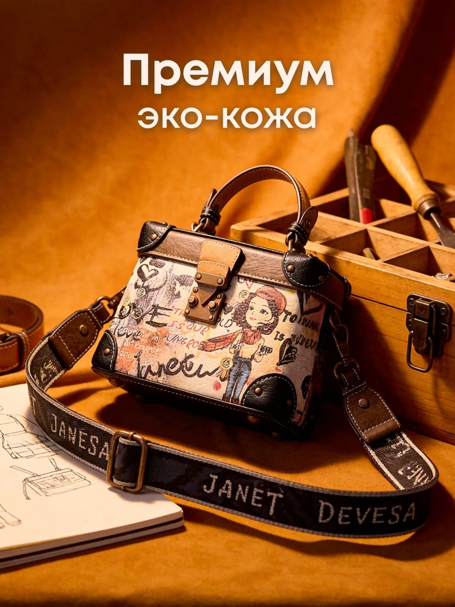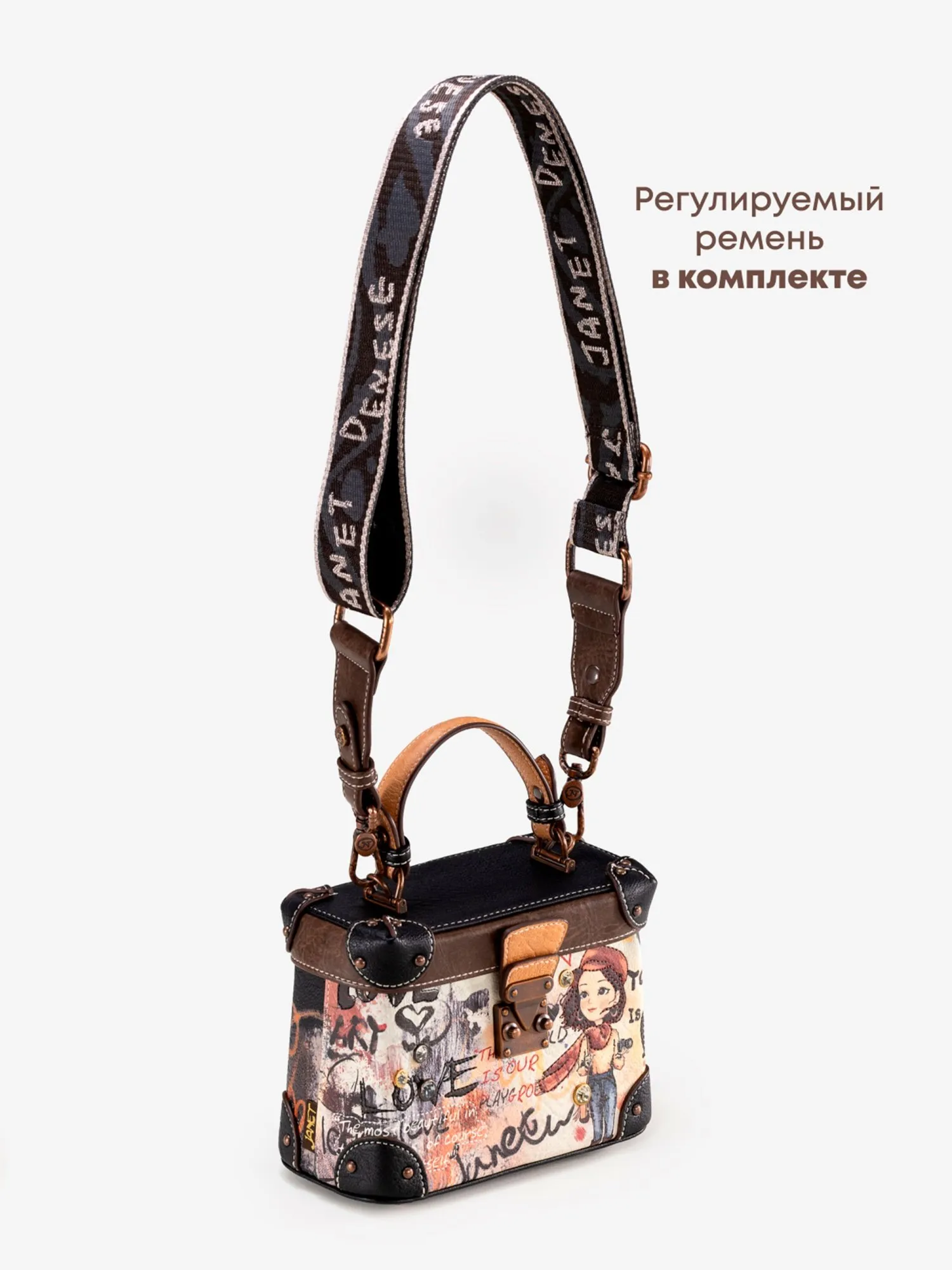 Идеальная для вечерних выходов, особых мероприятий или повседневного использования, эта сумка станет вашим универсальным аксессуаром, сочетающим в себе искусство, функциональность и неповторимый дизайн. Носите с собой JANET, чтобы превращать улицы в галерею стиля, где вы — главный экспонат.