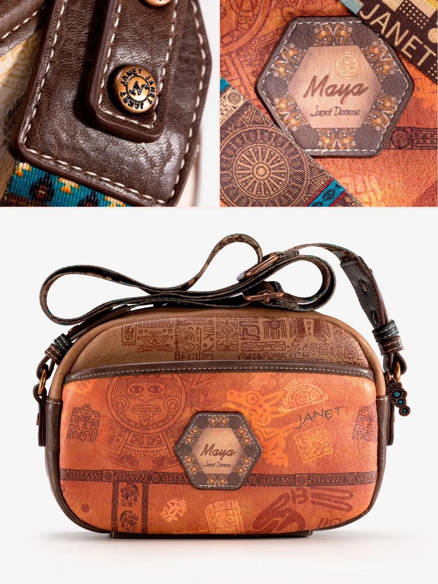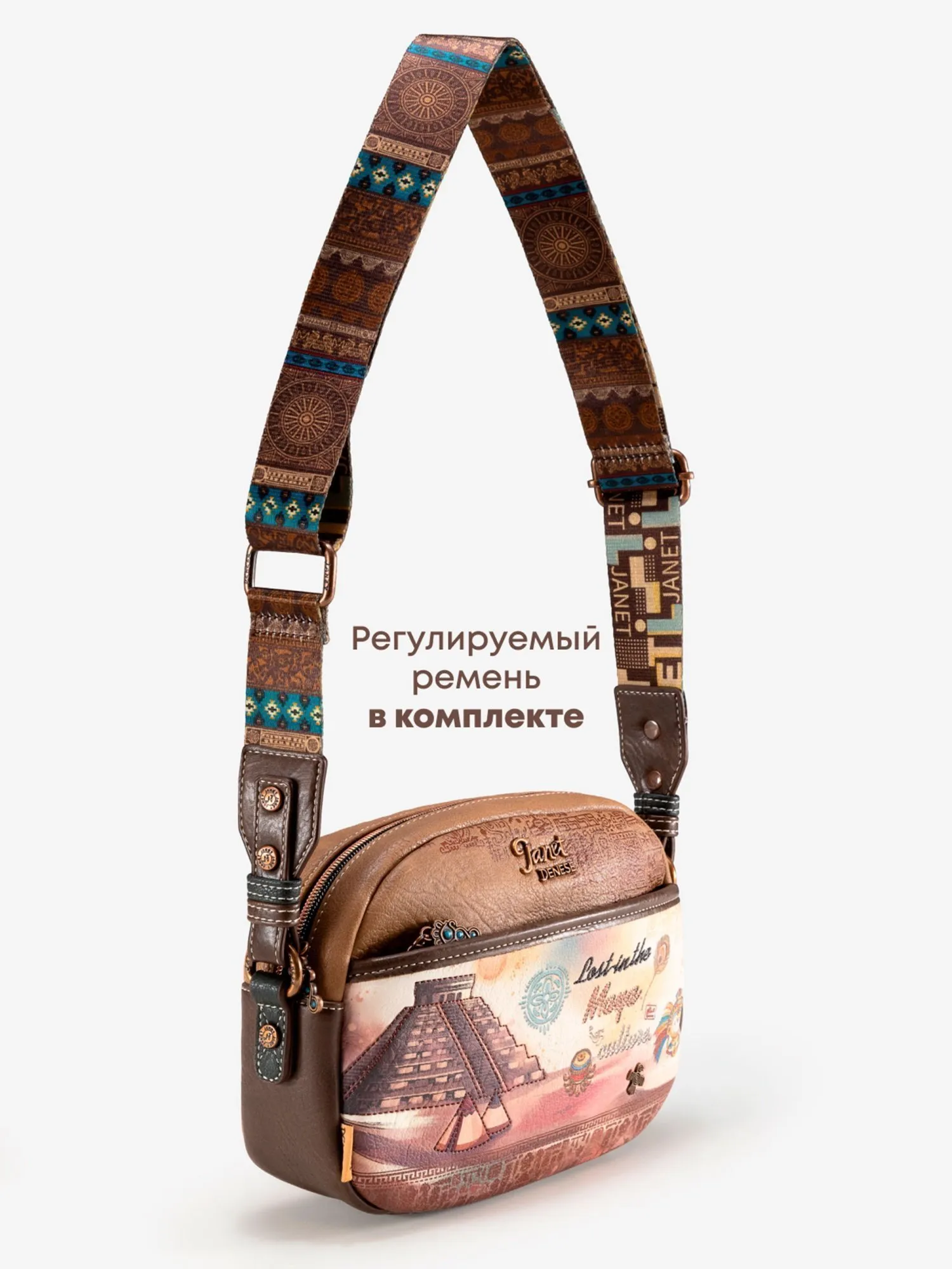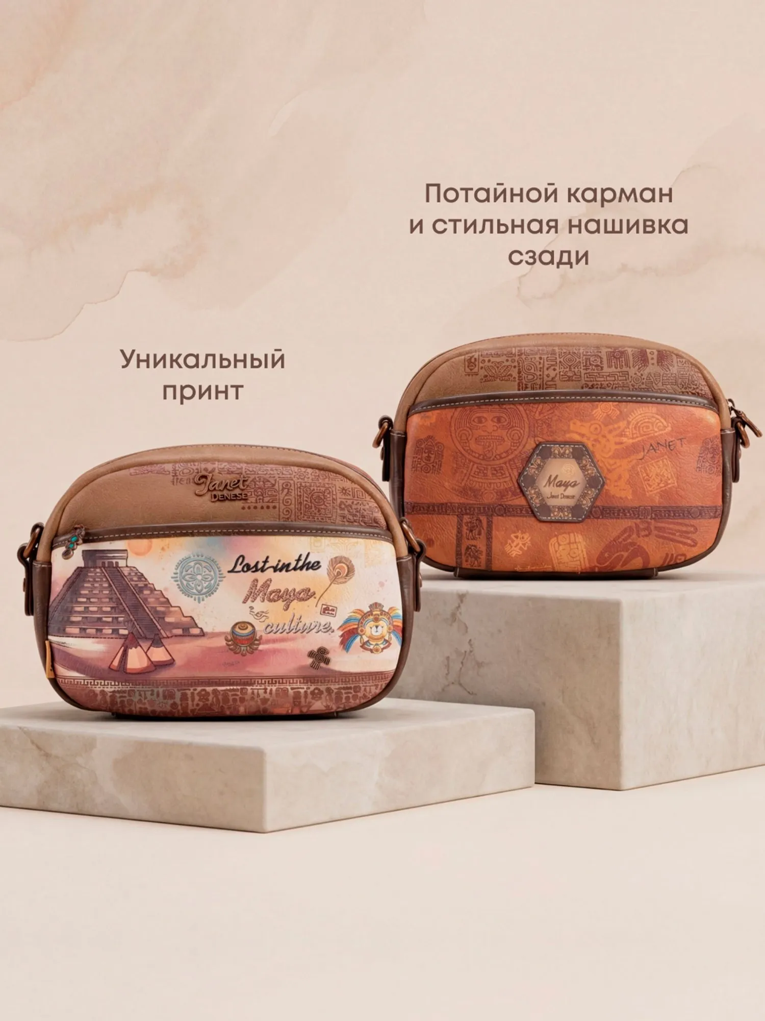 Сумка кросс-боди JANET из коллекции «MAYA» — это не просто аксессуар, а путешествие в загадочный мир древней цивилизации, воплощенное в современном дизайне. Идеальная для повседневного использования, она сочетает функциональность и уникальную эстетику. Основное отделение на молнии надежно хранит ваши вещи, а внутри вас ждут продуманные детали — карман на молнии для ценных мелочей и открытый карман для аксессуаров. На лицевой и оборотной сторонах расположены большие скрытые карманы на молнии. Широкий регулируемый ремень обеспечивает удобство ношения через плечо в стиле кросс-боди.