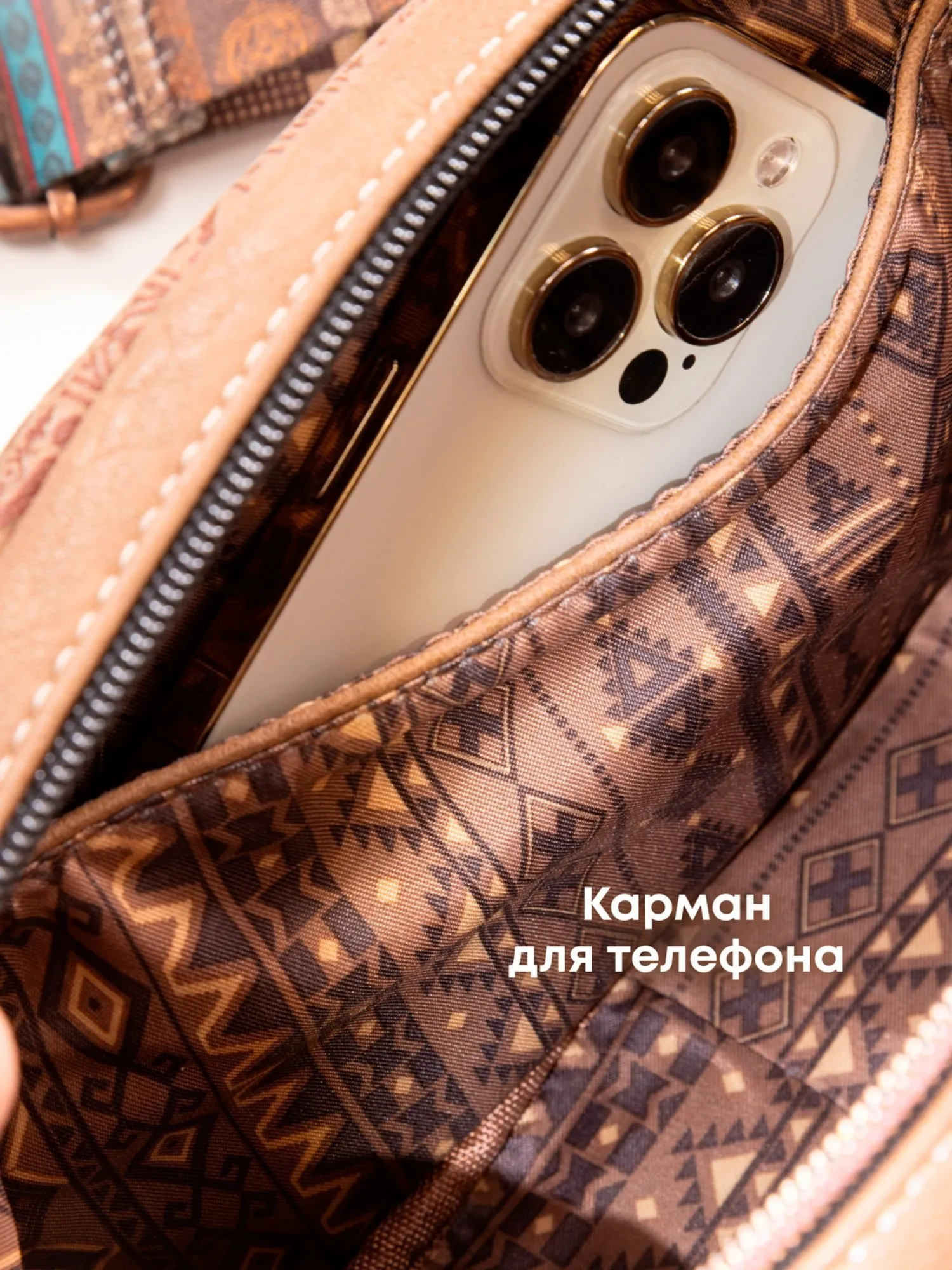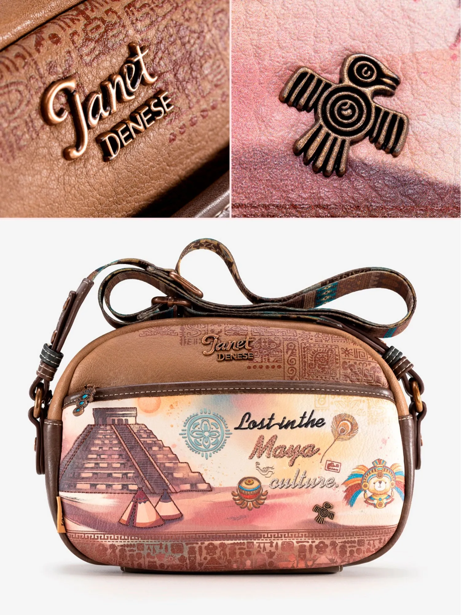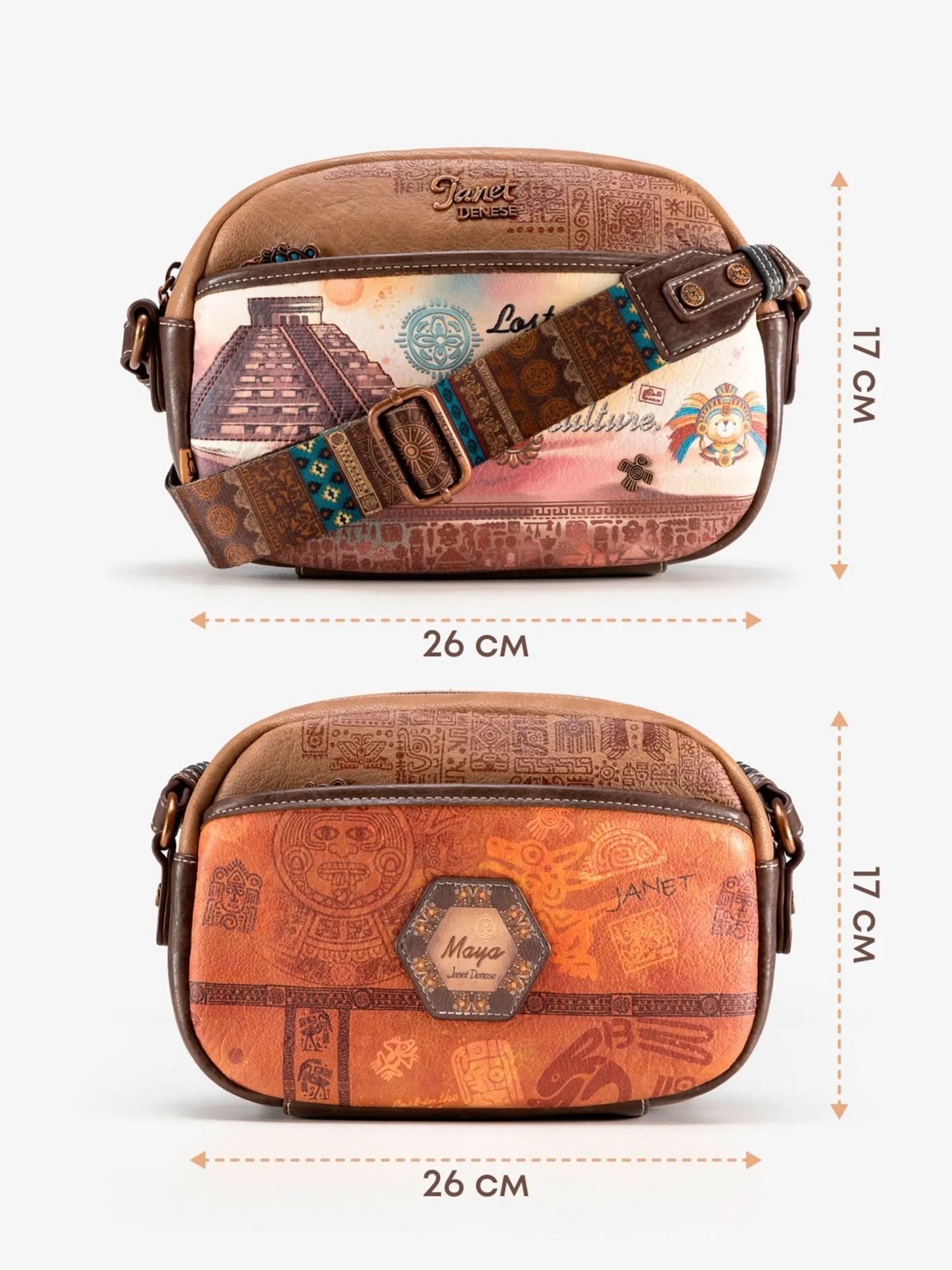 Сумка кросс-боди JANET из коллекции «MAYA» — это не просто аксессуар, а путешествие в загадочный мир древней цивилизации, воплощенное в современном дизайне. Идеальная для повседневного использования, она сочетает функциональность и уникальную эстетику. Основное отделение на молнии надежно хранит ваши вещи, а внутри вас ждут продуманные детали — карман на молнии для ценных мелочей и открытый карман для аксессуаров. На лицевой и оборотной сторонах расположены большие скрытые карманы на молнии. Широкий регулируемый ремень обеспечивает удобство ношения через плечо в стиле кросс-боди.
