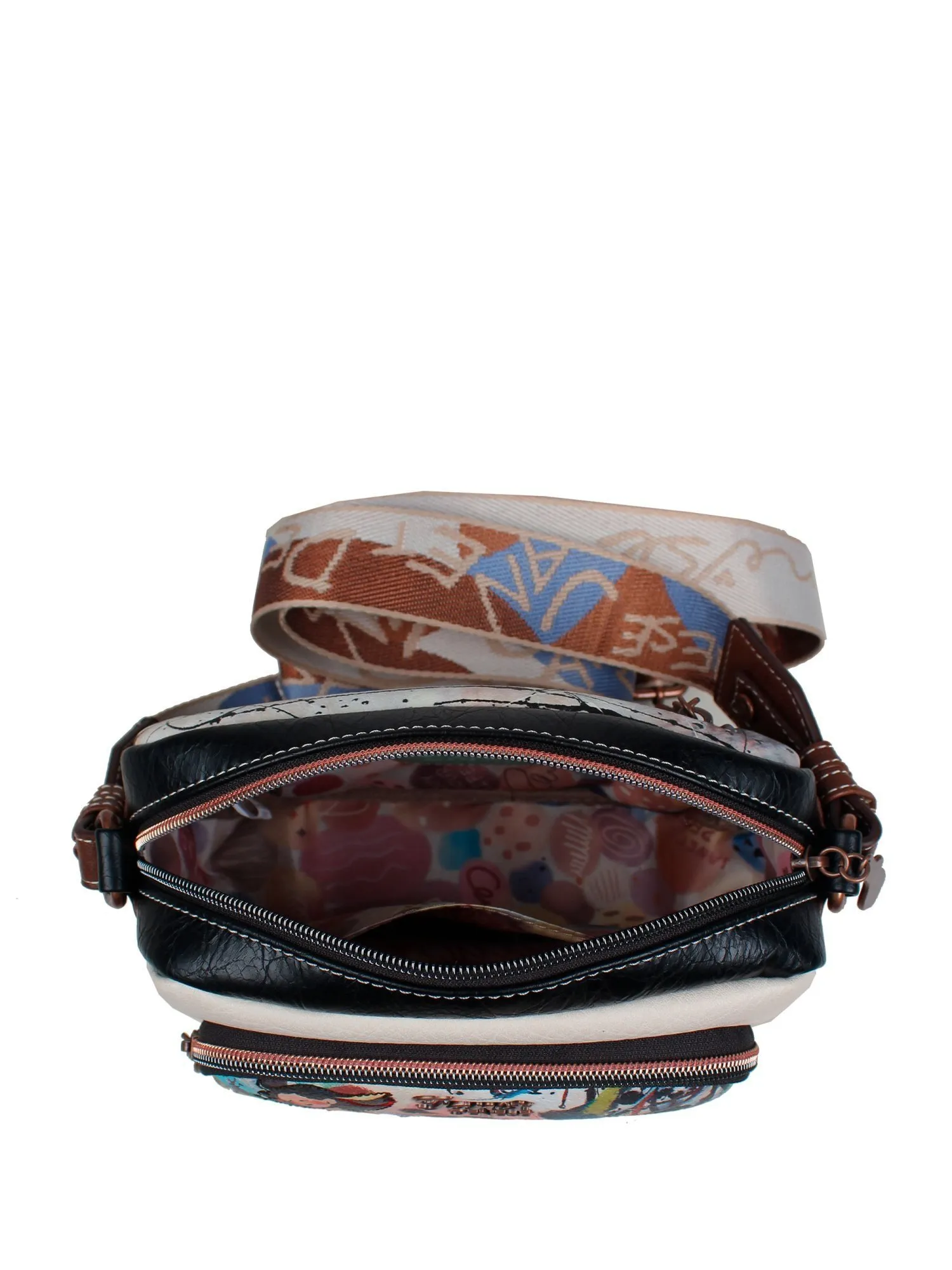 Основное отделение на молнии открывает продуманное внутреннее пространство с карманом на молнии для ценных мелочей и большим открытым карманом для телефона или аксессуаров. Длинный широкий ремень с регулировкой позволяет носить сумку через плечо или в стиле кросс-боди, обеспечивая комфорт в течение всего дня. Идеальный выбор для прогулок, встреч с друзьями или вечерних выходов — эта сумка сочетает в себе легкость, функциональность и неповторимый дизайн, который расскажет вашу историю.