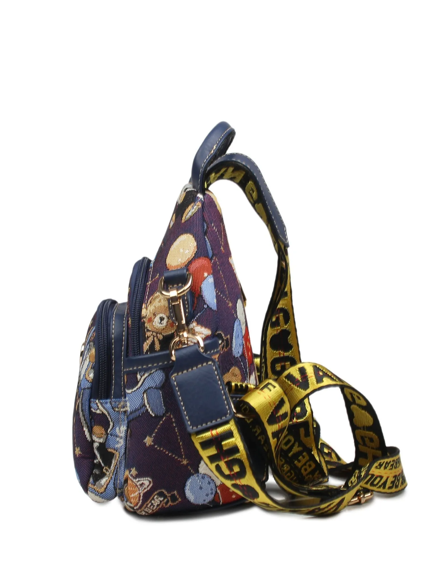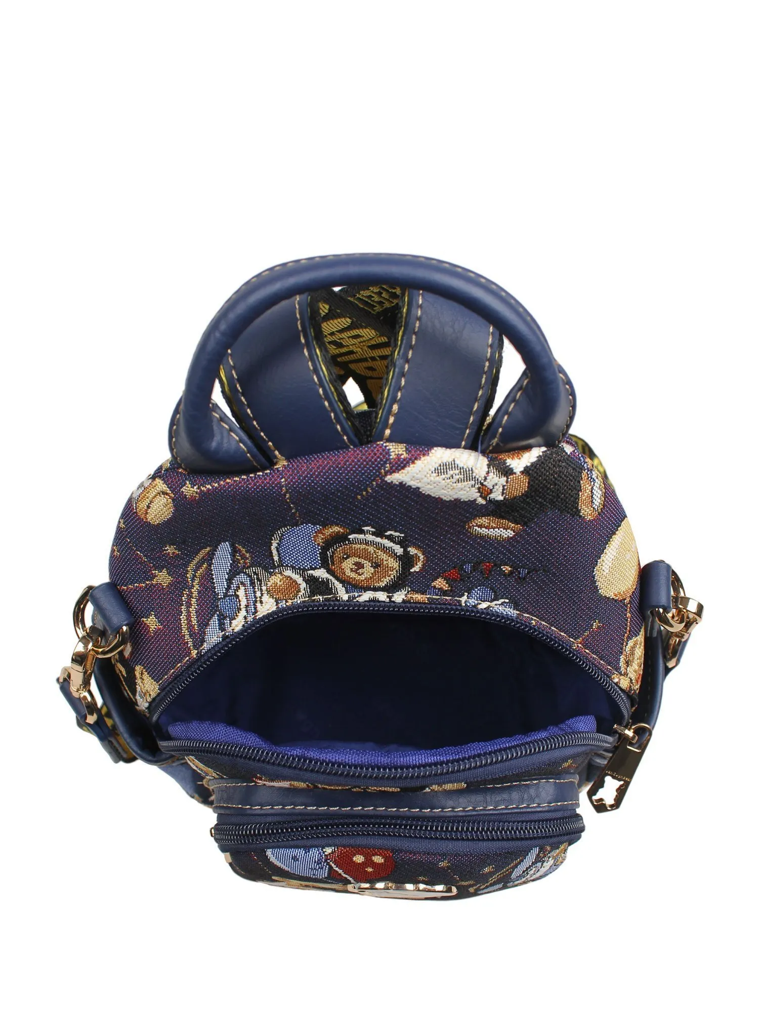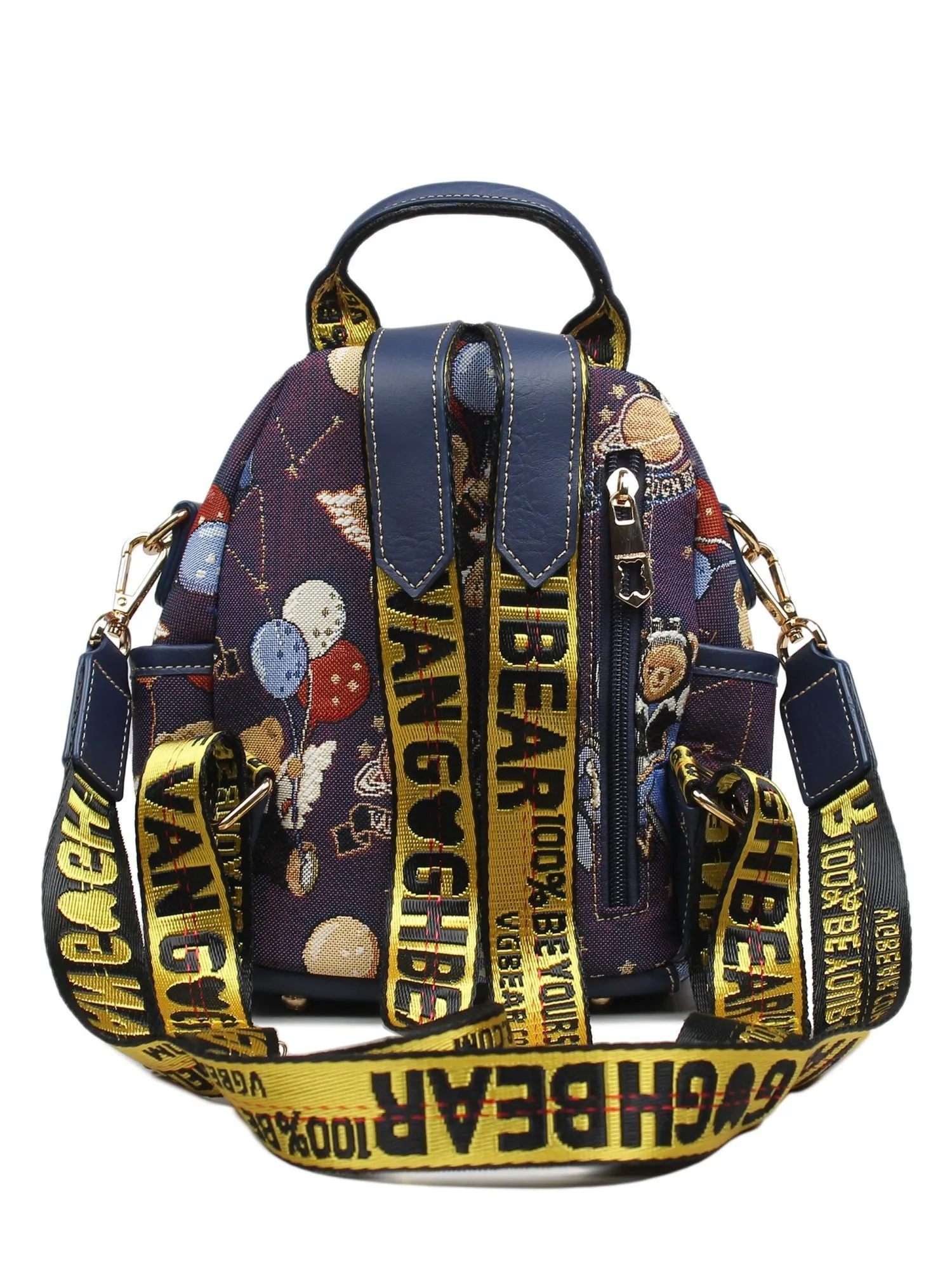 Встречайте задорного мишку Henney Bear! Перед вами очаровательный рюкзак с двумя лямками, короткой ручкой сверху и длинным текстильным ремнем в комплекте. Дизайн лаконичен, но не без интересных деталей: фирменный принт и элегантные бегунки с профилем медвежонка. Основное отделение закрывается на молнию. Внутри удобный карман на молнии, отсек для смартфона, а также фирменная подкладка. По бокам рюкзака находятся отсеки для небольших бутылочек. На лицевой и оборотной сторонах расположены дополнительные карманы на молнии. Яркие тона и задорные принты - то что нужно для украшения гардероба!