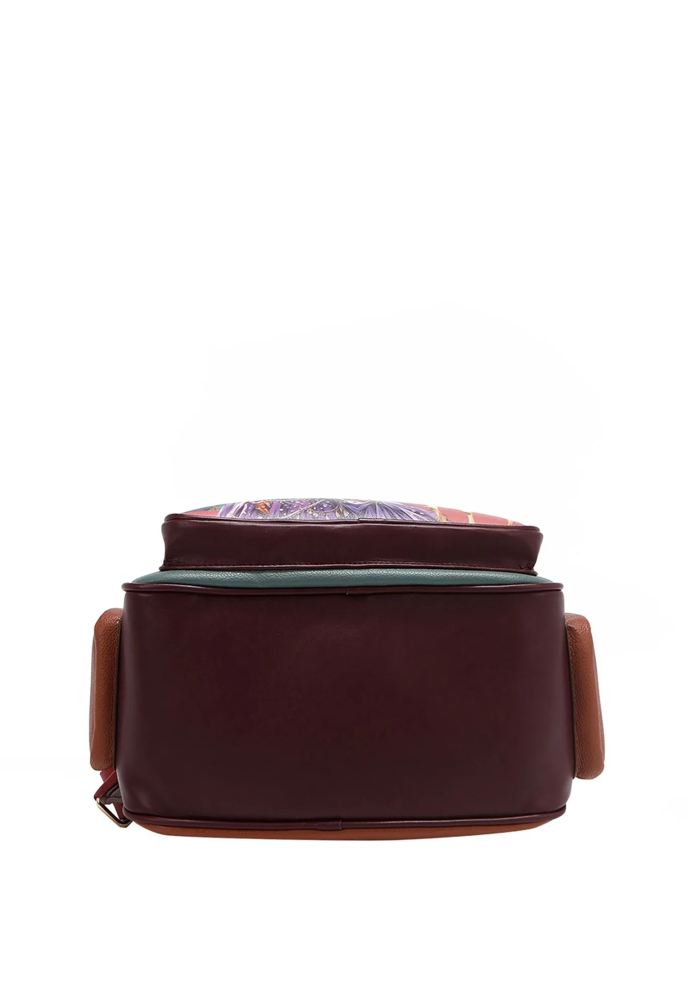 Изготовлен из качественной экокожи, рюкзак хорошо держит форму. У него есть удобная ручка для переноски и регулируемые текстильные лямки.