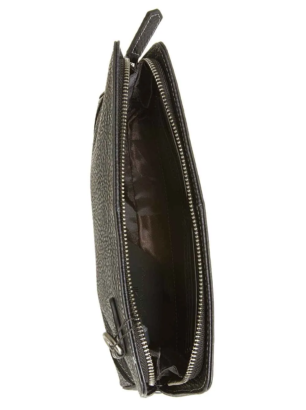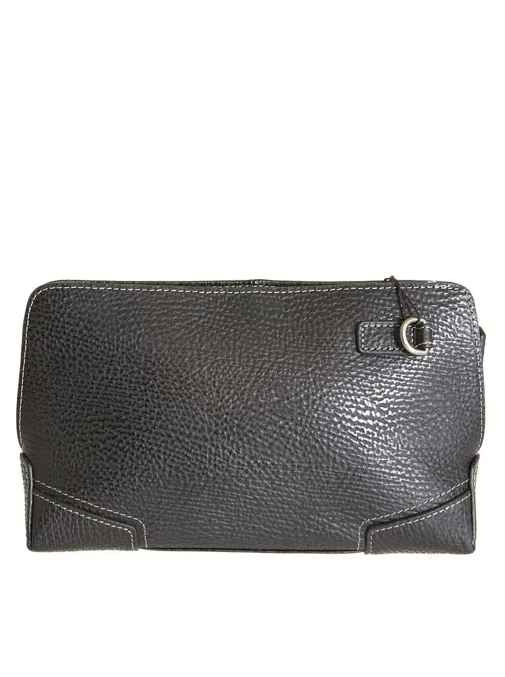 Брутальный мужской клатч из прочной фактурной кожи с рисунком под оленя, укомплектован коротким ремешком для ношения на кисти, закрывается на молнию. Небольшой, но достаточно вместительный. Нижние углы и дно изделия усилены накладкой из кожи, что продлевает срок службы изделия, а контрастная отсрочка придает модели стильности и современности. Внутри - просторное отделение с открытым карманом для мобильного телефона, карманом для документов на молнии и шестью кармашками для визиток и пластиковых карт. Великолепная модель с настоящим мужским характером и безупречным функционалом.