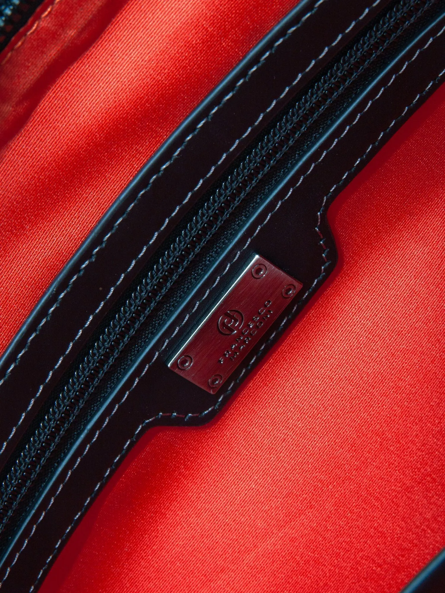 Сумка предлагает продуманную организацию пространства: большой скрытый карман на молнии с внешней стороны для телефона, кошелька и ключей, два боковых открытых кармана для мелочей, а также вместительный карман на молнии на задней стороне. Основное отделение на молнии легко вмещает папку формата F4 и ноутбук диагональю до 15 дюймов, а внутри вас ждут большой открытый карман для планшета и карман на молнии для ценных вещей. В комплекте широкий длинный ремень на карабинах позволяет носить сумку на плече или через плечо, обеспечивая комфорт в любой ситуации. Идеальный выбор для деловых встреч, путешествий и повседневного использования — эта сумка станет вашим надежным спутником, подчеркивая безупречный вкус и практичность.