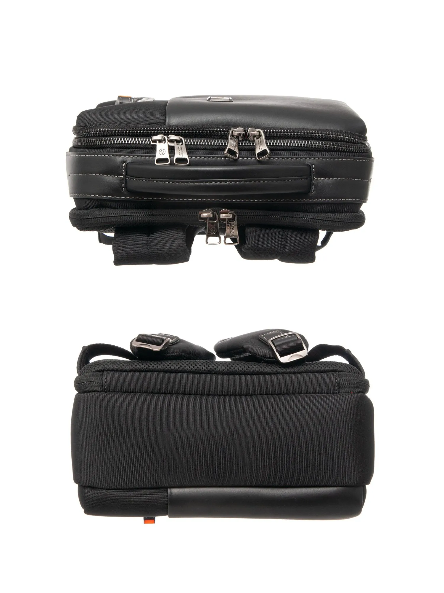 Рюкзак оснащен тремя независимыми отделениями: первое отделение на молнии вмещает документы формата А4 и имеет два открытых кармана; второе отделение на молнии содержит карман на молнии и большой открытый карман для планшета; третье отделение с системой полного раскрытия благодаря нижним липучкам оборудовано мягким защитным отсеком для ноутбука диагональю до 15 дюймов. Эргономичная спинка с вентиляцией и широкими мягкими лямками обеспечивает комфорт, а текстильная багажная лента позволяет закрепить рюкзак на чемодане. Под лентой расположен потайной карман на молнии для документов и ценных вещей, а сбоку — карман с молнией и эластичной вставкой для бутылки или зонта. Сохраняя безупречную форму, этот рюкзак станет надежным спутником для деловых поездок, работы и путешествий.