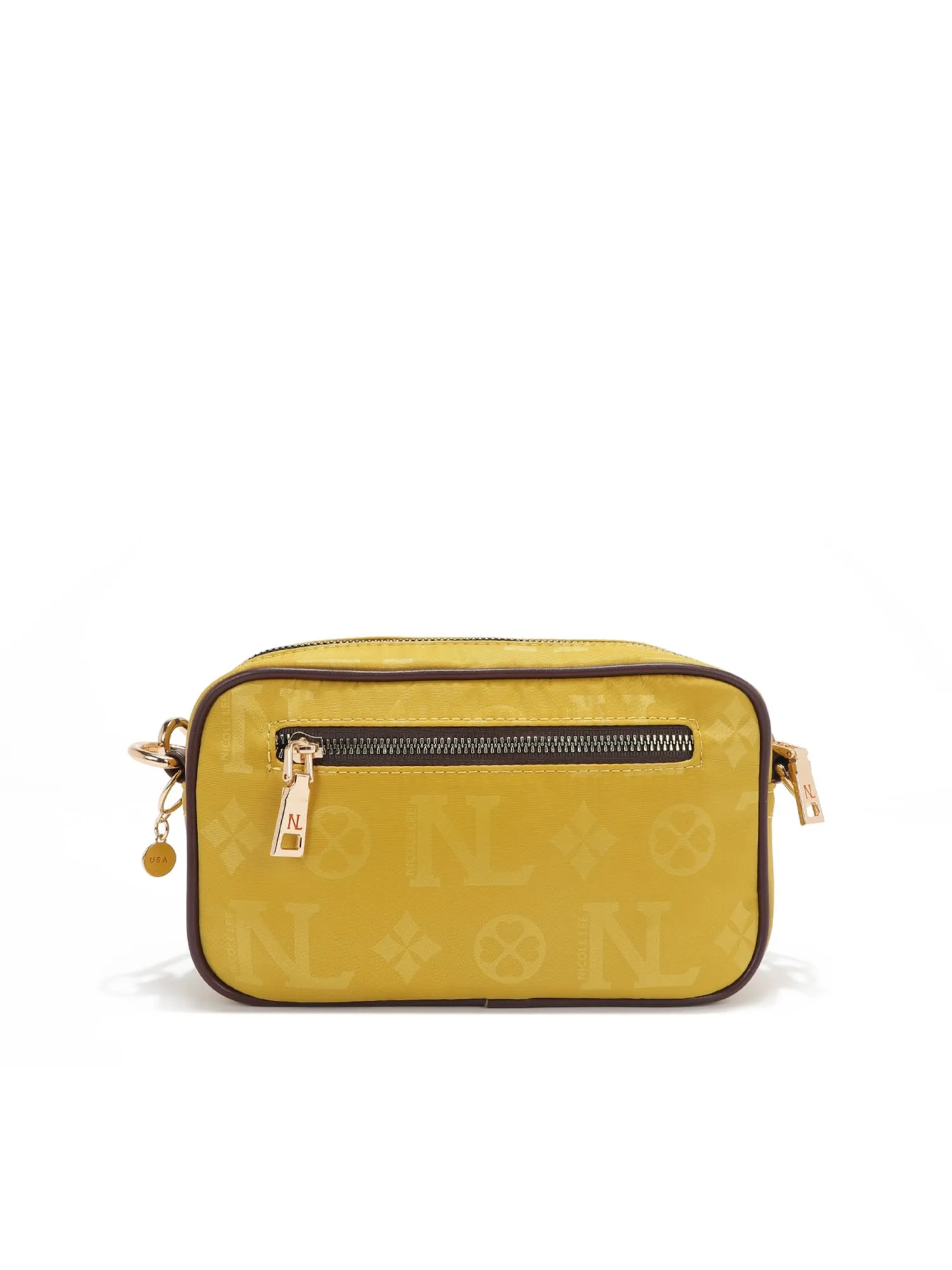 Кросс боди изготовлена из высококачественного текстиля с вставками из экокожи. Модель жёлтого цвета с ручками и отделкой фиолетового цвета добавит модного градуса любому образу.
