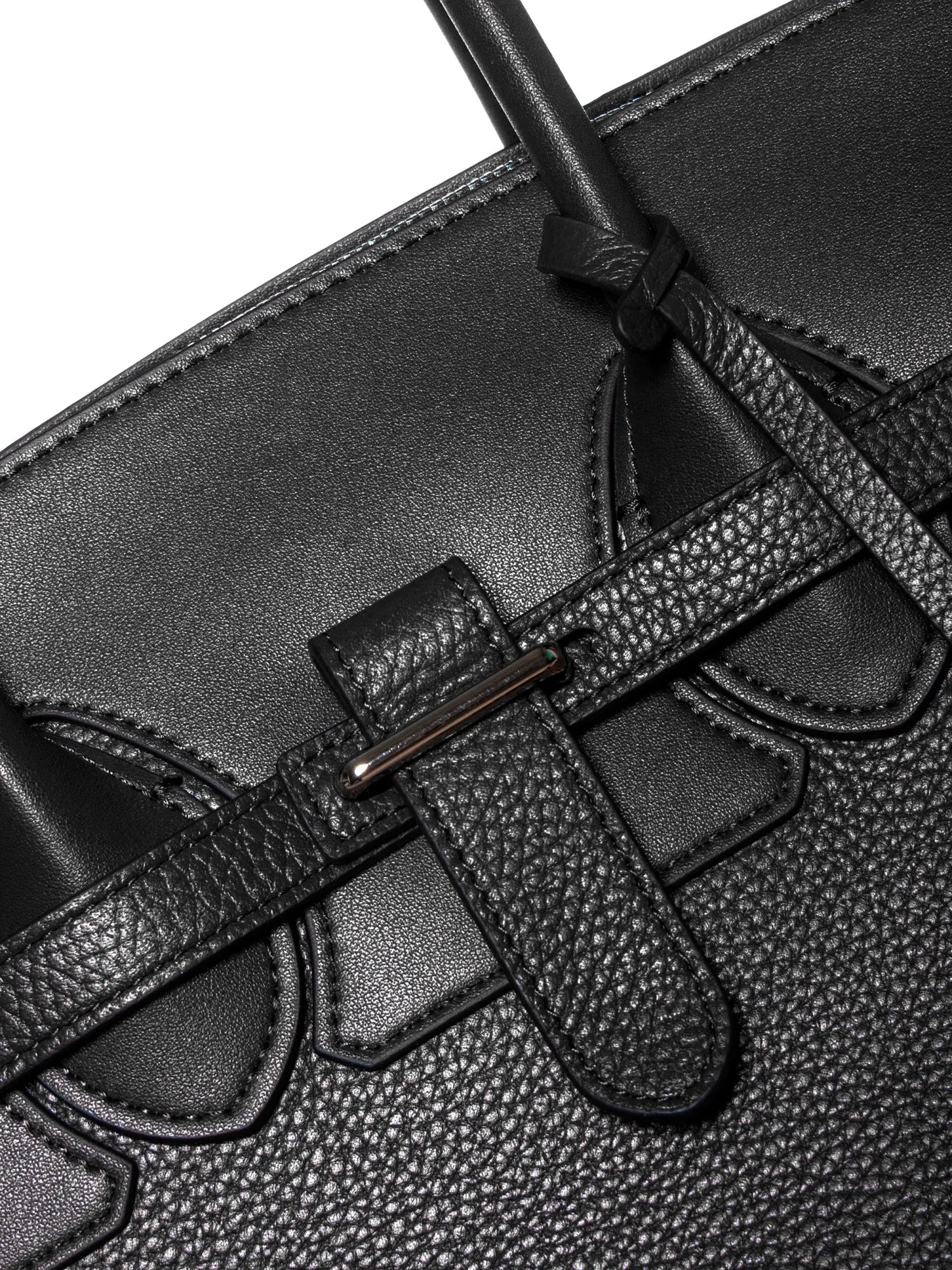 Плечевой ремень сумки на карабинах, и он регулируется, что позволяет вам настроить его на оптимальную длину и комфортно носить сумку на плече. Металлические ножки на дне защитят сумку от загрязнений.