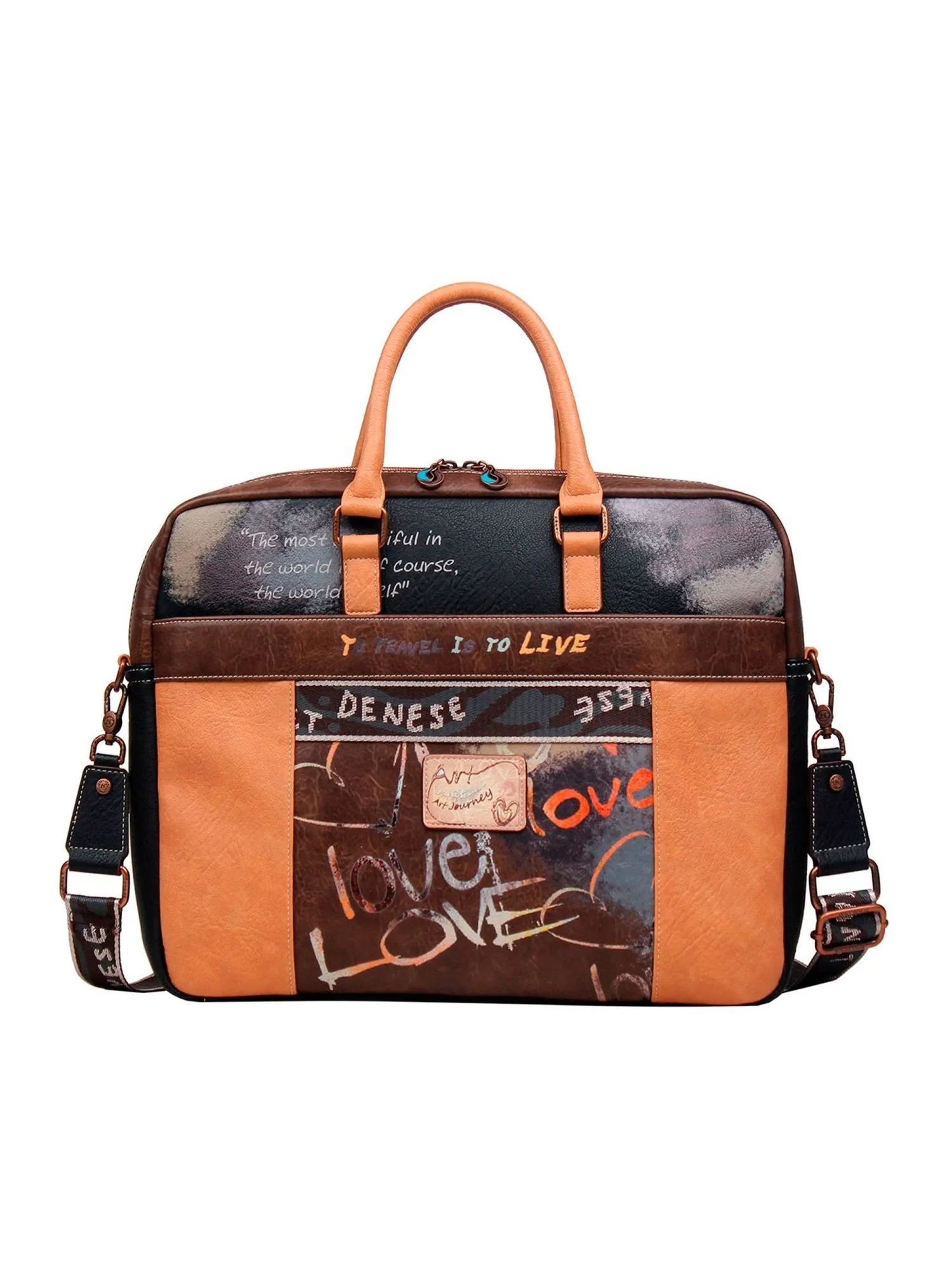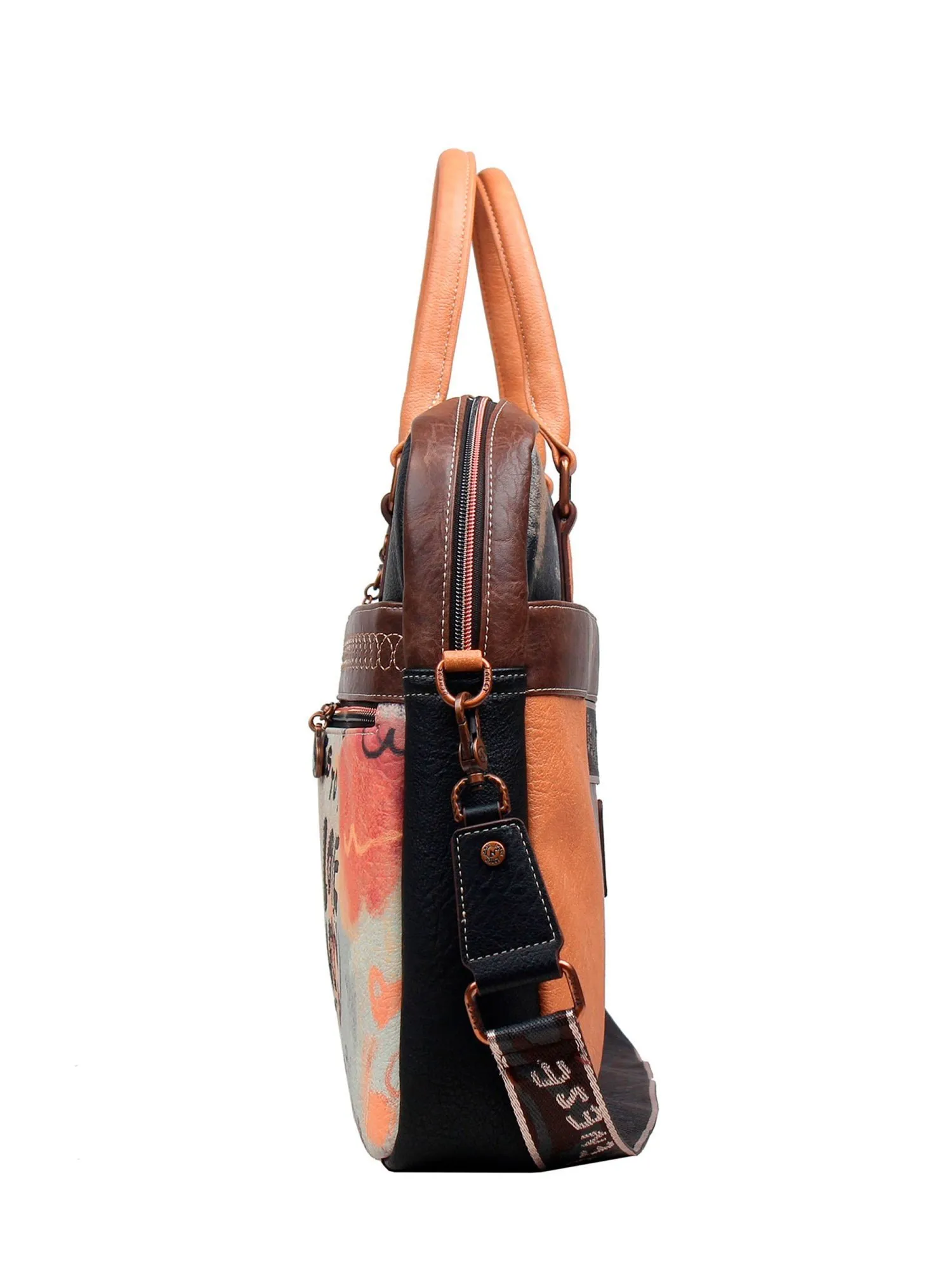 Представляем элегантную женскую деловую сумку, которая сочетает в себе профессиональный лоск и художественное вдохновение! Модель выполнена в духе коллекции ART GALLERY и украшена замысловатыми спиралями, словно нанесенными кистью талантливого художника. Спереди сумку обрамляют два больших кармана на молнии с красивым принтом коллекции, а чуть выше расположен большой скрытый карман на молнии для документов или ценных мелочей. На задней стороне вас ждет практичная багажная лента, позволяющая закрепить сумку на ручке чемодана во время путешествий или командировок, а также большой скрытый карман на молнии для дополнительного хранения.