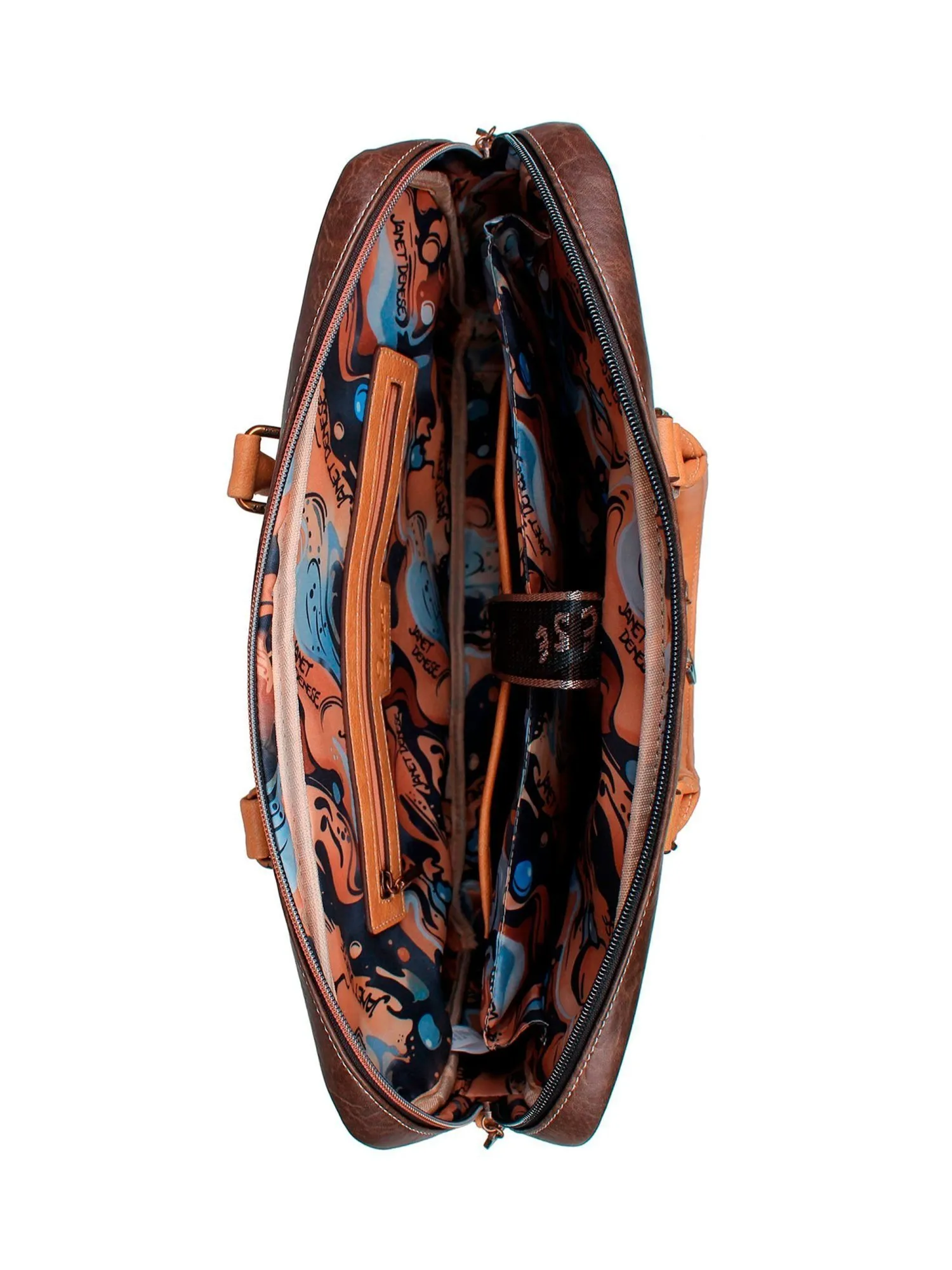 Основное отделение открывается с помощью двух изящных бегунков коллекции, раскрывая продуманное внутреннее пространство: мягкий защитный отсек для ноутбука диагональю до 15 дюймов и открытый карман для аксессуаров. Сумку дополняют изысканная вышивка и фирменный брелок в виде палитры художника, подчеркивающий принадлежность к коллекции. Идеальный выбор для деловых встреч, работы или путешествий — эта сумка подчеркнет ваш статус, любовь к искусству и внимание к деталям. Носите с собой JANET, чтобы превращать улицы в галерею стиля, где вы — главный экспонат.