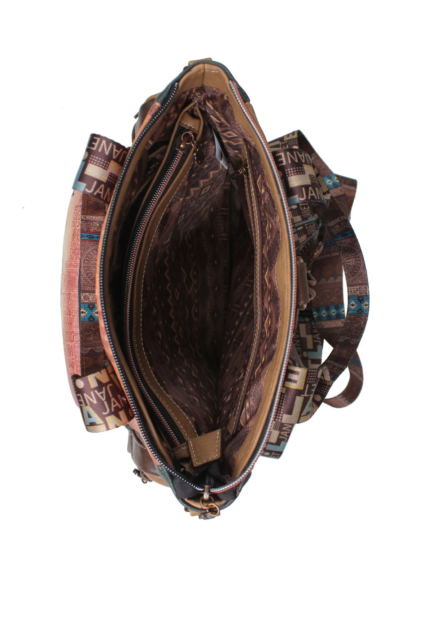 С помощью продуманной системы креплений вы можете за секунды отстегнуть лямки и пристегнуть их к боковым кольцам, создав сумку на плечо или модный кросс-боди. Janet Maya — где история встречается с современностью, а практичность становится искусством.