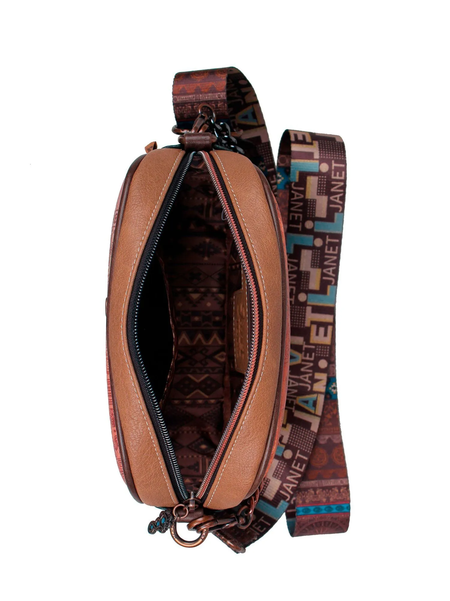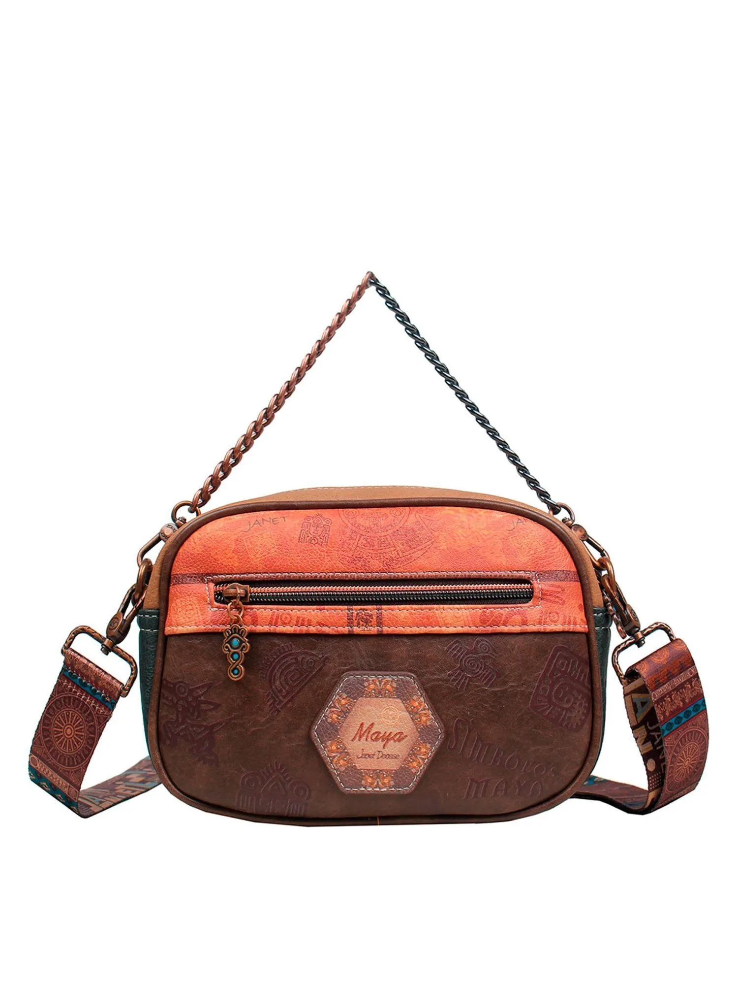 Окунитесь в мир тайн и легенд с этой сумкой кросс-боди из коллекции JANET MAYA! На передней части сумки вас встретит загадочный принт с символами майя и девочка Джанет в традиционном наряде этой древней цивилизации, дополненный металлической эмблемой священной птицы квезаль — символа свободы и красоты. Основное отделение на молнии скрывает просторное внутреннее пространство с большим открытым карманом и карманом на молнии для удобного хранения мелочей. На задней стороне расположен практичный карман на молнии и стильная нашивка с надписью Maya, подчеркивающая принадлежность к коллекции.