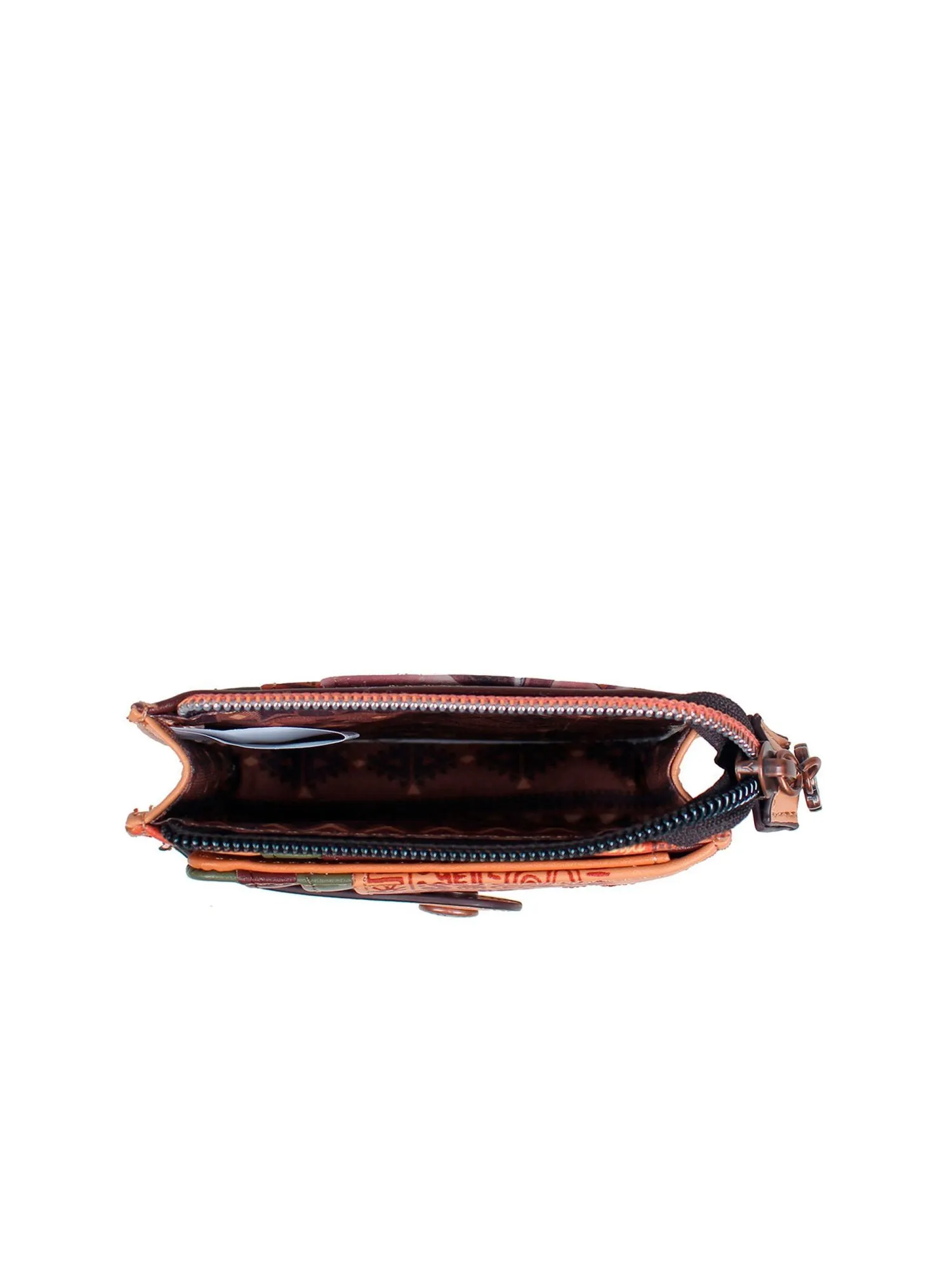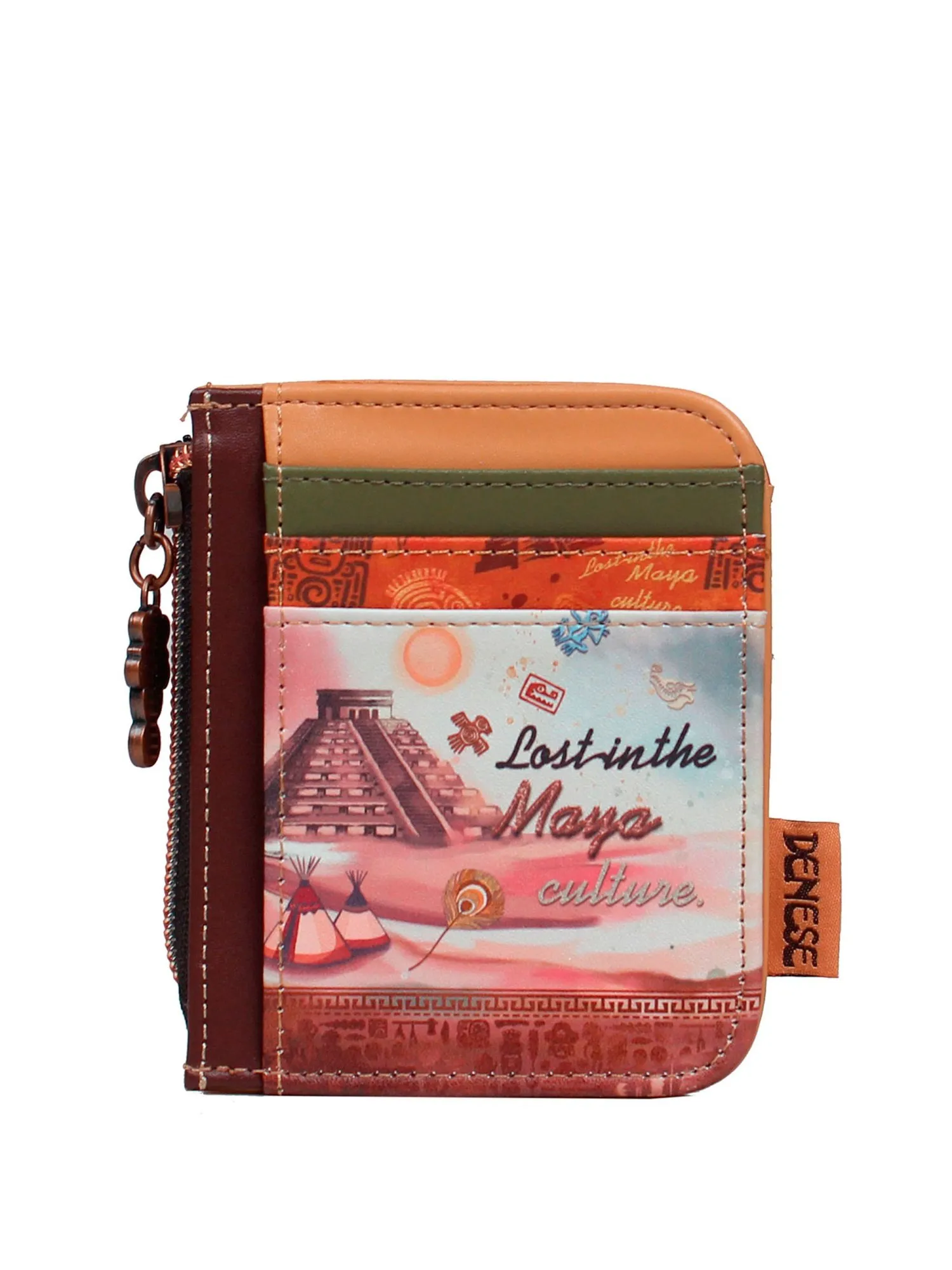 Окунитесь в мир тайн майя с этой многофункциональной кредитницей, где каждая деталь пропитана наследием древней цивилизации! Модель украшена фирменным принтом с загадочными символами майя и вышивкой. С одной стороны, три удобных кармана для карт надёжно закрываются хлястиком на магнитной кнопке, а внутри вас ждут три слота для карт и отделение с прозрачным окошком для пропуска или фотографии. С другой стороны расположены ещё три отделения для карт, обеспечивая максимальную вместительность. В центральном отделении под молнией можно хранить купюры, сложенные пополам, монеты или даже небольшие ключи, а с боковых сторон от него — два дополнительных кармана для мелочей. Несмотря на компактный размер, этот мини кошелёк легко заменяет полноценный аксессуар, предлагая продуманную организацию пространства. Поставляется в фирменной подарочной коробке, что делает его идеальным презентом для близких или изысканным дополнением к вашему образу. Идеальный выбор для тех, кто ценит историю, практичность и загадочность в каждой детали.