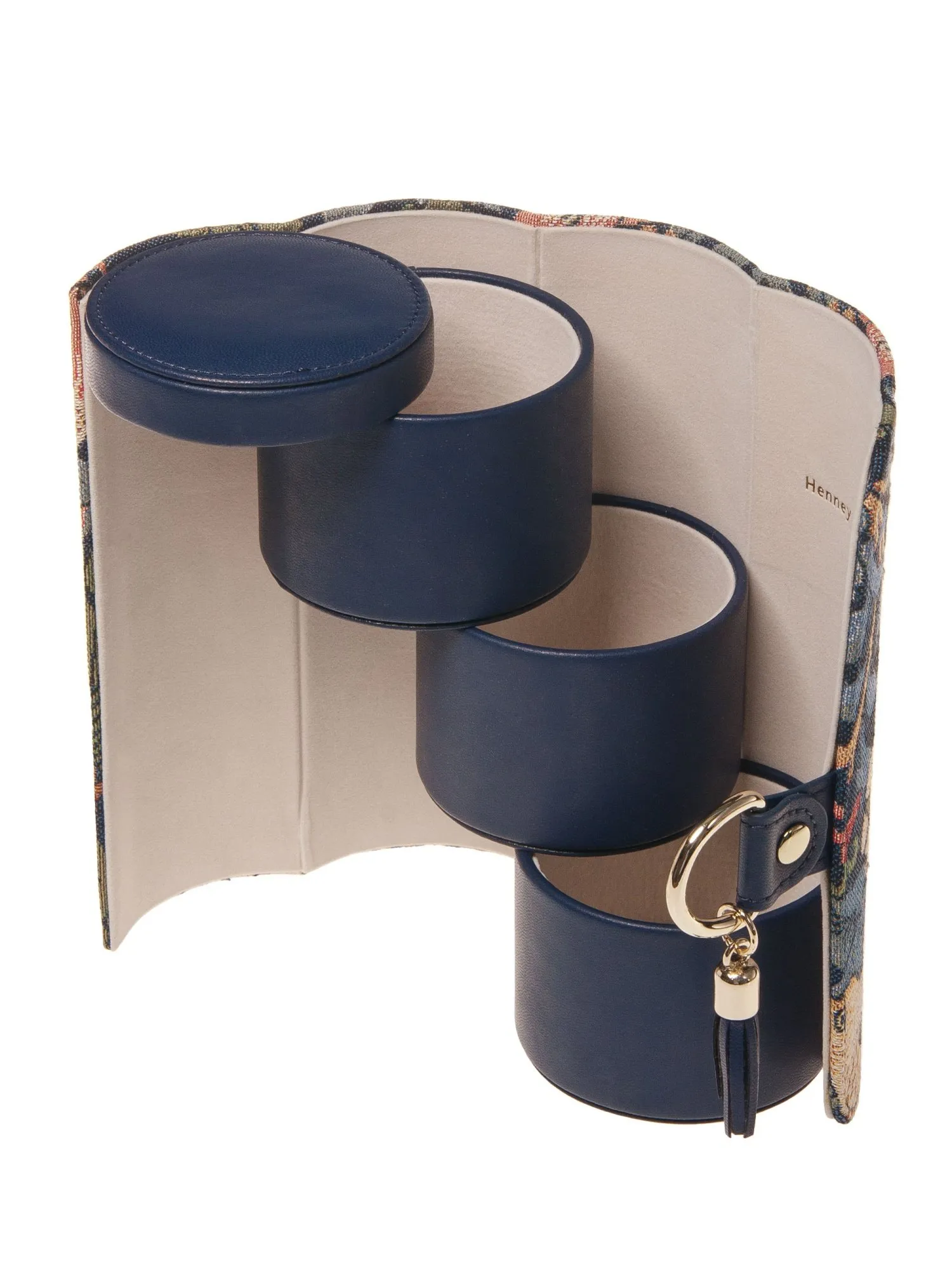Встречайте задорного мишку Henney Bear! Перед необычный органайзер в форме тубуса. Элементы внешнего дизайна - элегантные чарующие принты, а также фирменная кисточка. Закрывается на небольшой клапан с кнопкой, внутри три одинаковых круглых отсека. Яркие тона и задорные принты - то что нужно для украшения гардероба!