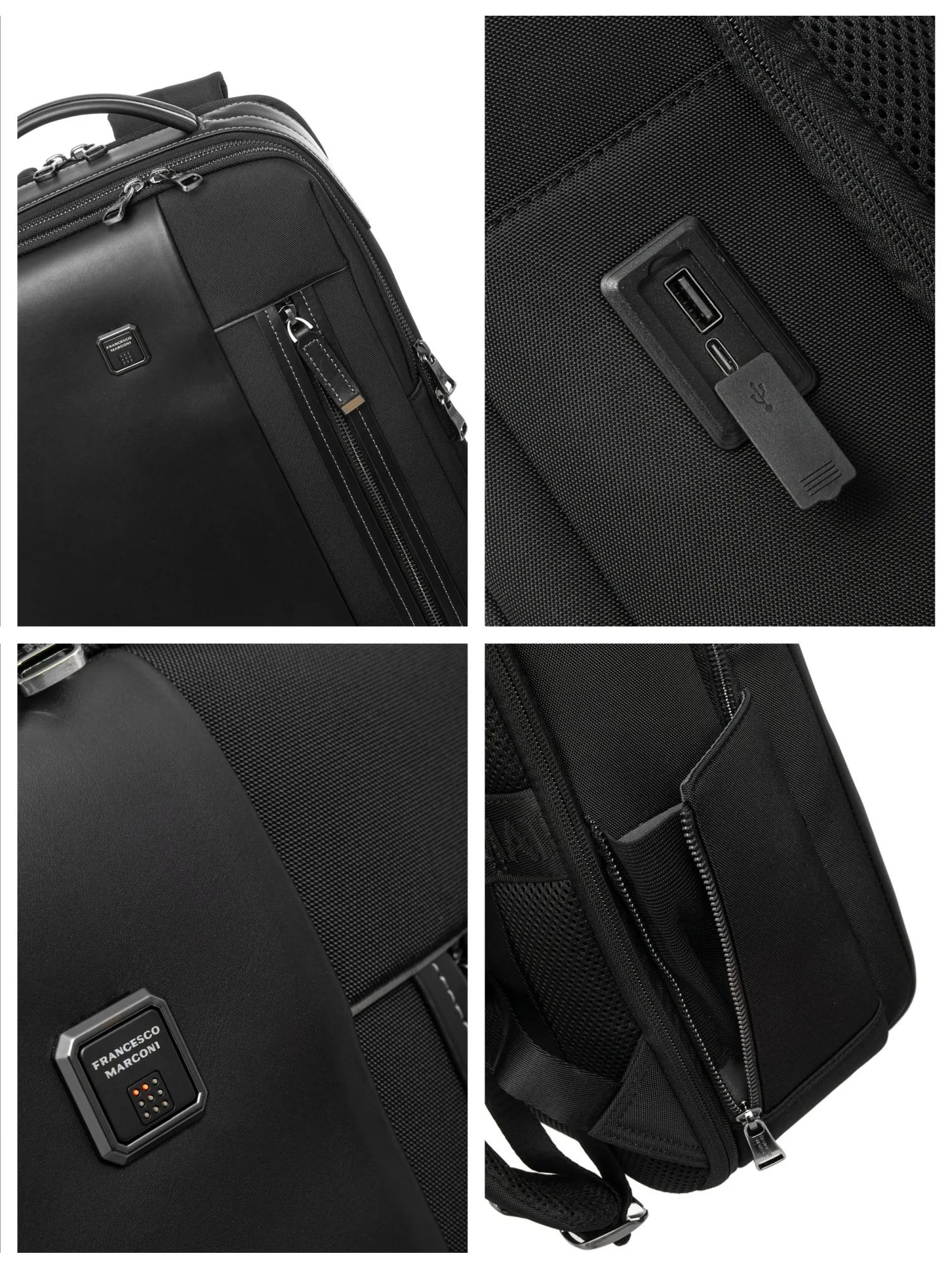 Рюкзак оснащен тремя независимыми отделениями: первое отделение на молнии вмещает документы формата А4 и имеет два открытых кармана; второе отделение на молнии содержит карман на молнии и большой открытый карман для планшета; третье отделение с системой полного раскрытия благодаря нижним липучкам оборудовано мягким защитным отсеком для ноутбука диагональю до 15 дюймов. Эргономичная спинка с вентиляцией и широкими мягкими лямками обеспечивает комфорт, а текстильная багажная лента позволяет закрепить рюкзак на чемодане. Под лентой расположен потайной карман на молнии для документов и ценных вещей, а сбоку — карман с молнией и эластичной вставкой для бутылки или зонта. Сохраняя безупречную форму, этот рюкзак станет надежным спутником для деловых поездок, работы и путешествий.