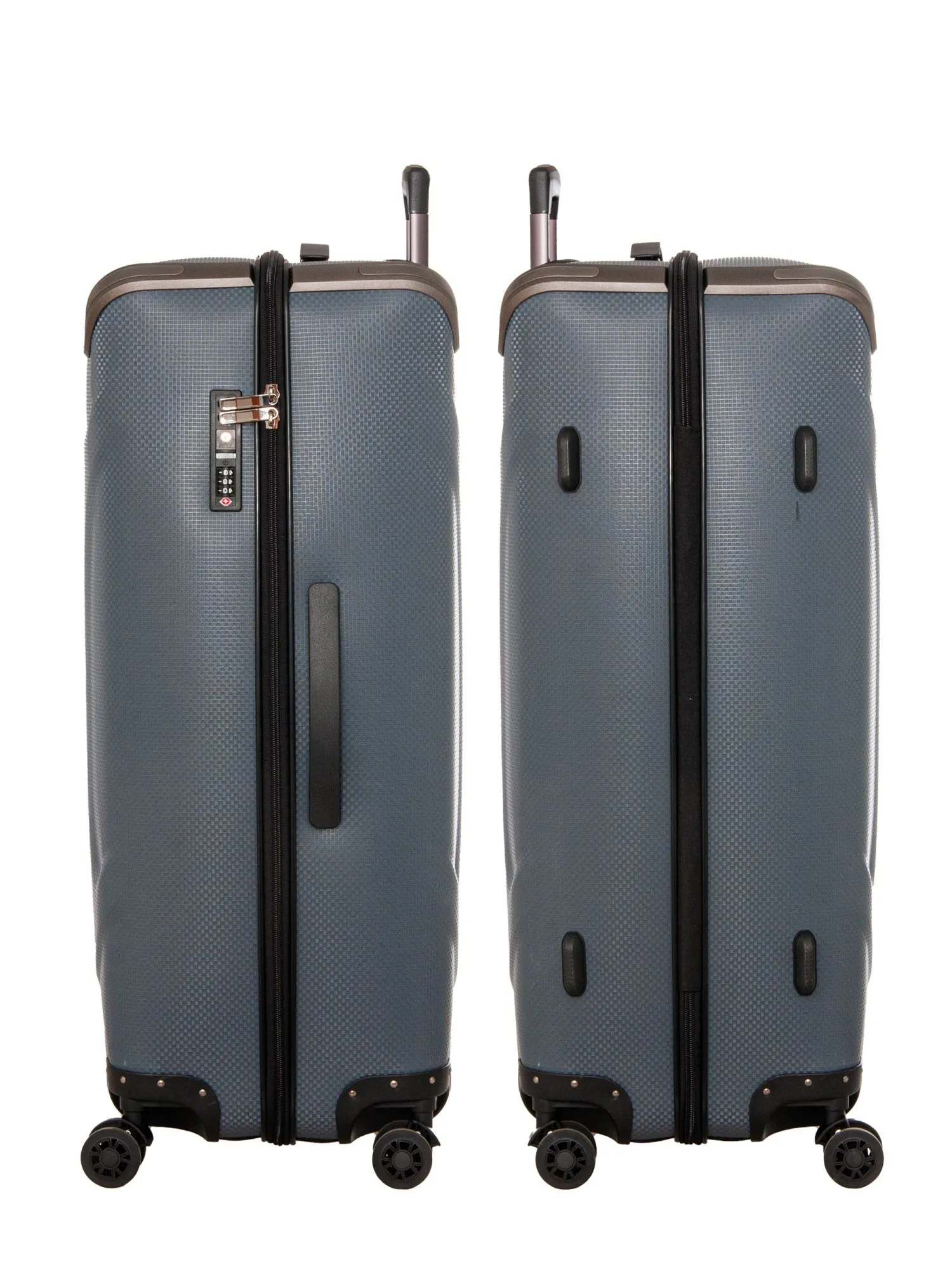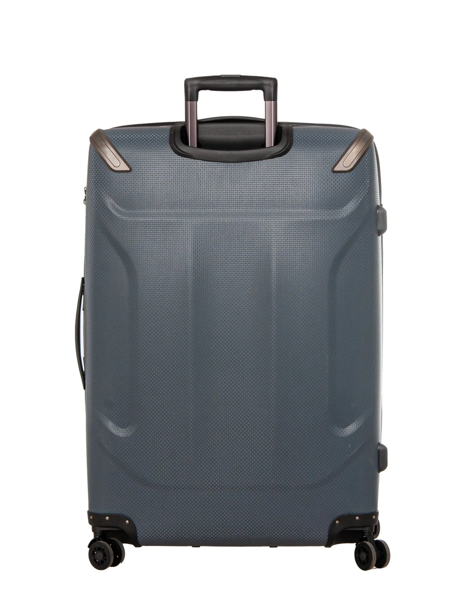 Телескопическая ручка из алюминия с тремя уровнями фиксации позволяет настроить высоту под ваш рост, а удобные ручки сверху и сбоку упрощают переноску. На боковой панели расположены защитные ножки, позволяющие устойчиво разместить чемодан в горизонтальном положении. Надежный кодовый замок обеспечивает сохранность содержимого. Стильная рифленая текстура материала и плавные бегунки молний подчеркивают внимание к деталям.