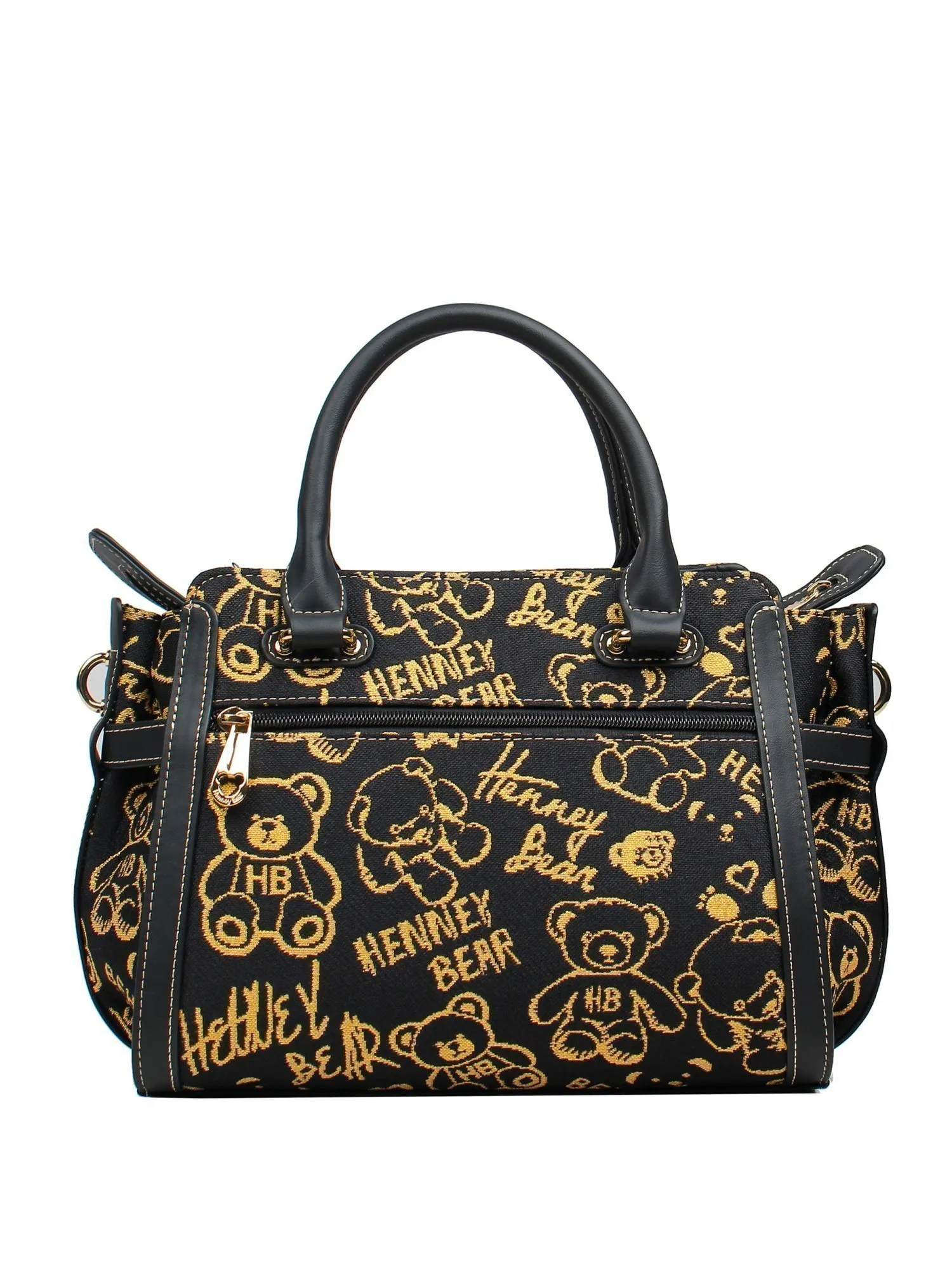 Встречайте задорного мишку Henney Bear! Перед вами классическая сумка с двумя короткими ручками и длинным ремешком, максимальная длина которого 125 см. Дизайн лаконичен, но не без интересных деталей: фирменный принт и элегантные бегунки с профилем медвежонка. Закрывается на молнию. Сумка декорирована металлическими заклепками в виде мишек со стразами. Внутри отличная эргономика, два отделения которые разграничивает карман на молнии и боковые карманы внутри сумки делают её очень удобной в использовании. На дне сумки есть ножки, а длинный ремень отстегивается. Яркие тона и задорные принты - то что нужно для Вашего гардероба!