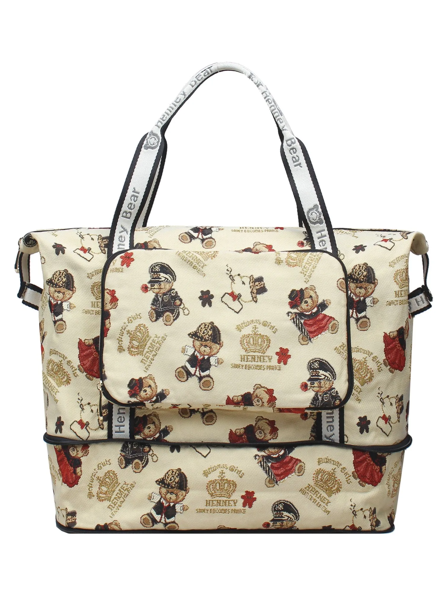 Большая сумка шоппер трансформер – это идеальный выбор для стильных и практичных женщин. Сумка изготовлена из прочного и легкого гобелена с фирменным принтом Henney Bear! Сумку можно легко свернуть в карман-чехол и взять с собой. В свернутом виде она размером с небольшой планшет. Так же шоппер можно использовать как дорожную сумку, на задней стороне есть специальное крепление для ручки чемодана, а на дне сумки есть возможность её расширения благодаря молнии. Основное отделение на молнии. Внутренняя сторона гобелена очень красивая, без подкладки. На задней стороне есть небольшой карман на молнии, впереди карман-чехол, который так же функционален. Эта женская легкая сумка для шоппинга и путешествий станет идеальным дополнением к вашему образу и позволит удобно разместить все вещи!