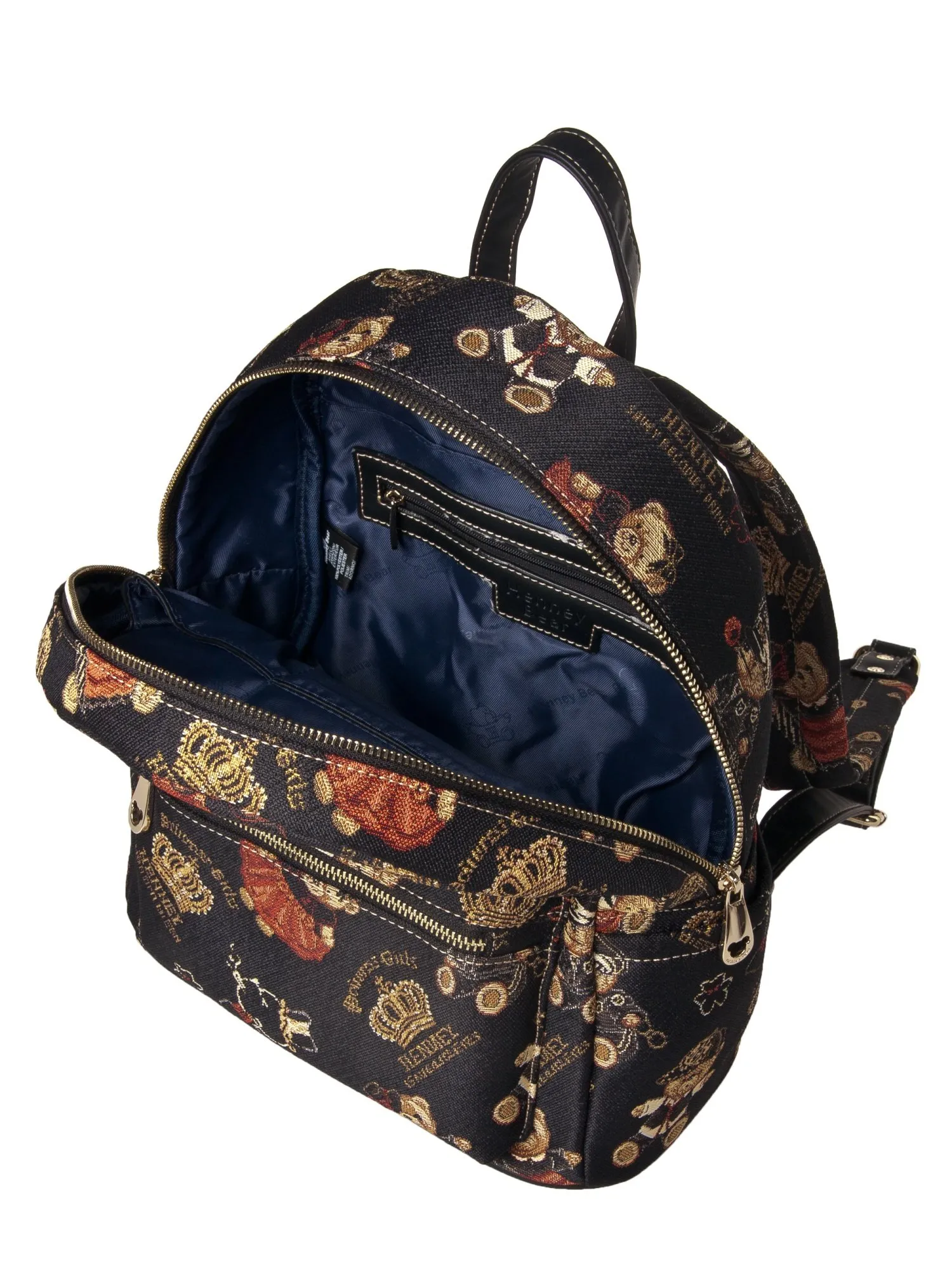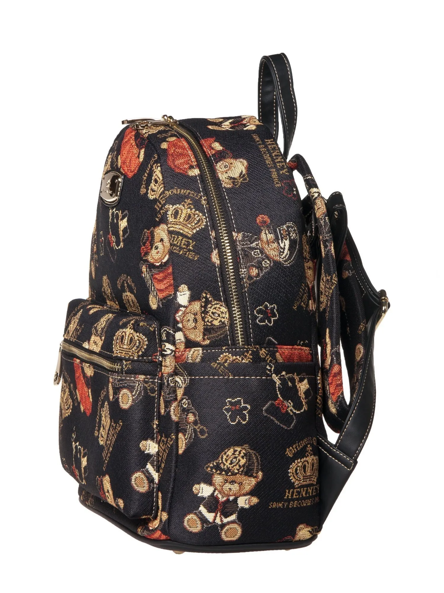 Встречайте задорного мишку Henney Bear! Перед вами классический рюкзак с регулируемыми лямками и удобной короткой ручкой сверху. Дизайн лаконичен, но не без интересных деталей: фирменный принт и элегантные бегунки с профилем медвежонка. Основное отделение закрывается на молнию. Внутри два удобных накладных кармашка, карман на молнии, отсек для планшета, а также фирменная подкладка. Для всевозможных карточек, ключей или телефона есть небольшой внешний карман на молнии. Яркие тона и задорные принты - то что нужно для украшения гардероба!
